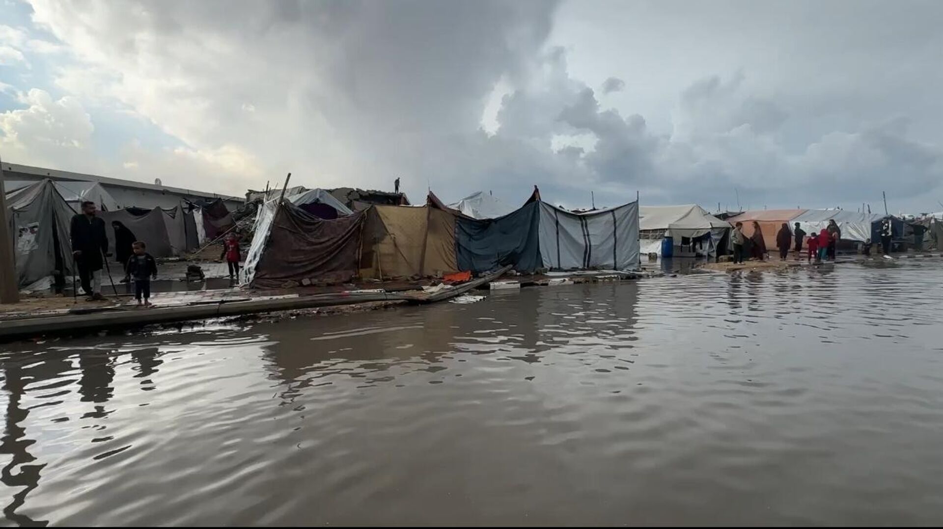 مياه الأمطار تغرق الخيام وتعمق معاناة الفلسطينيين في قطاع غزة