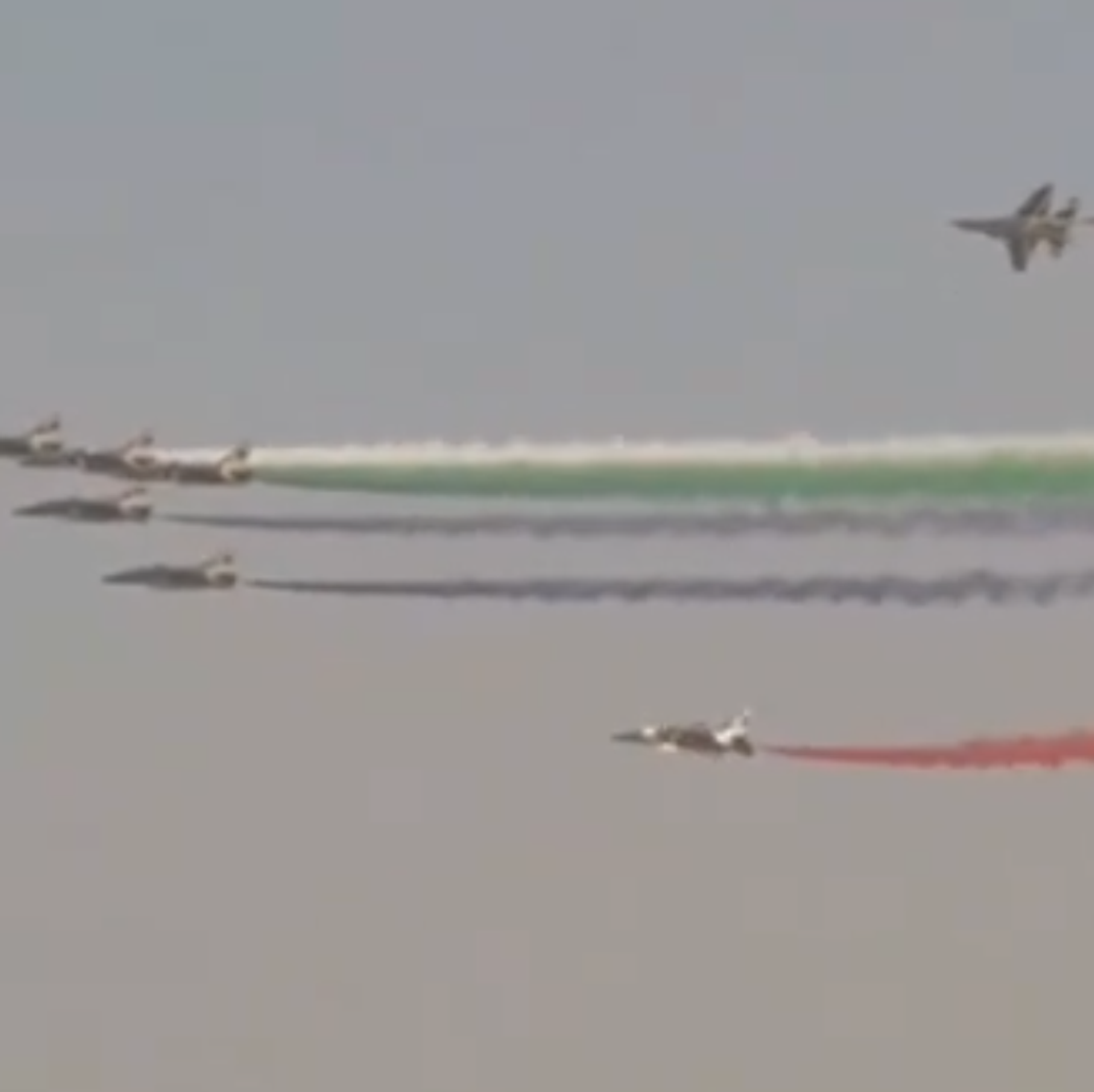 ويظهر في الفيديو كيف قام الطيارون المهرة في الفريق برسم أشكال فنية مميزة في الجو باستخدام الدخان الملون، حيث ظهرت ألوان علم الإمارات العربية المتحدة (الأخضر والأبيض والأسود والأحمر) بوضوح في سماء دبي، في مشهد مهيب ومثير للدهشة.