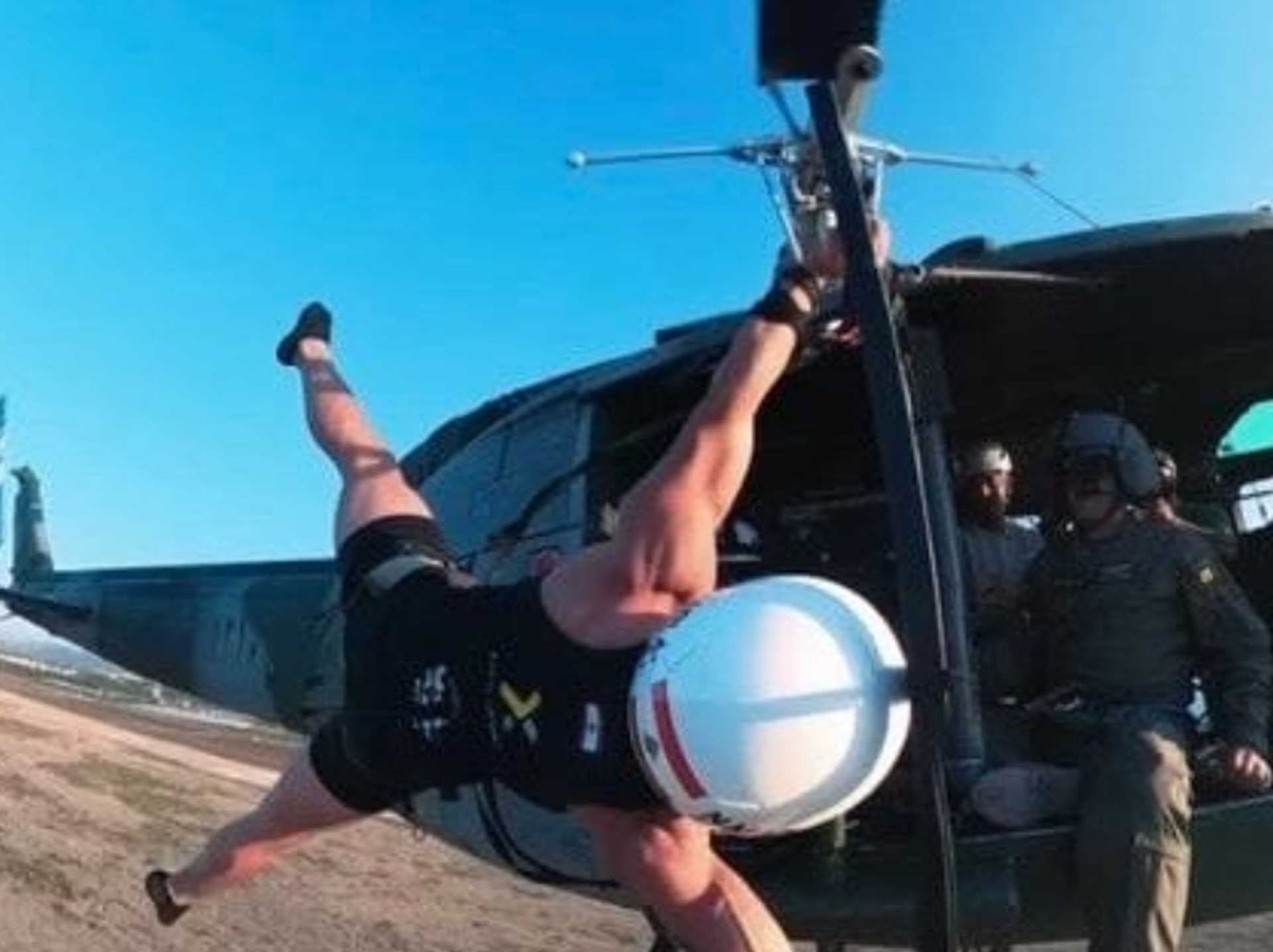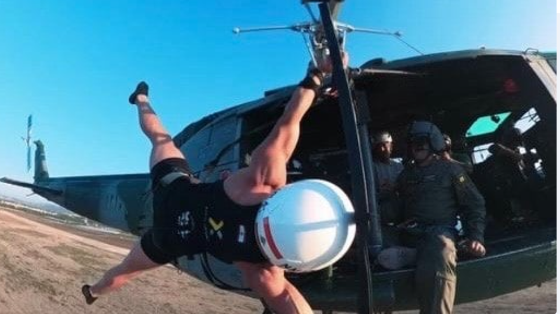 شاب عربي ينفذ حركة بهلوانية على متن مروحية عسكرية ويحطم رقم "غينيس" العالمي... فيديو