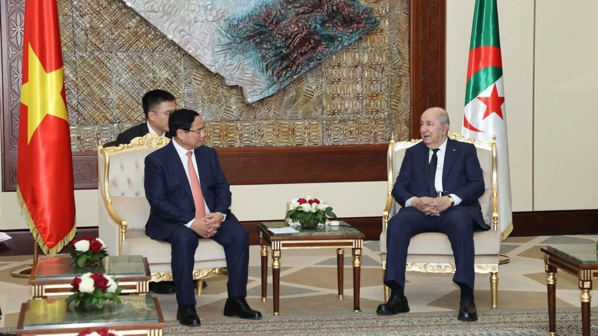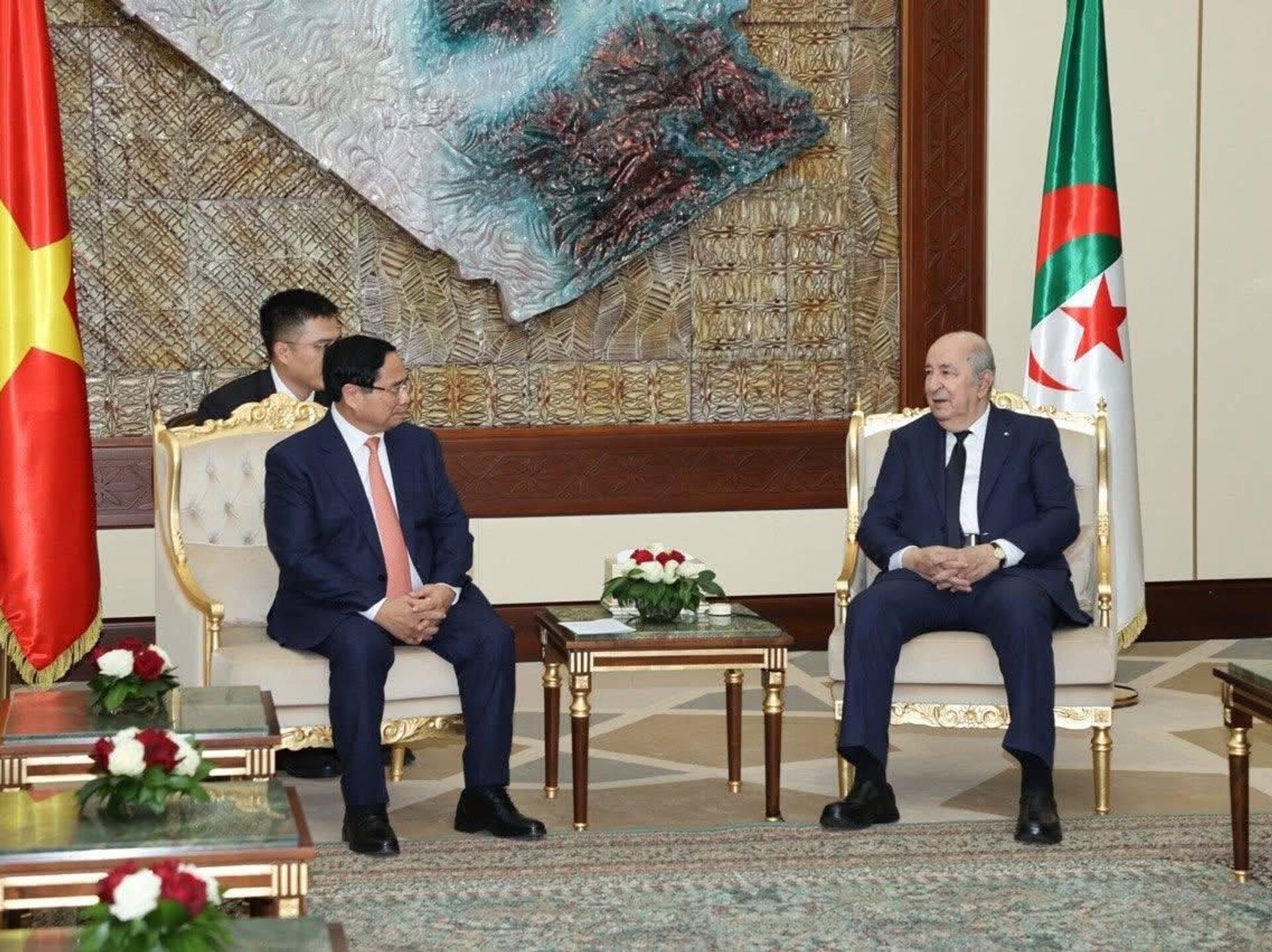 وقال رئيس الوزراء الفيتنامي فام مينه شينه، الذي ترأس وفد بلاده إلى الجزائر، في تصريحات للصحفيين عقب مباحثات أجراها مع الرئيس الجزائري عبد المجيد تبون في مقر الرئاسة الجزائرية: "الجزائر أول شريك استراتيجي لفيتنام في القارة الإفريقية، وعلاقات البلدين تتطور"، واصفا الزيارة بـ"المهمة للارتقاء بالعلاقات إلى الشراكة الاستراتيجية بين البلدين، وتساهم في توسيع العلاقات بما يخدم مصالح الشعبين".