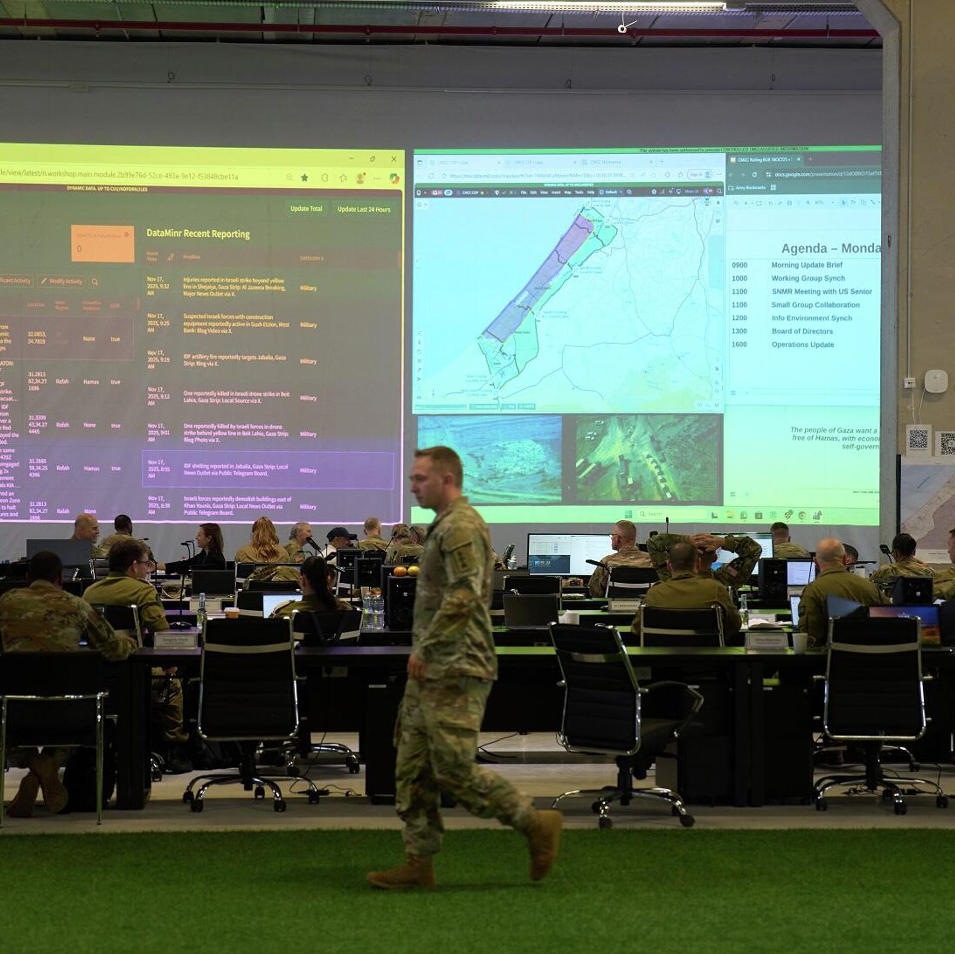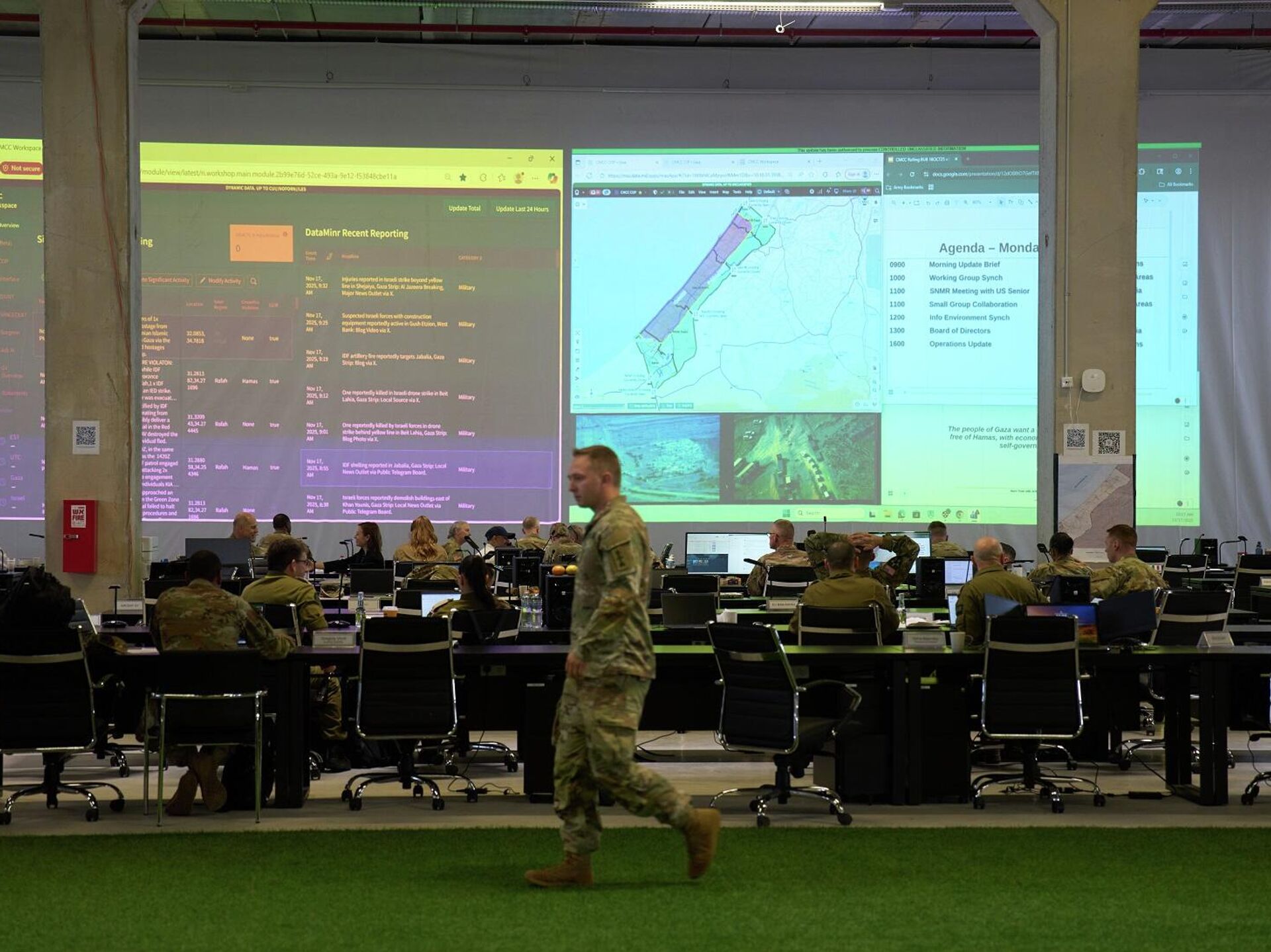 وتركز الاجتماعات على التحضير لتشكيل القوة متعددة الجنسيات، التي يُفترض أن تتولى مهمة "نزع سلاح حركة "حماس" الفلسطينية"، وتجتمع 6 فرق متخصصة كل صباح في الطابق الثالث والأخير من المقر لصياغة رؤى تفصيلية حول مستقبل غزة، وفقا