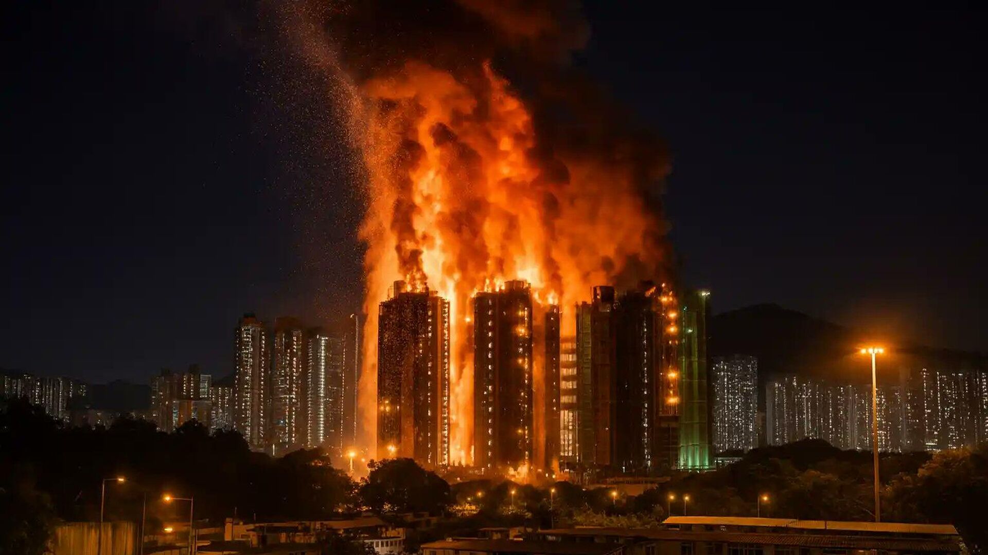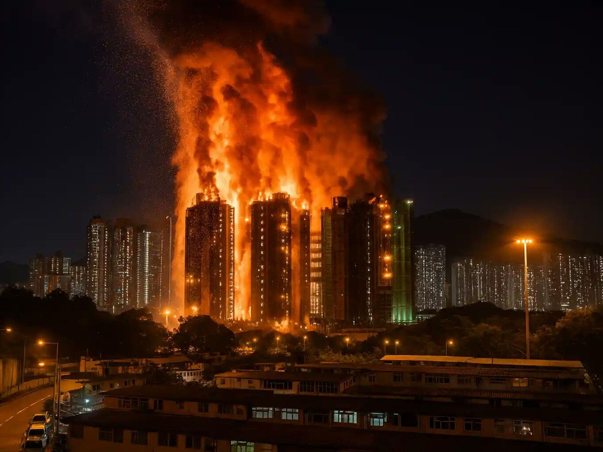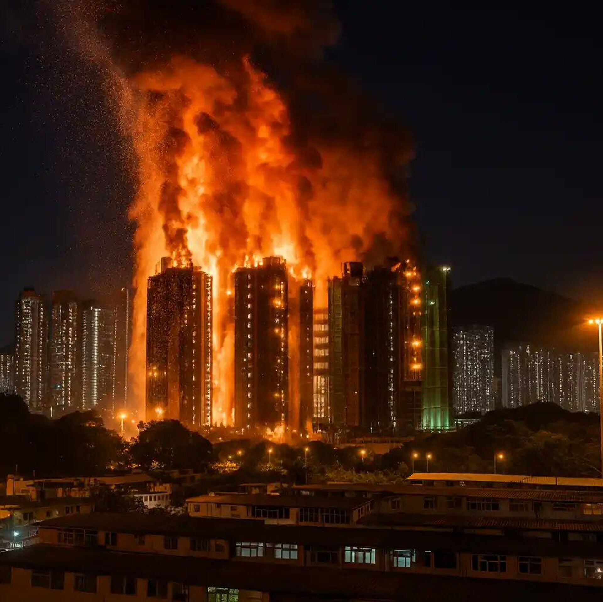 "ألسنة اللهب تلتهم السماء"... النار تبتلع مجمع مبان في هونغ كونغ... فيديو