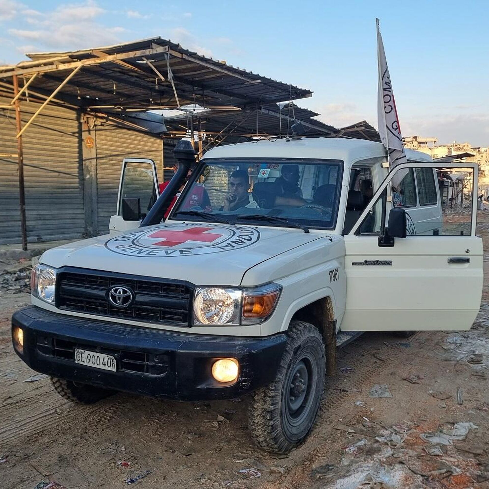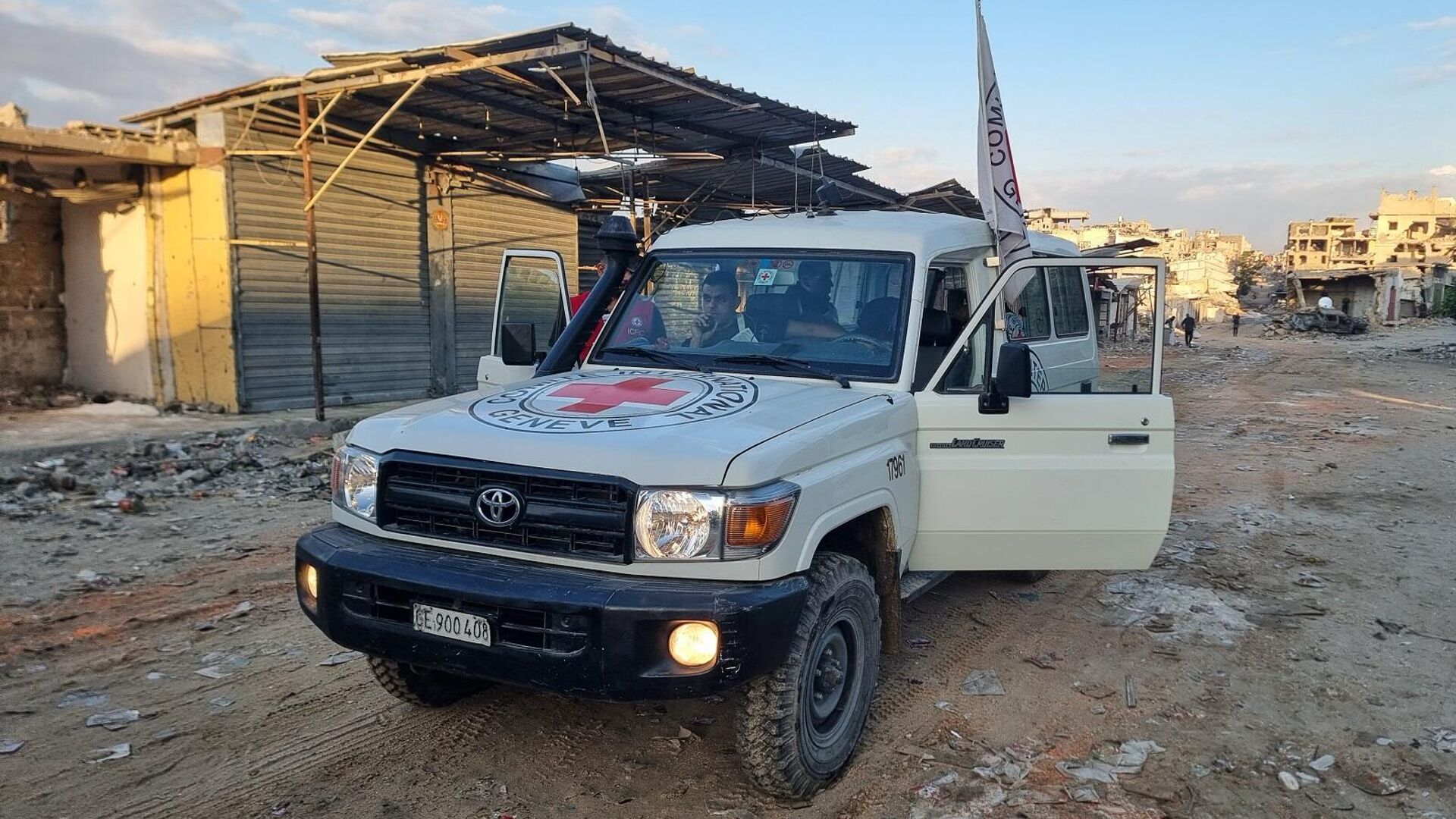 © AP Photo / Mohammad Jahjouhتظهر مركبة تابعة للصليب الأحمر في خان يونس، جنوب قطاع غزة، قبل إطلاق سراح الرهائن لدى حماس والسجناء لدى إسرائيل، 13 أكتوبر/تشرين الأول 2025