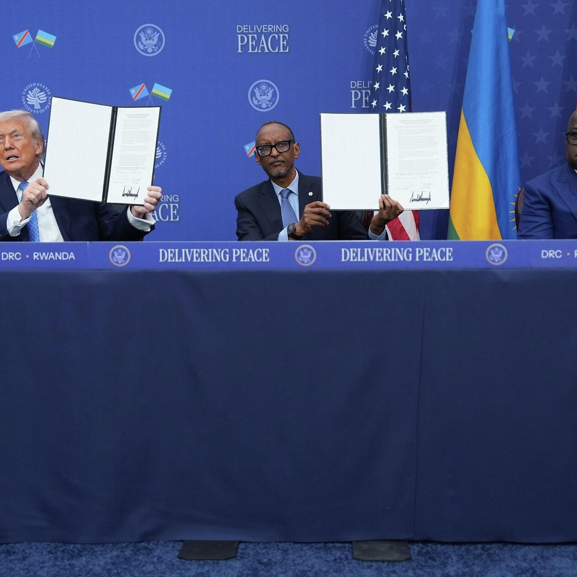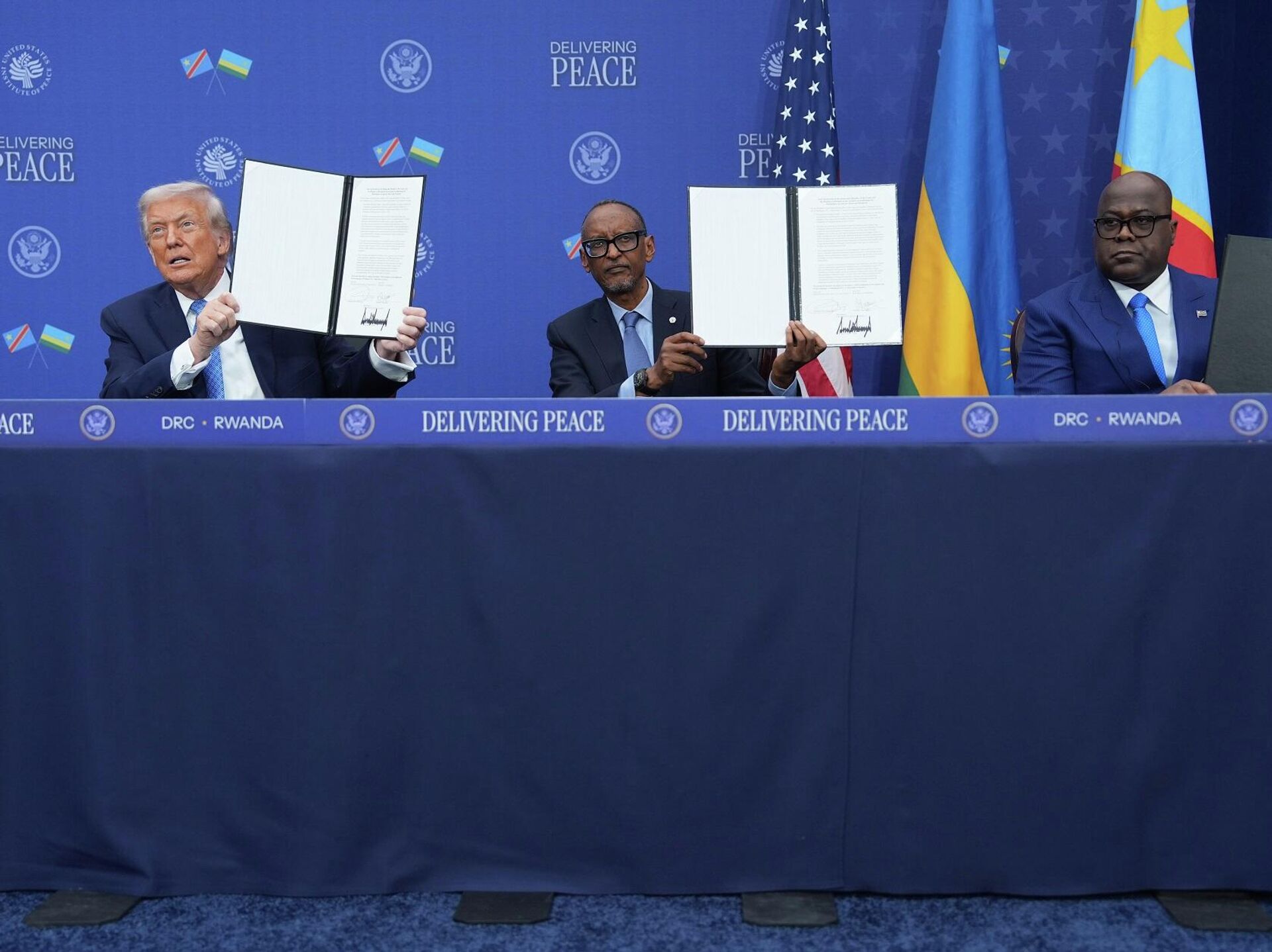 وأعلن الرئيس الأمريكي دونالد ترامب، أمس الخميس، توقيع اتفاق سلام يعرف باسم "اتفاقات واشنطن" بين جمهورية الكونغو الديمقراطية ورواندا، يرسّخ وقف إطلاق النار الدائم ونزع سلاح الجماعات غير الحكومية، وذلك بعد سنوات من النزاع بين الدولتين الأفريقيتين.