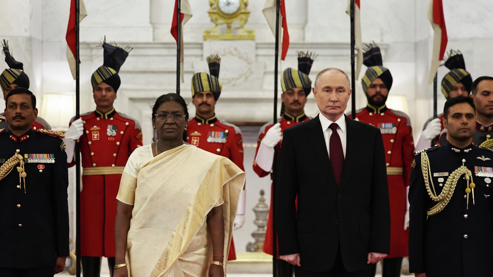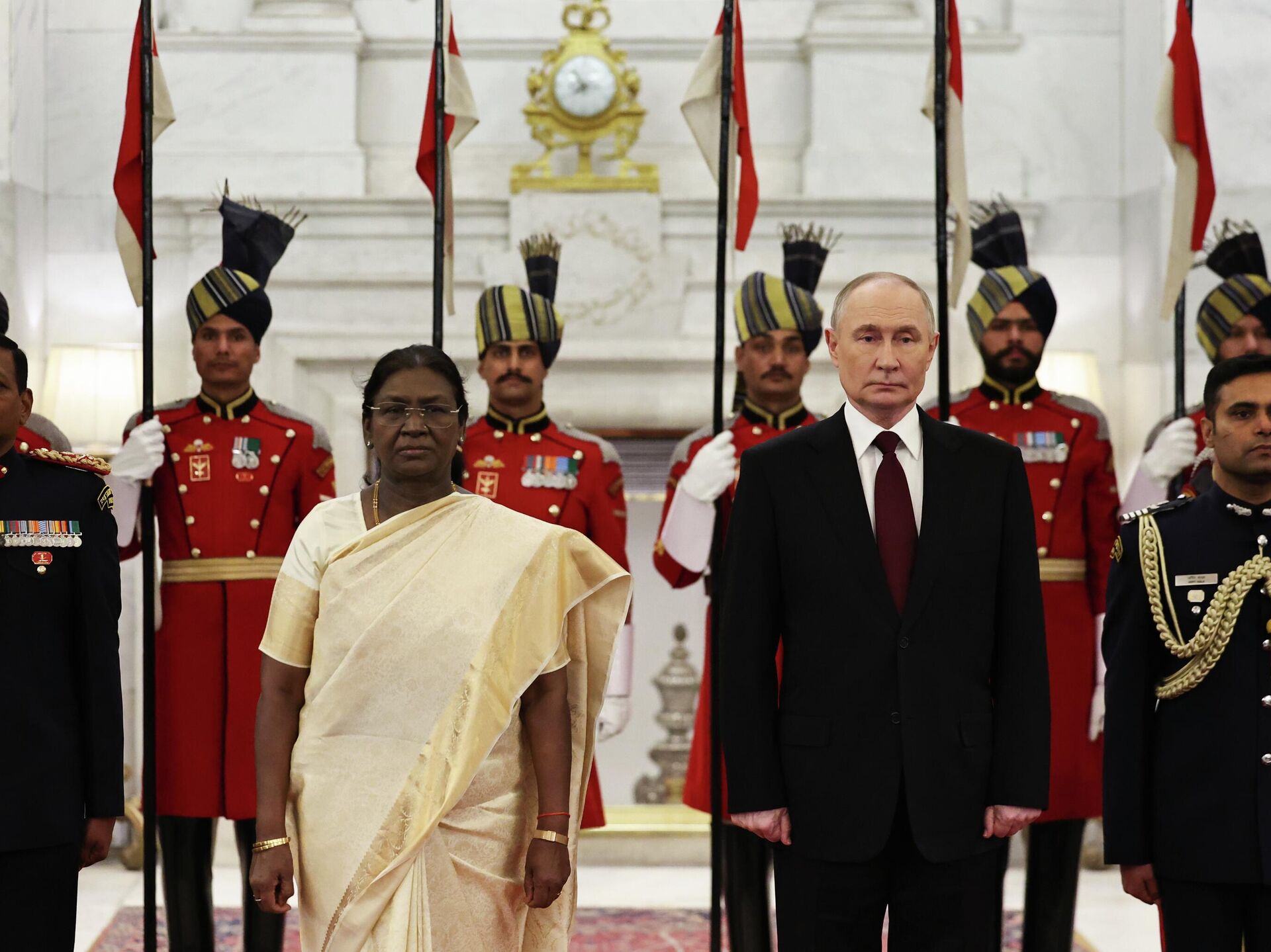 واتسمت المحادثات الروسية الهندية أمس واليوم بأجواء منفتحة وبناءة حقًا. وقد أكد الرئيس الروسي فلاديمير بوتين ذلك خلال حفل استقبال أقامته الرئيسة الهندية دراوبادي مورمو على شرفه.