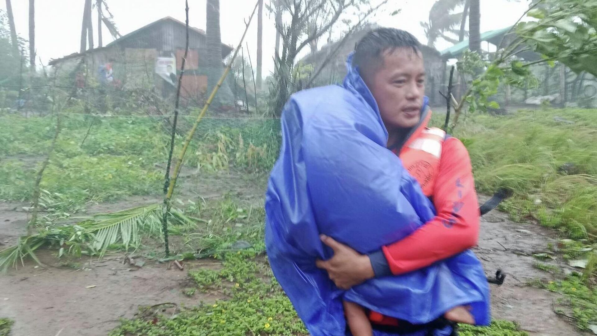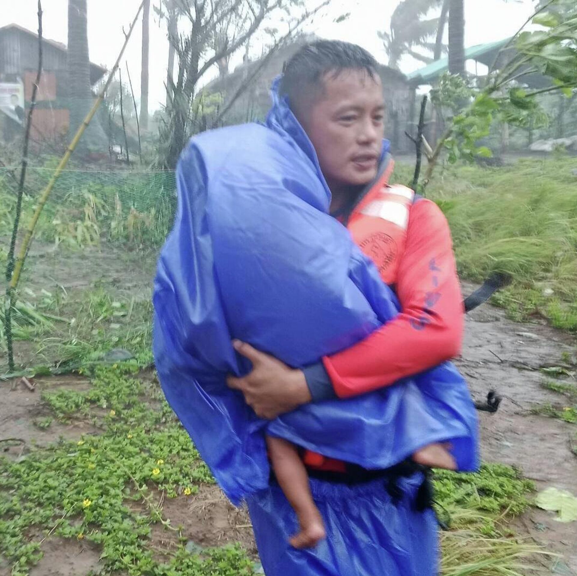 © AP Photo / Philippine Coast Guard في هذه الصورة، يظهر رجل من فرق الإنقاذ التابعة لخفرالسواحل الفلبيني، وهو يحمل طفلًا صغيرًا، ليأخذه إلى مكان أكثر أمانا، وذلك بعد إعصار"راجاسا" في الفلبين.