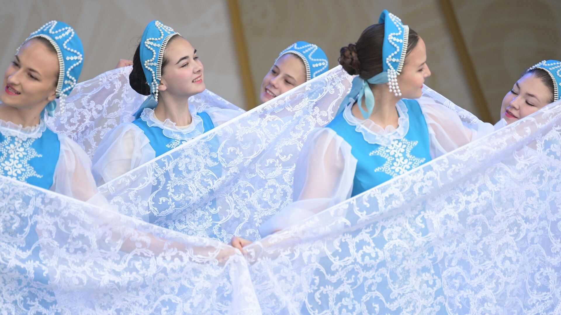 © Sputnik . Photo host agency Ria Novosti/Vladimir Astapkovich / الانتقال إلى بنك الصورأداء فرقة الرقص الشعبي "فدوخنوفينيه" (الإلهام) خلال المسابقة الدولية لإبداع الأطفال والشباب "على مسرح المعرض الدولي للمنتدى "روسيا"