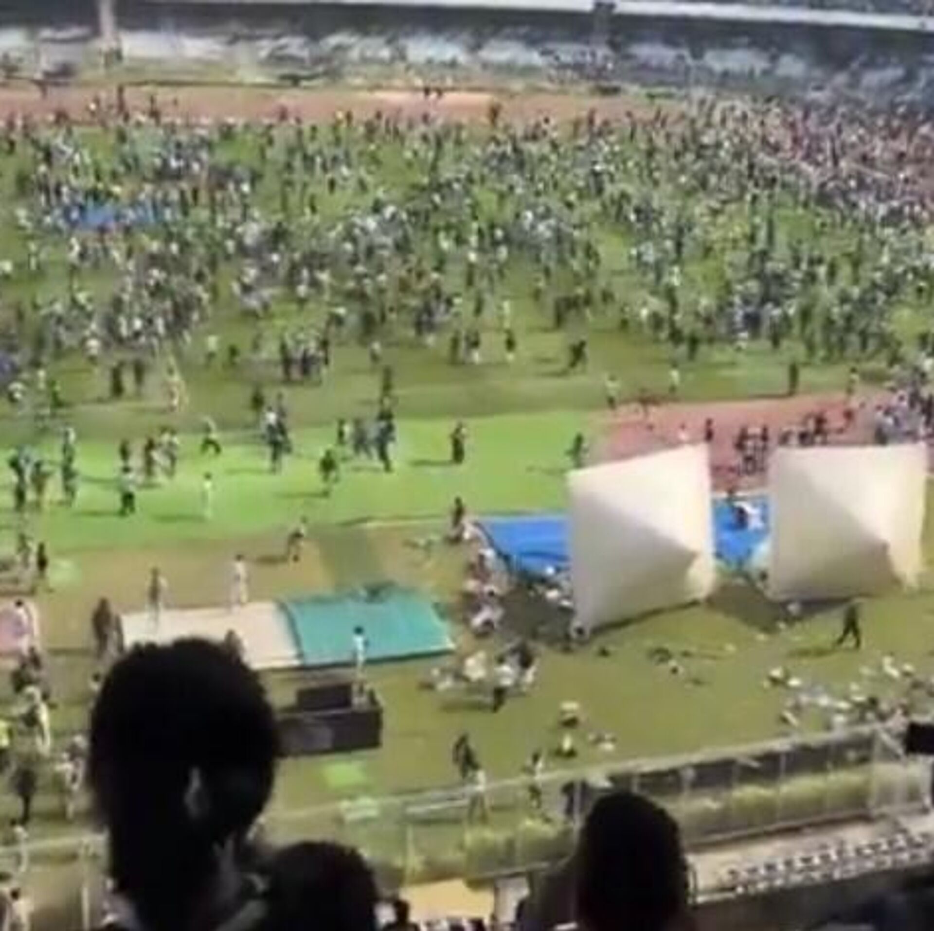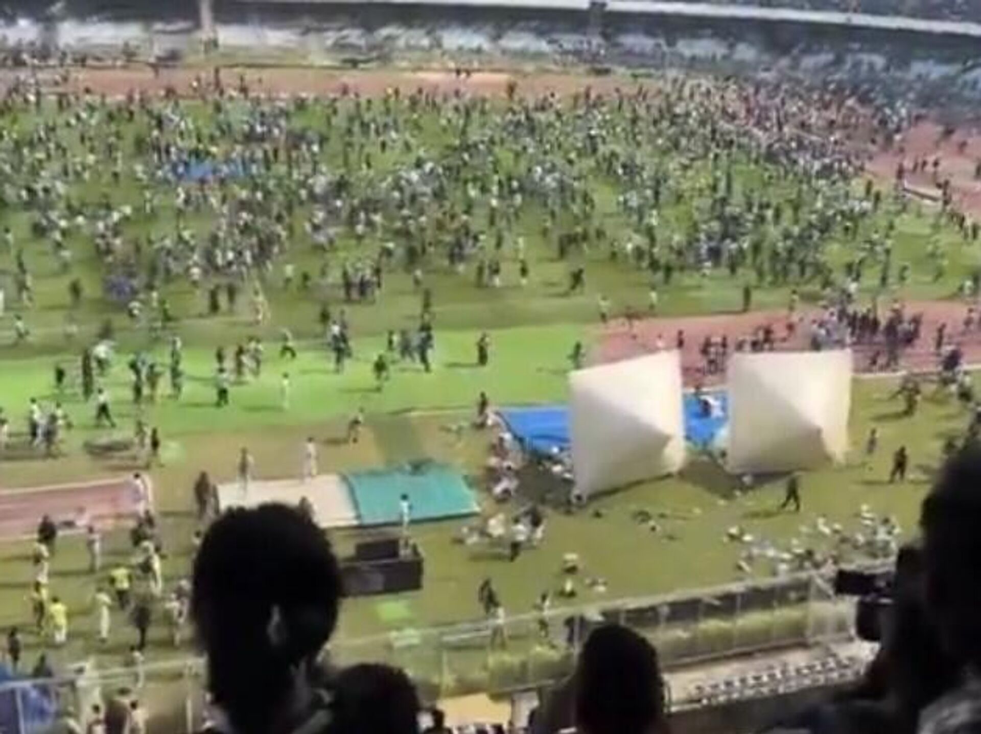 وتظهر فيديوهات تناقلتها التلفزيونات والمواقع الإعلامية ومنصات التواصل الاجتماعي، الأعداد الهائلة للمشجعين الذين اجتاحوا الملعب، بعد أن