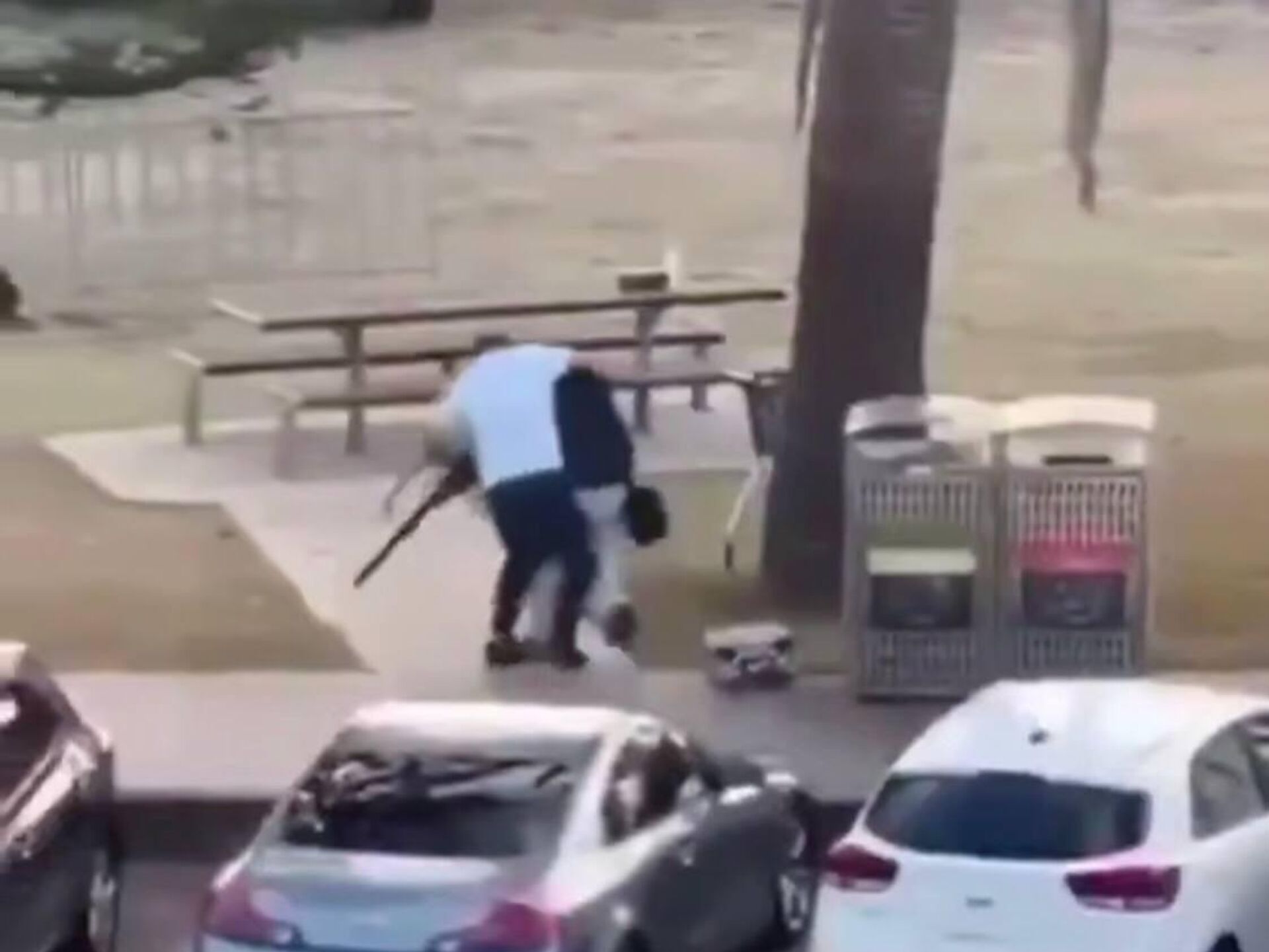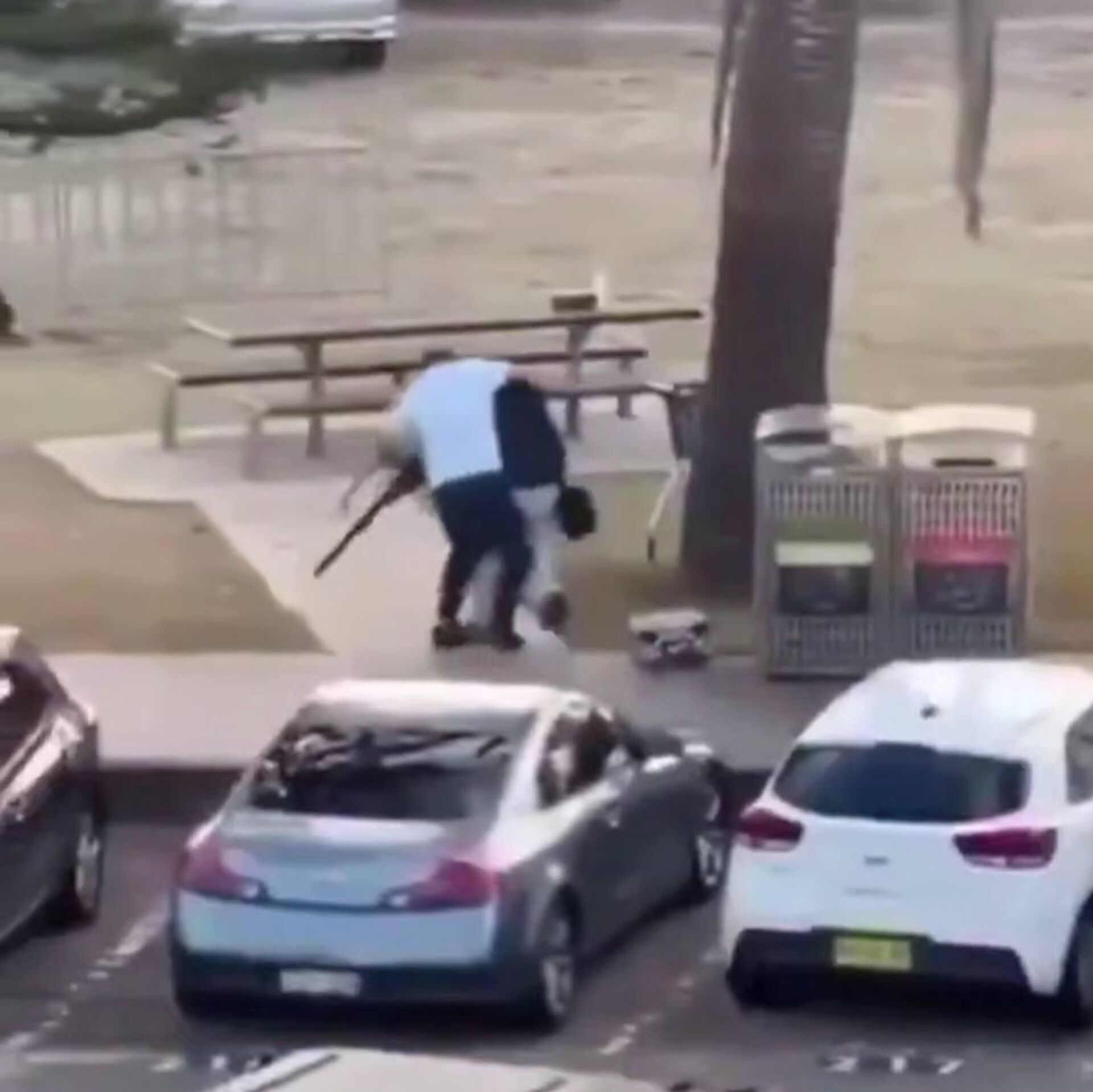 وظهر أحد منفذي الهجوم المسلح على شاطئ بوندي، اليوم الأحد، وهو يتجول بعد إقدامه على قتل عدد من المواطنين، قبل أن ينقض عليه رجل من خلفه، وينتزع منه البندقية بخفة، ليمسك بها.