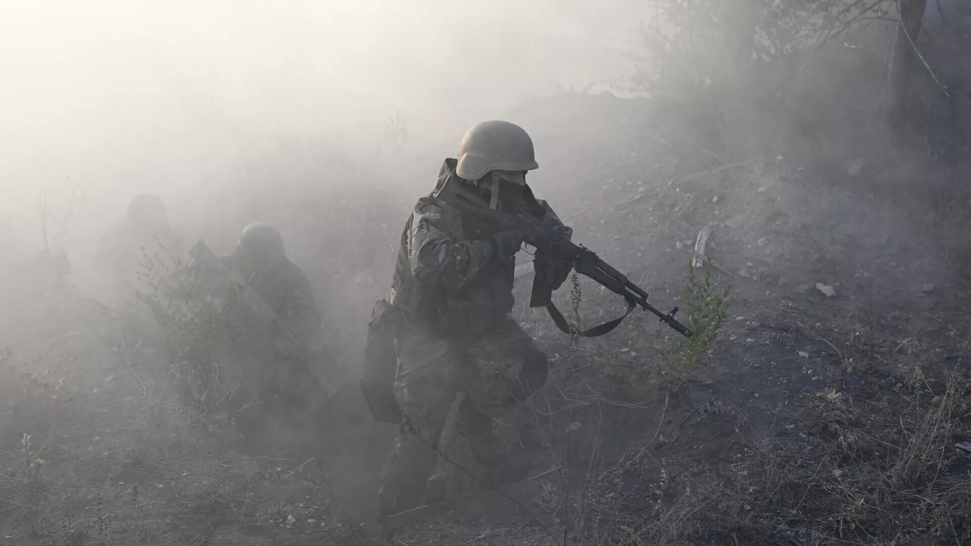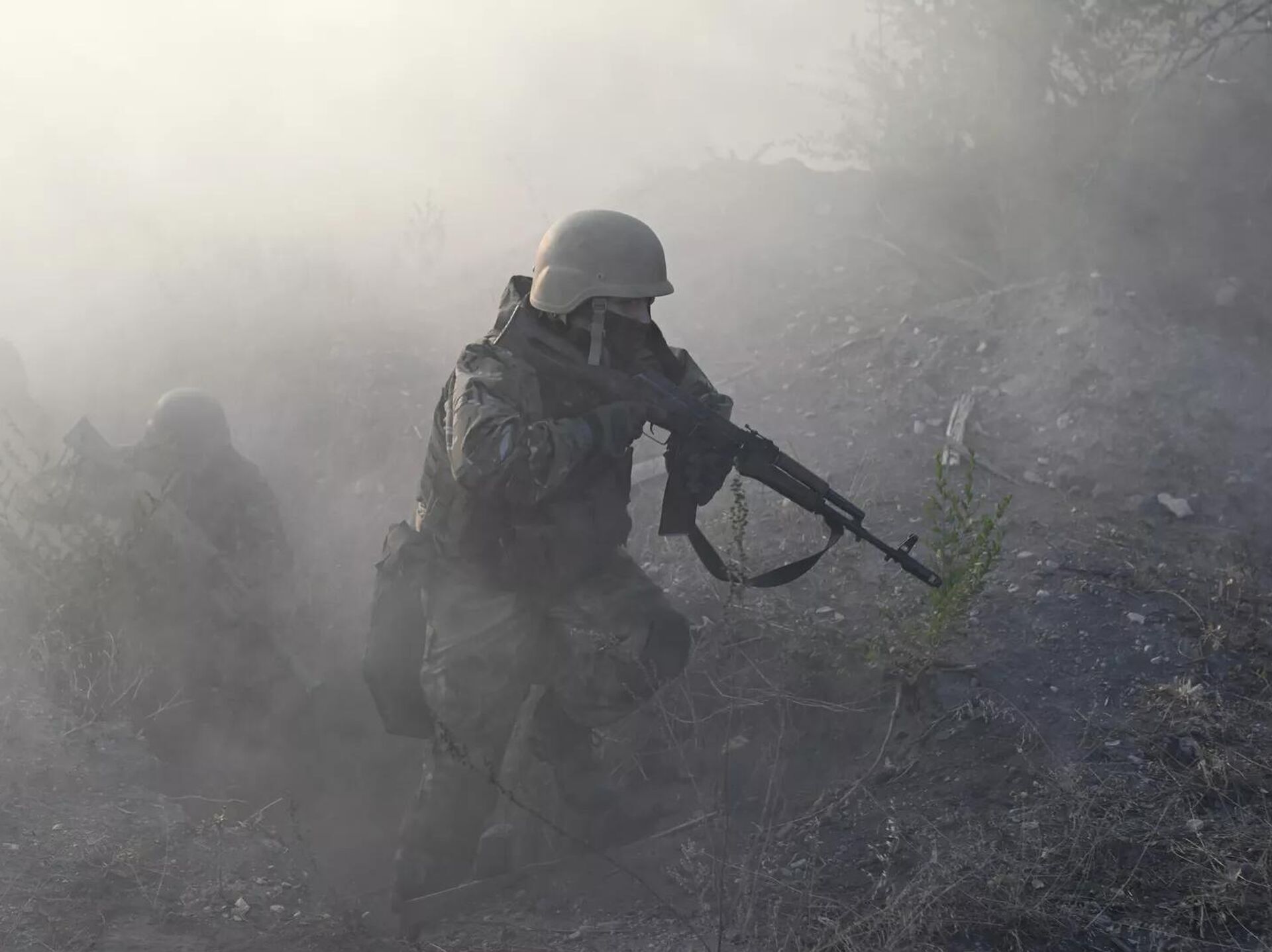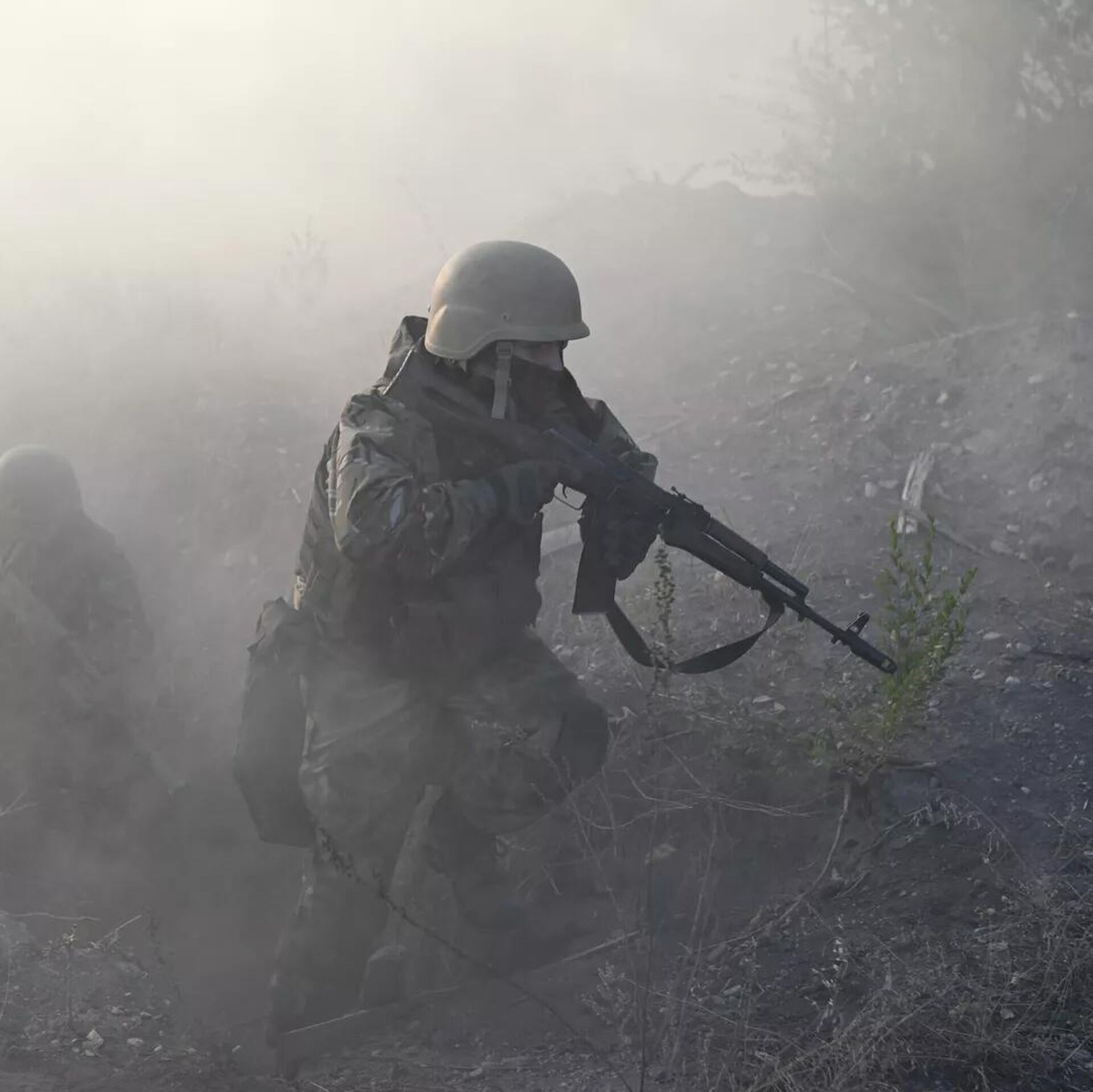 Военнослужащие 1430-го гвардейского мотострелкового полка ВС РФ на занятиях по штурмовым действиям и ведение боя в окопах на Запорожском направлении в зоне специальной военной операции - سبوتنيك عربي, 1920