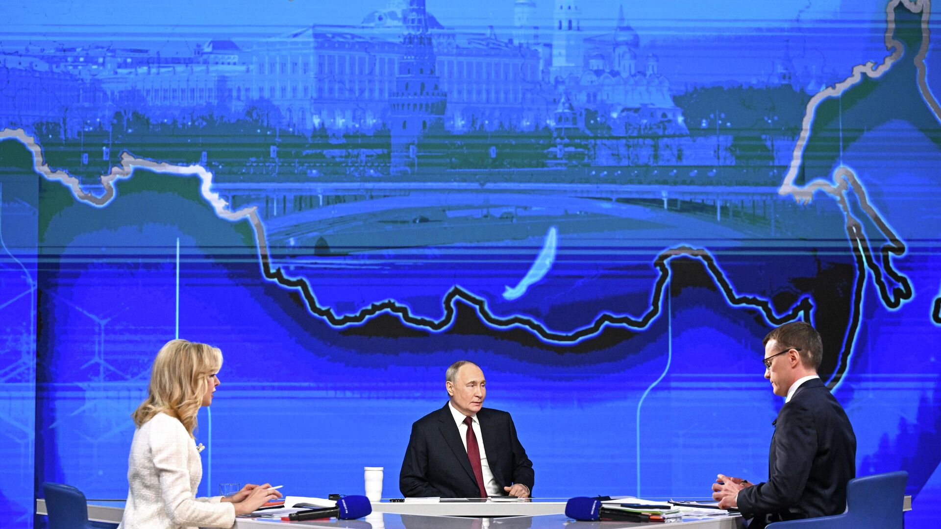 يجري الرئيس الروسي فلاديمير بوتين، اليوم الجمعة، الحوار السنوي المعروف باسم "نتائج العام"، الذي يتيح للمواطنين الروس طرح أسئلتهم مباشرة على رئيس الدولة بشأن القضايا السياسية والاقتصادية والاجتماعية، إضافة إلى ملفات السياسة الخارجية.