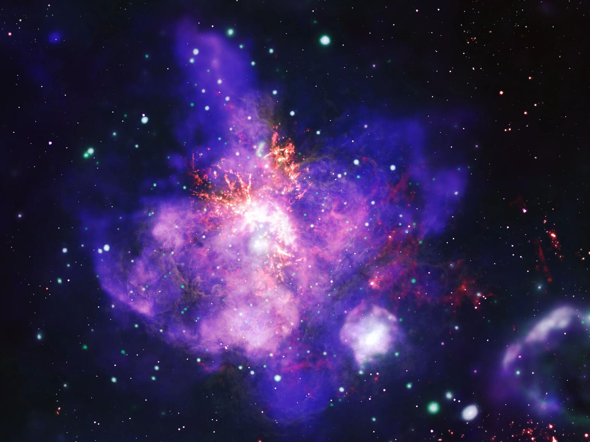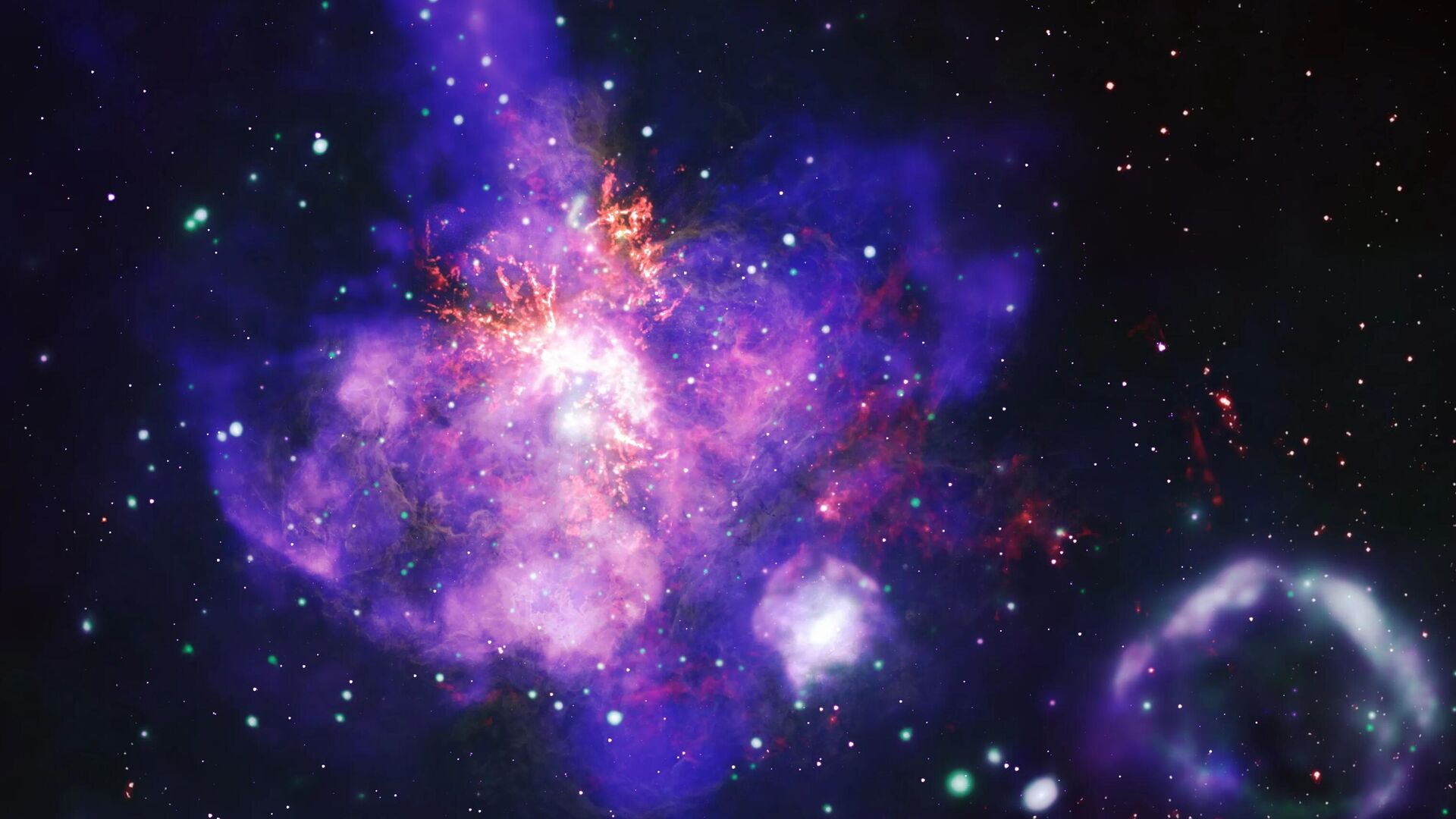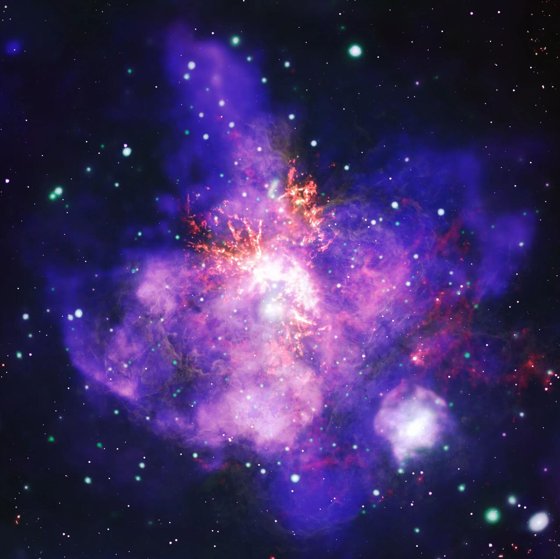 باقة من آلاف النجوم المزهرة في منطقة تكوين النجوم "30 Doradus"، تم تكوينها من أعمق صورة بالأشعة السينية على الإطلاق