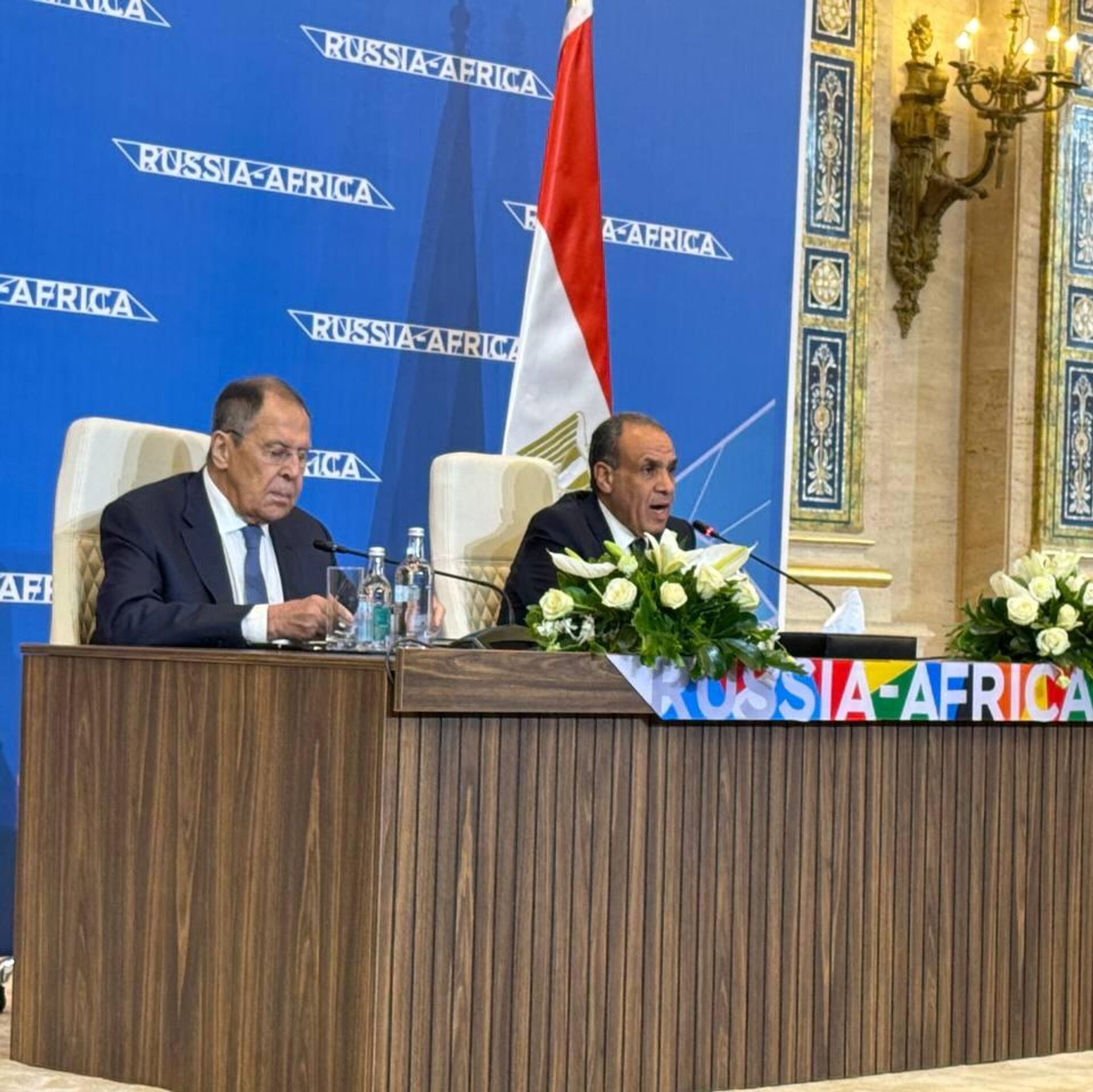 يعقد وزير الخارجية الروسي سيرغي لافروف مع وزير الخارجية المصري بدر عبد العاطي، مؤتمرا صحفيا، عقب المؤتمر الوزاري الثاني لمنتدى "الشراكة الروسية الأفريقية" بالقاهرة.