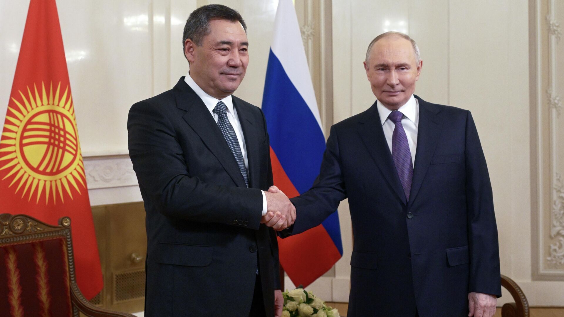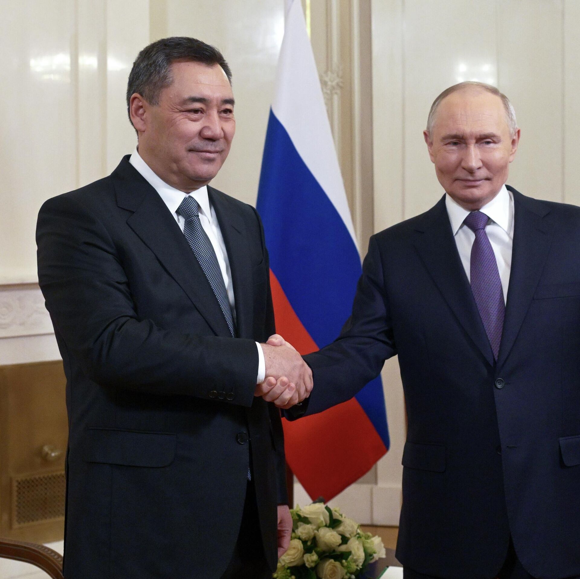 الرئيس الروسي فلاديمير بوتين والرئيس القرغيزي صدير جاباروف خلال اجتماع على هامش قمة المجلس الاقتصادي الأوراسي الأعلى في سانت بطرسبرغ. - سبوتنيك عربي, 1920, 21.12.2025