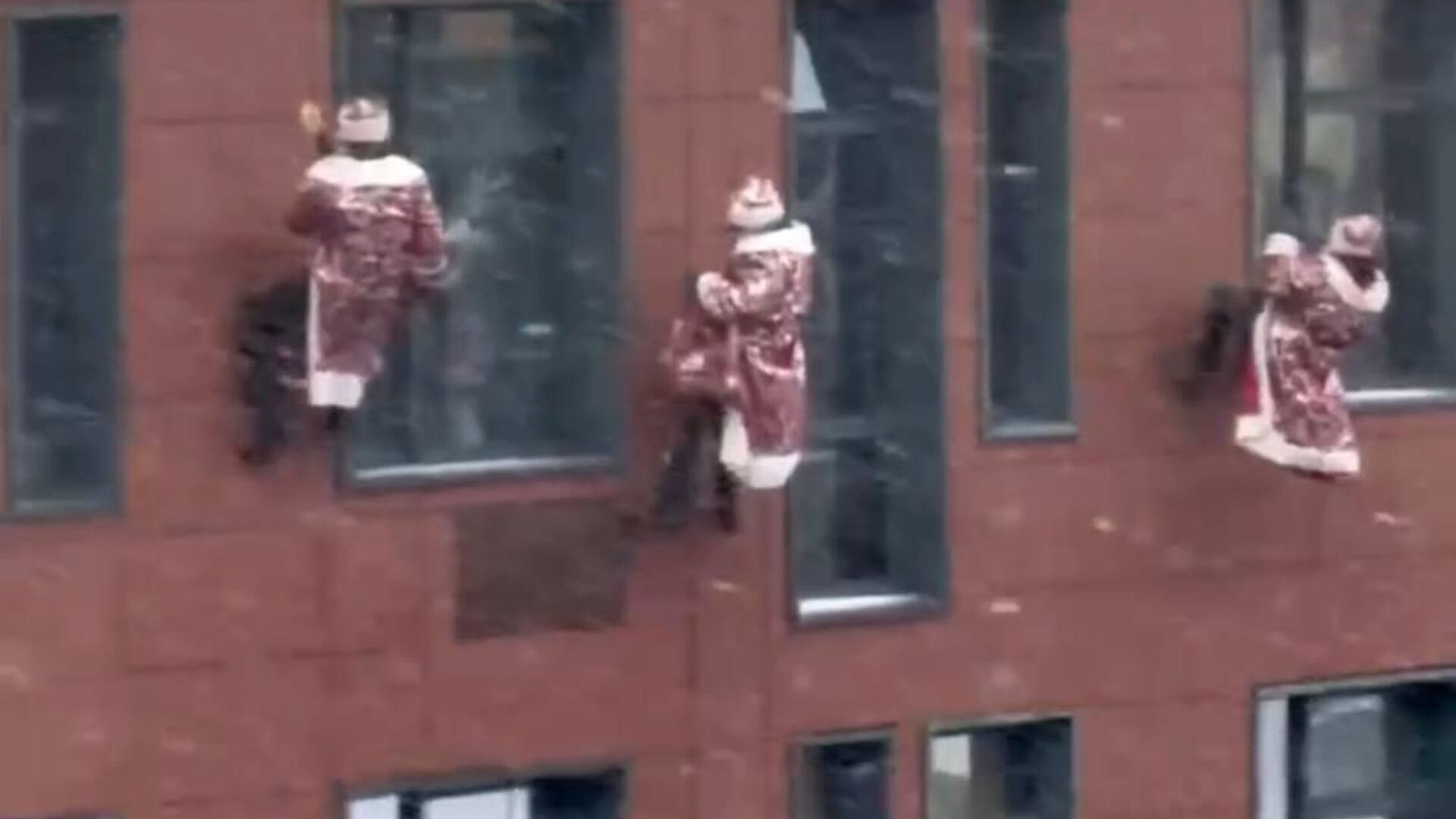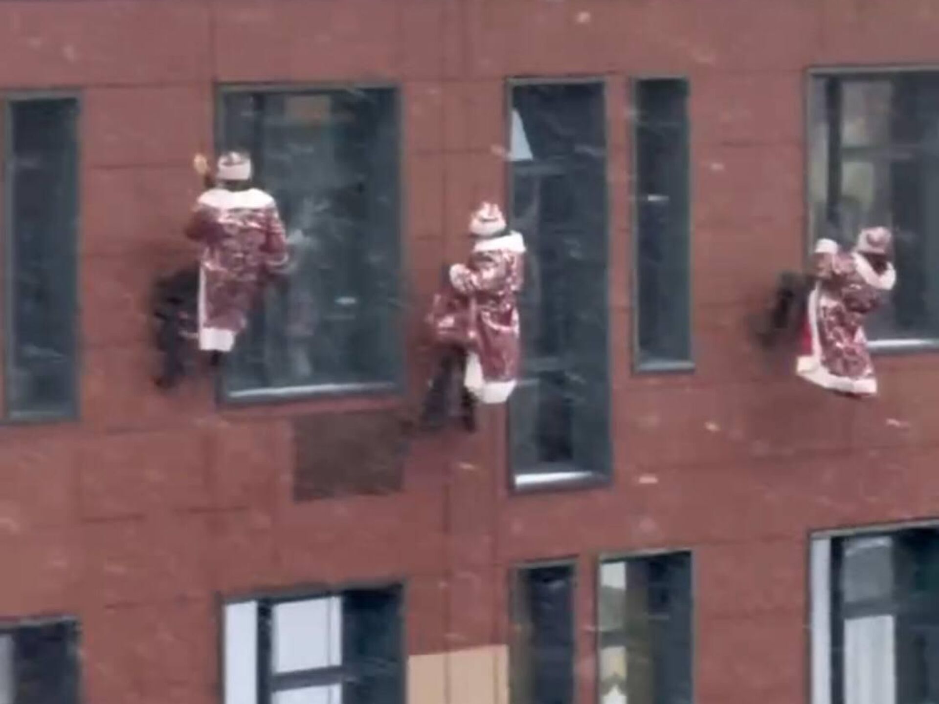 ارتدى رجال الإنقاذ في موسكو زي "بابا نويل"، وأجروا عملية إنزال من سطح مستشفى لإسعاد المرضى الصغار.