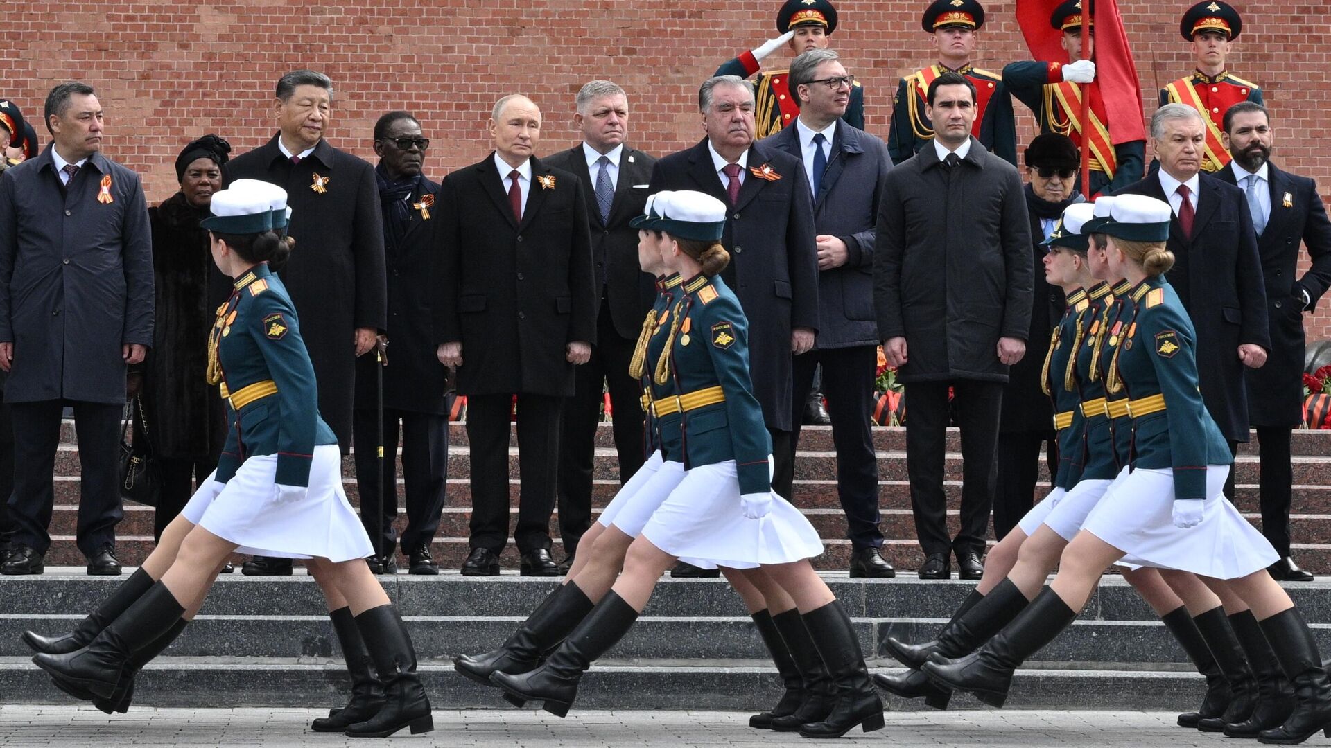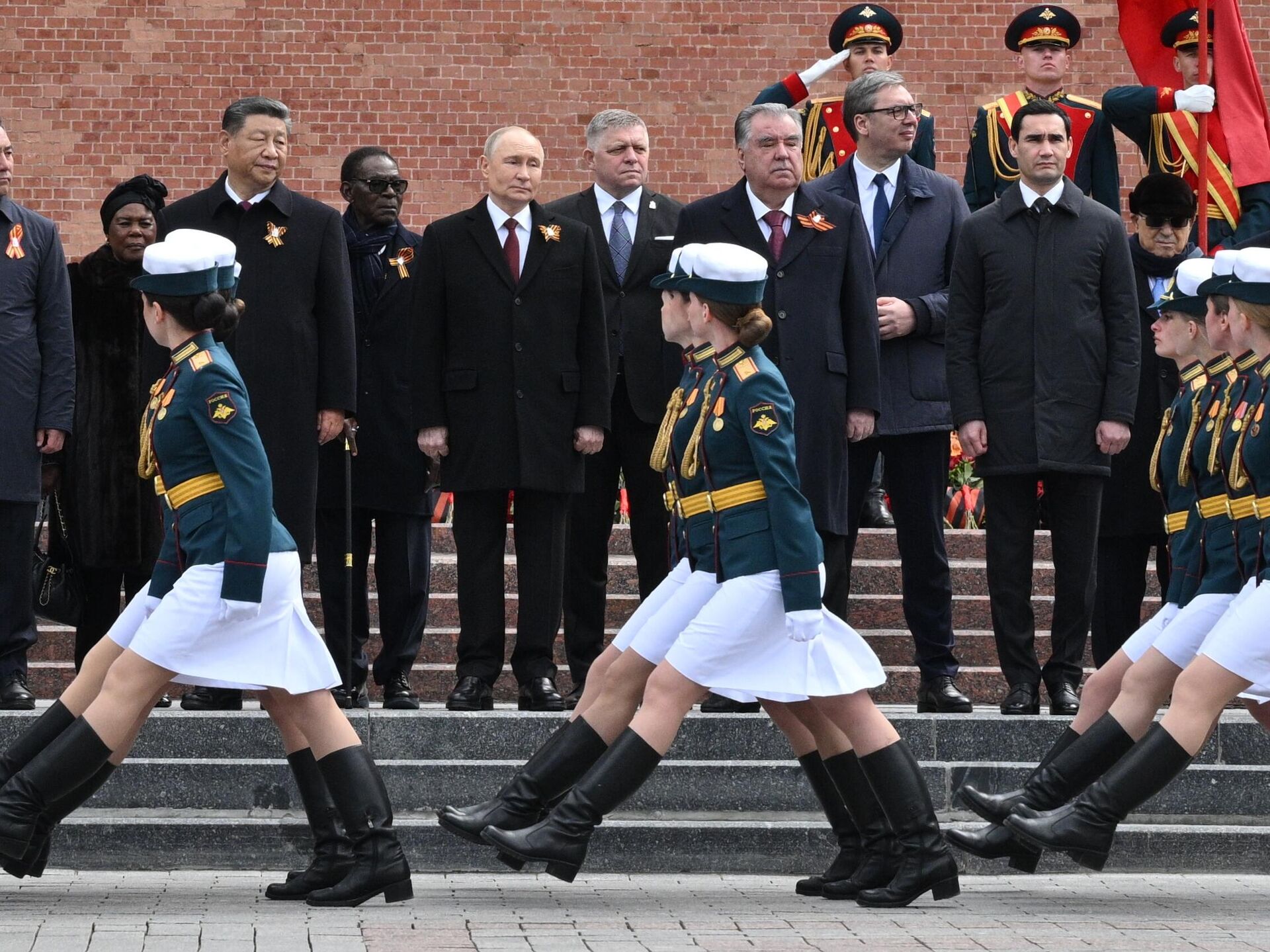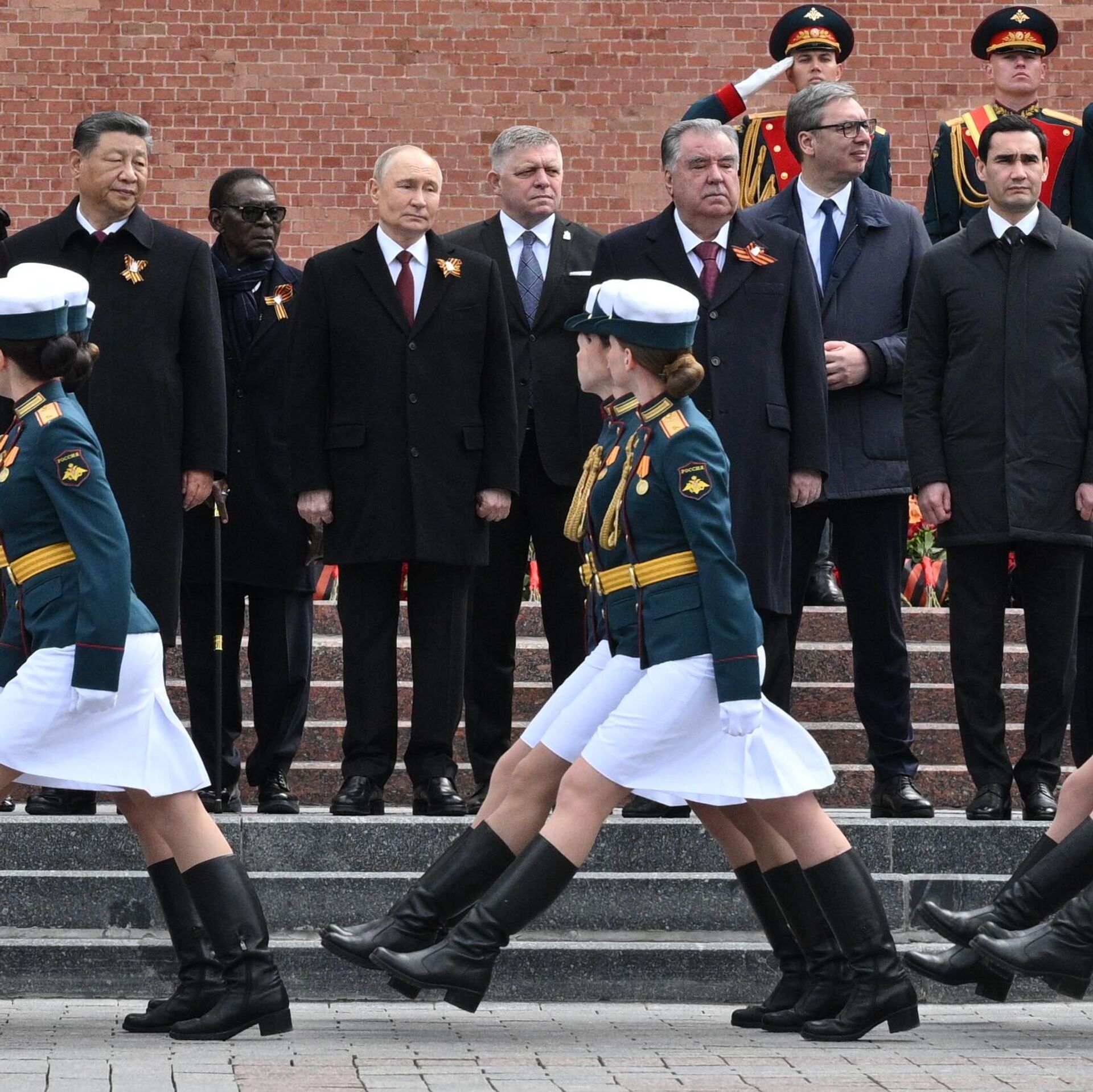 الرئيس الروسي فلاديمير بوتين، وعدد من القادة الأجانب يشاركون في مراسم مشتركة لوضع أكاليل الزهور على ضريح الجندي المجهول في حديقة "ألكسندر" بالعاصمة موسكو
