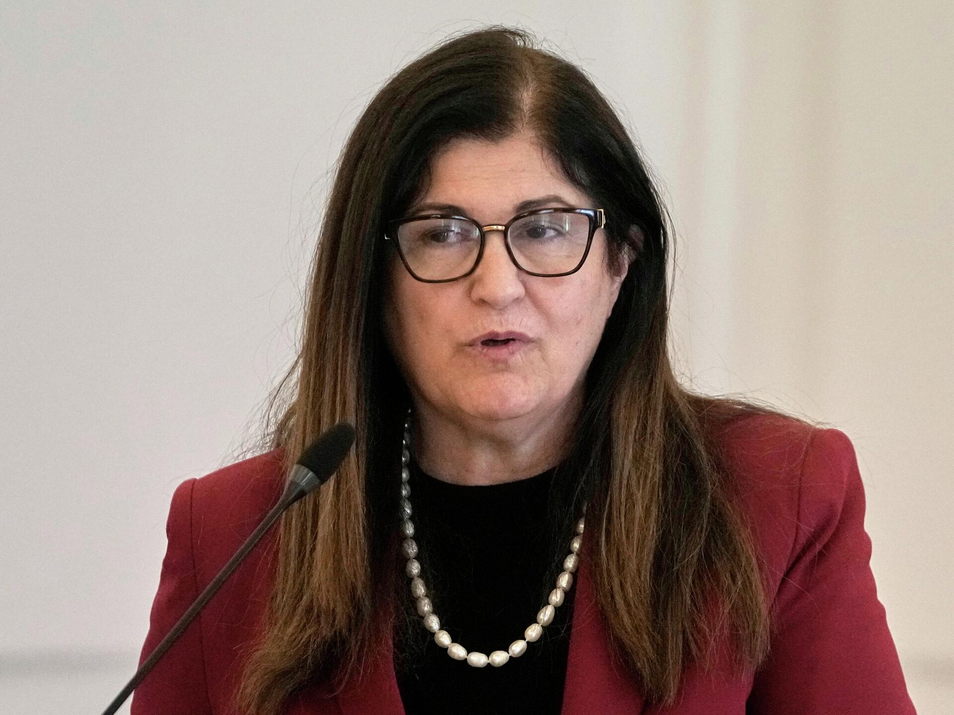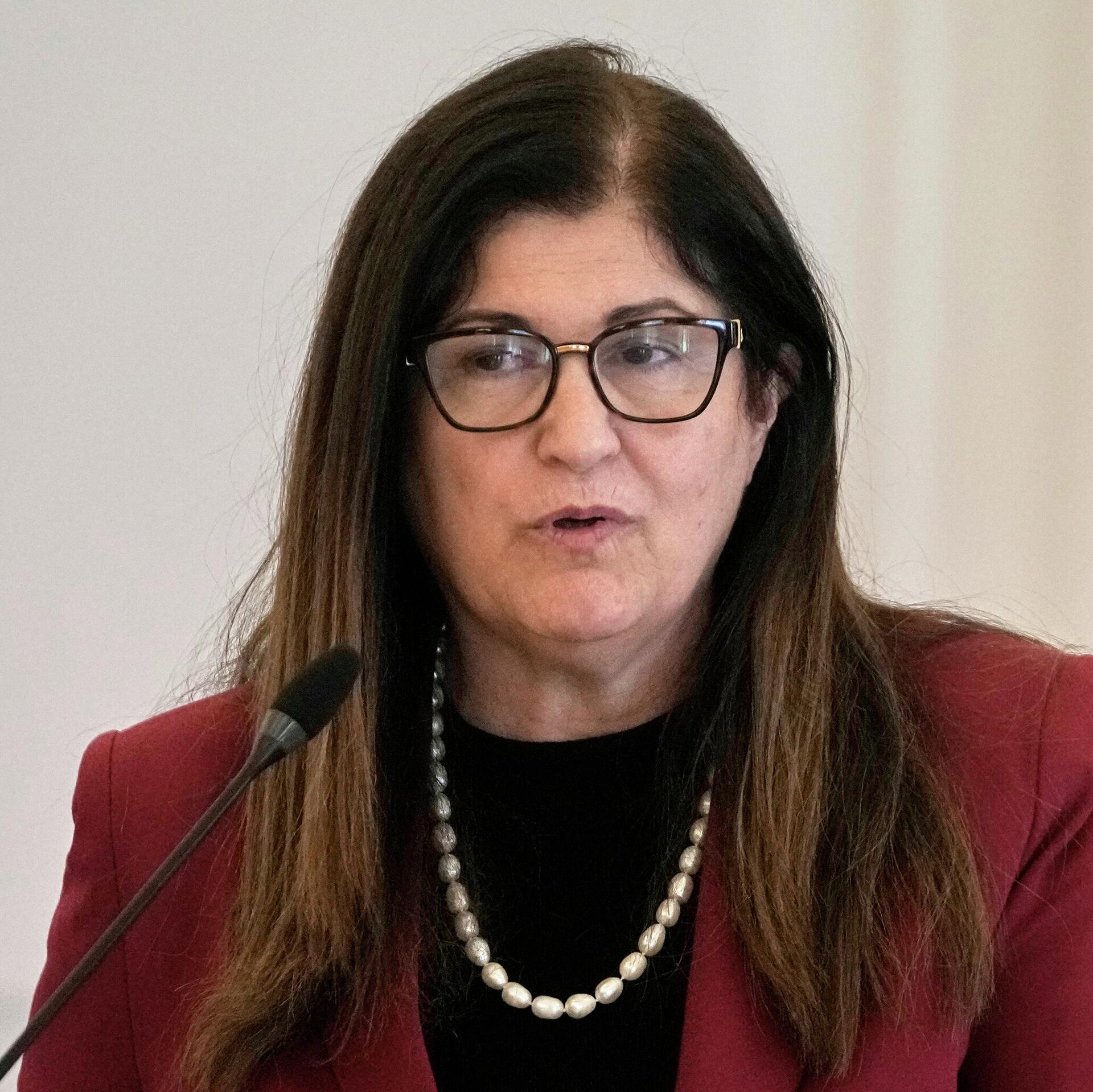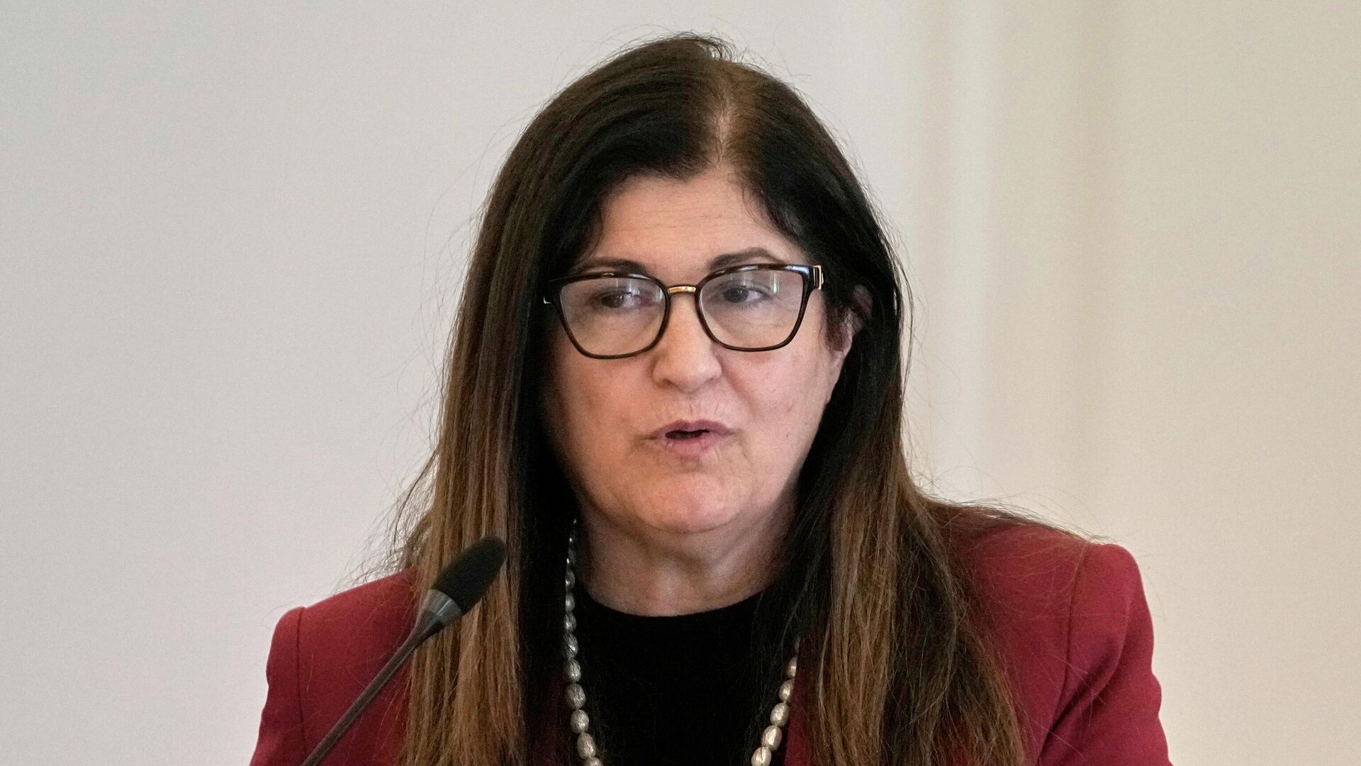 © AP Photo / Thanassis Stavrakisالدكتورة فارسين أغابيكيان شاهين، وزيرة الخارجية والمغتربين لدولة فلسطين