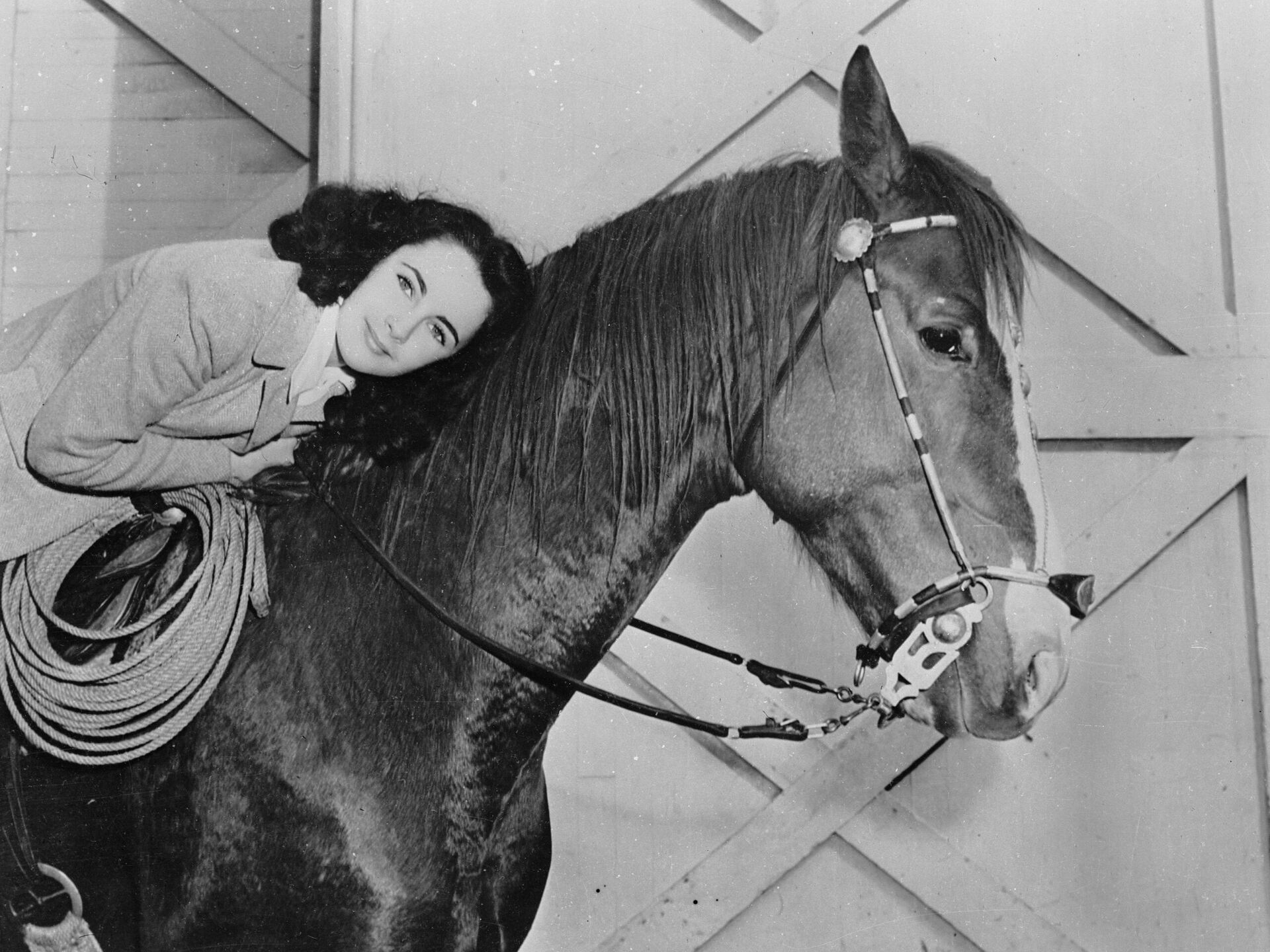 الممثلة الأمريكية المولودة في بريطانيا، إليزابيث تايلور، على ظهر حصان عام 1945