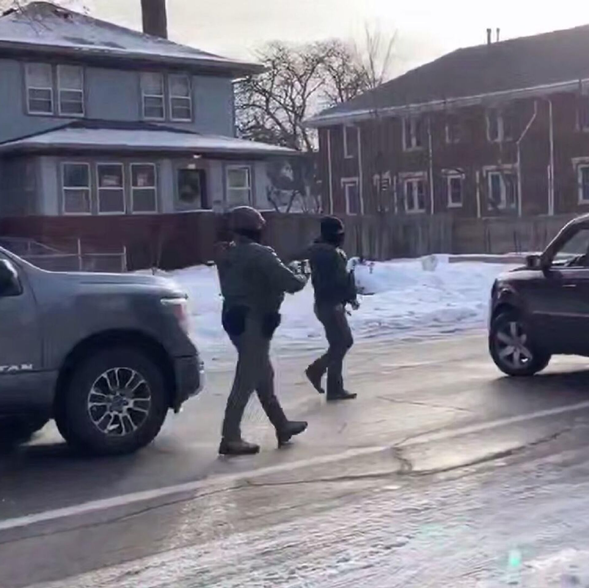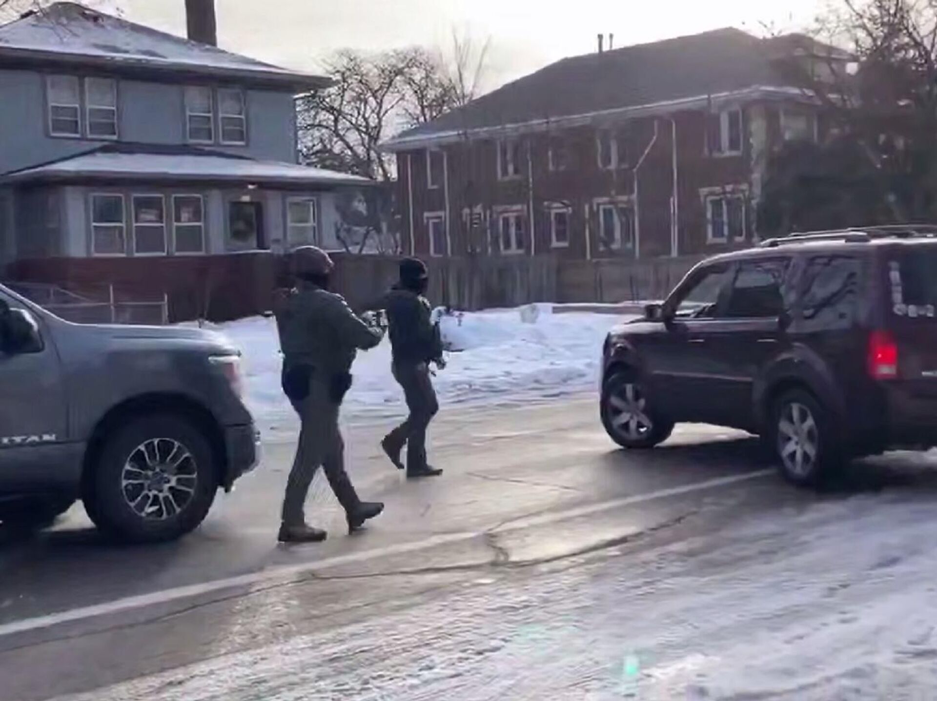 وأظهرت مقاطع فيديو التقطها شهود عيان ونشرت على مواقع التواصل الاجتماعي، أحد عناصر وكالة الهجرة والجمارك وهو يقترب من سيارة كانت متوقفة وسط الطريق، محاولا فتح باب السائق.