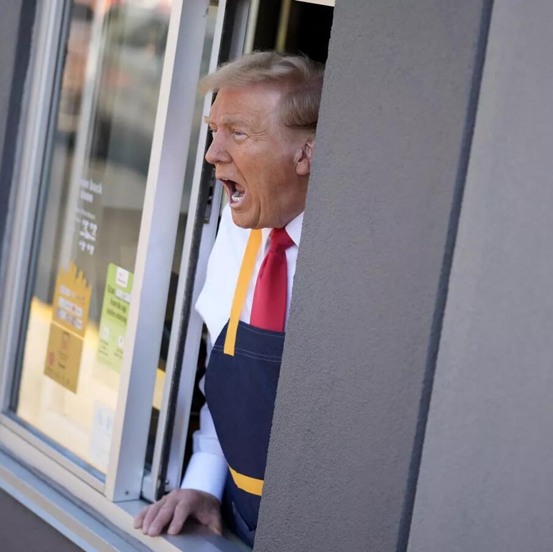 وكان ترامب يرتدي مئزر مطاعم "ماكدونالدز" ودخل مطبخ أحد الفروع في بنسلفانيا، ليساعد العمال في قلي البطاطس وتسليم الطلبات للزبائن.