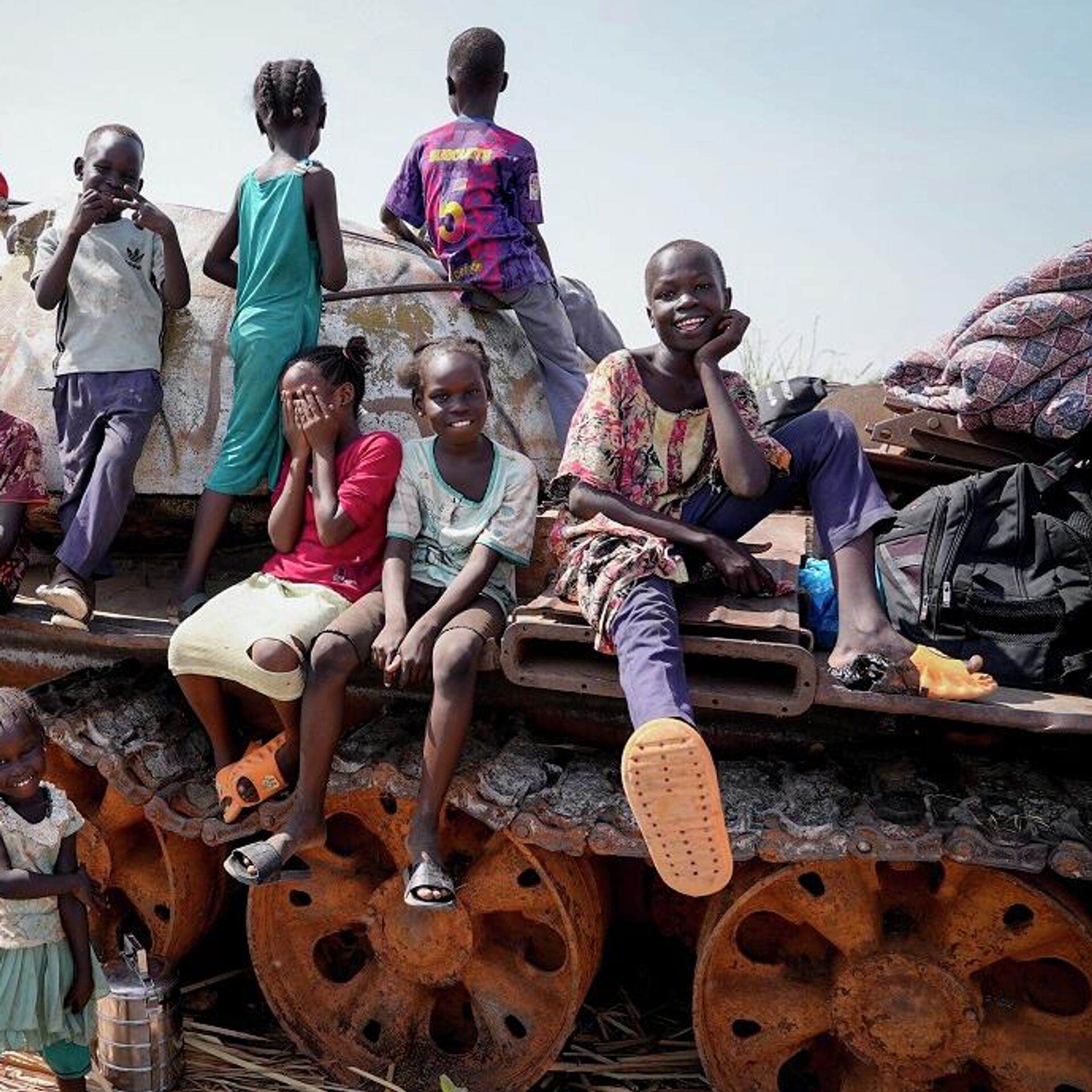 أطفال يلهون على بقايا دبابة في ميناء نهري في رينك، جنوب السودان، 17 مايو/ آيار 2023 - سبوتنيك عربي, 1920, 23.01.2026