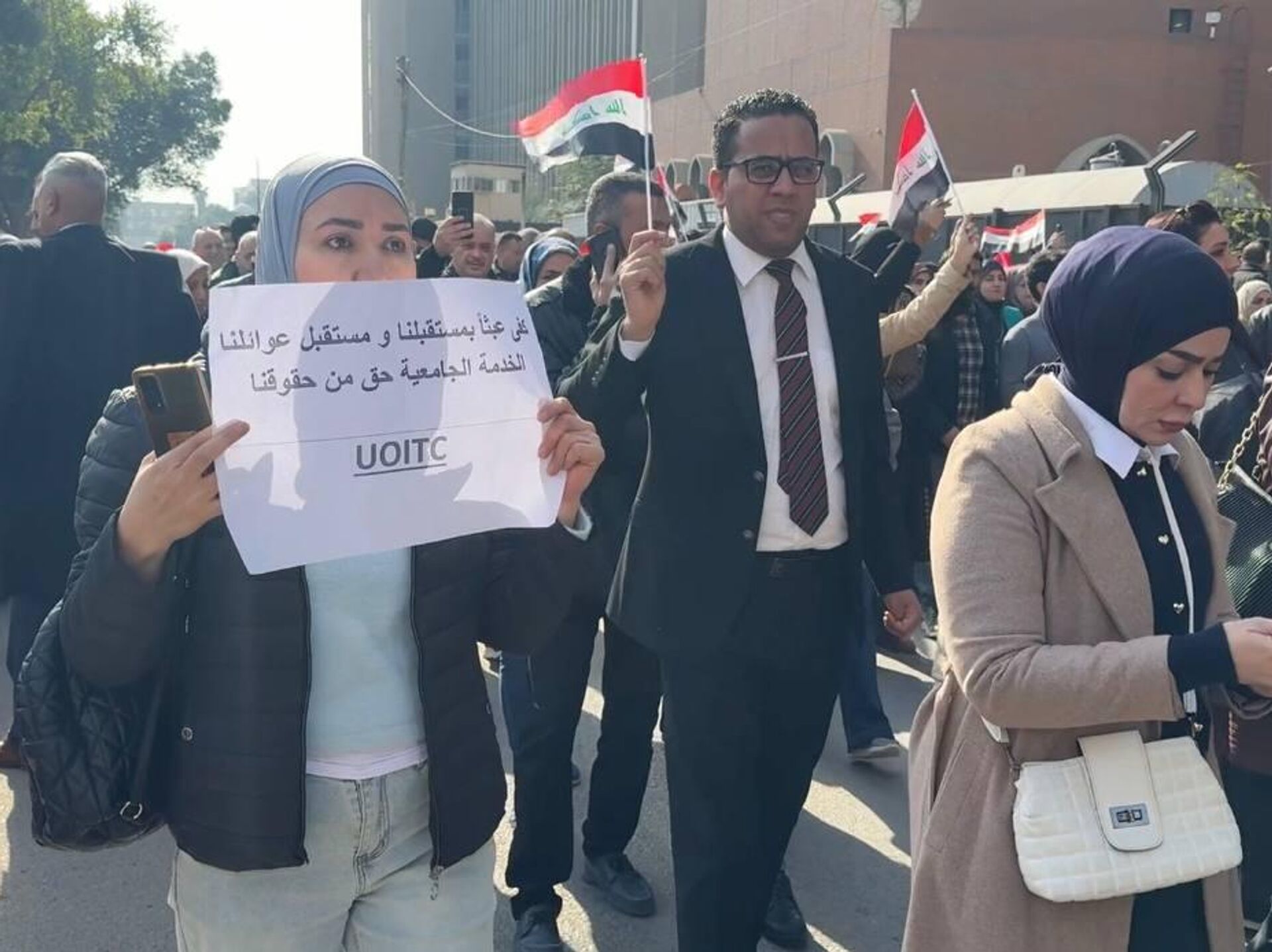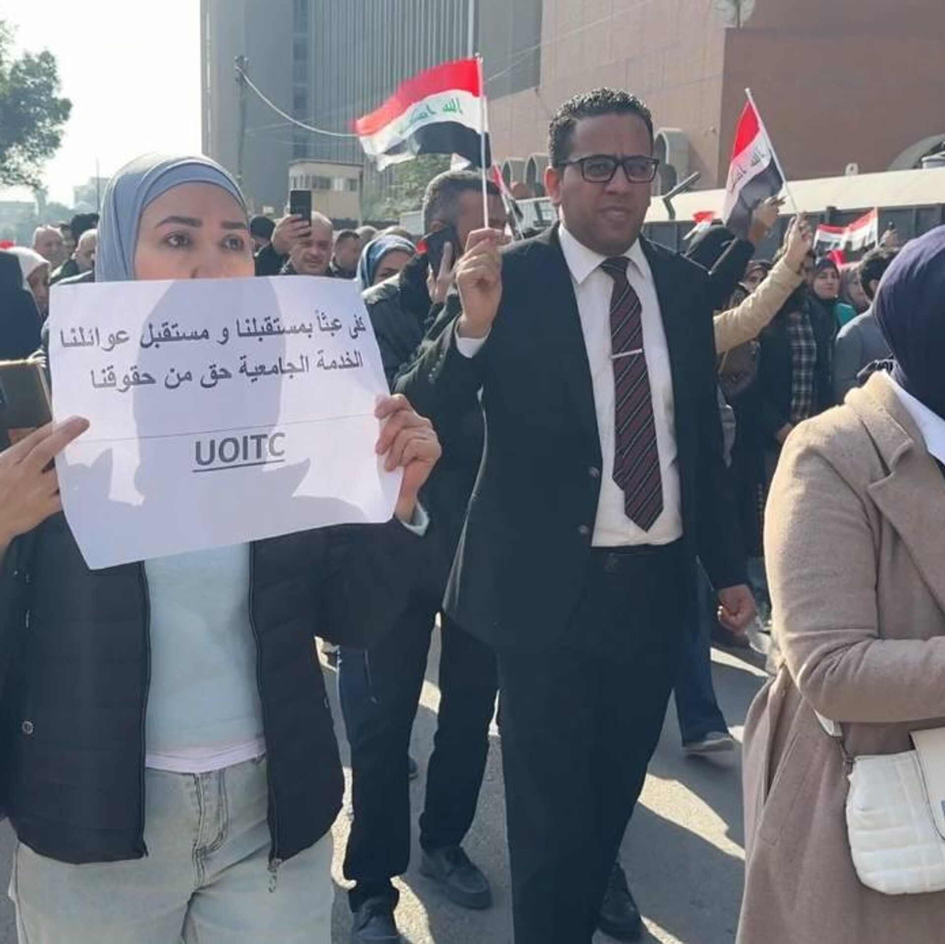 شهدت العاصمة بغداد، اليوم الأحد، تحركات احتجاجية واسعة في الأوساط الجامعية، قادها موظفو الجامعات والمؤسسات التعليمية، اعتراضًا على قرار إلغاء مخصصات الخدمة الجامعية، بالتزامن مع إعلان إضراب مفتوح عن الدوام الرسمي إلى حين التراجع عن القرار.