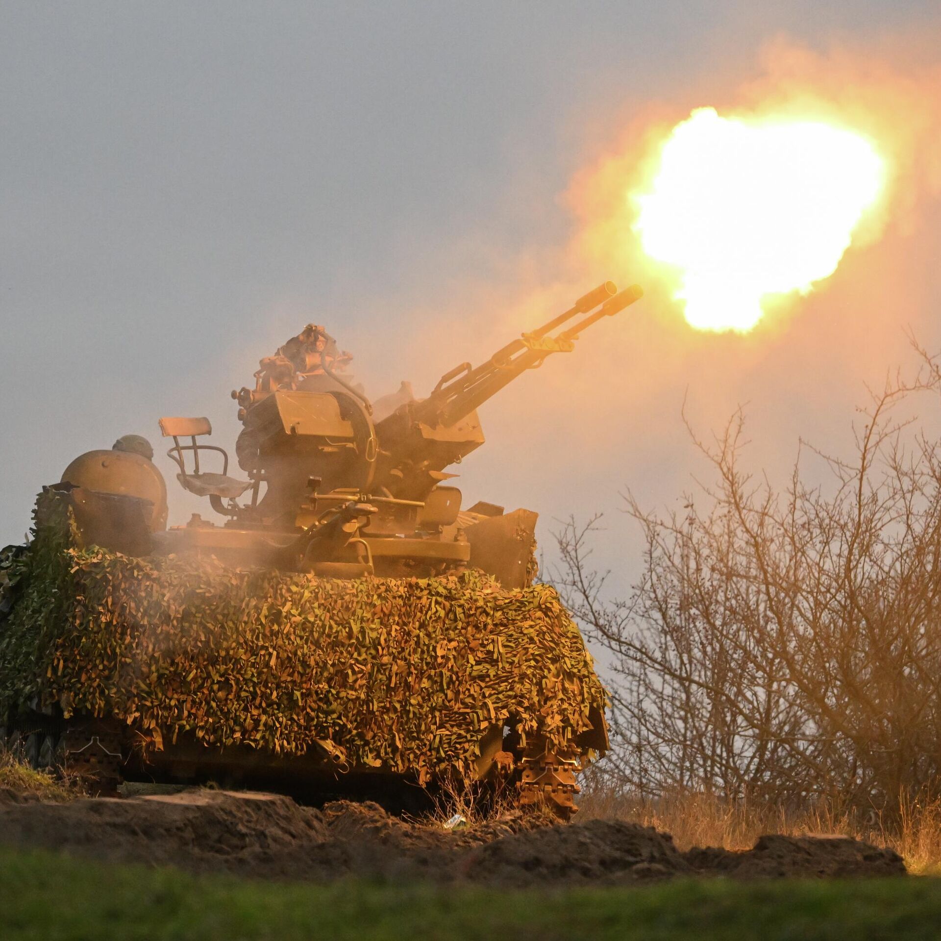 © Sputnik . Stanislav Krasilnikov / الانتقال إلى بنك الصورمدرعة تابع لقوات "الغرب" مزودة برشاش "زي أو 23" الثقيل المضاد للدروع