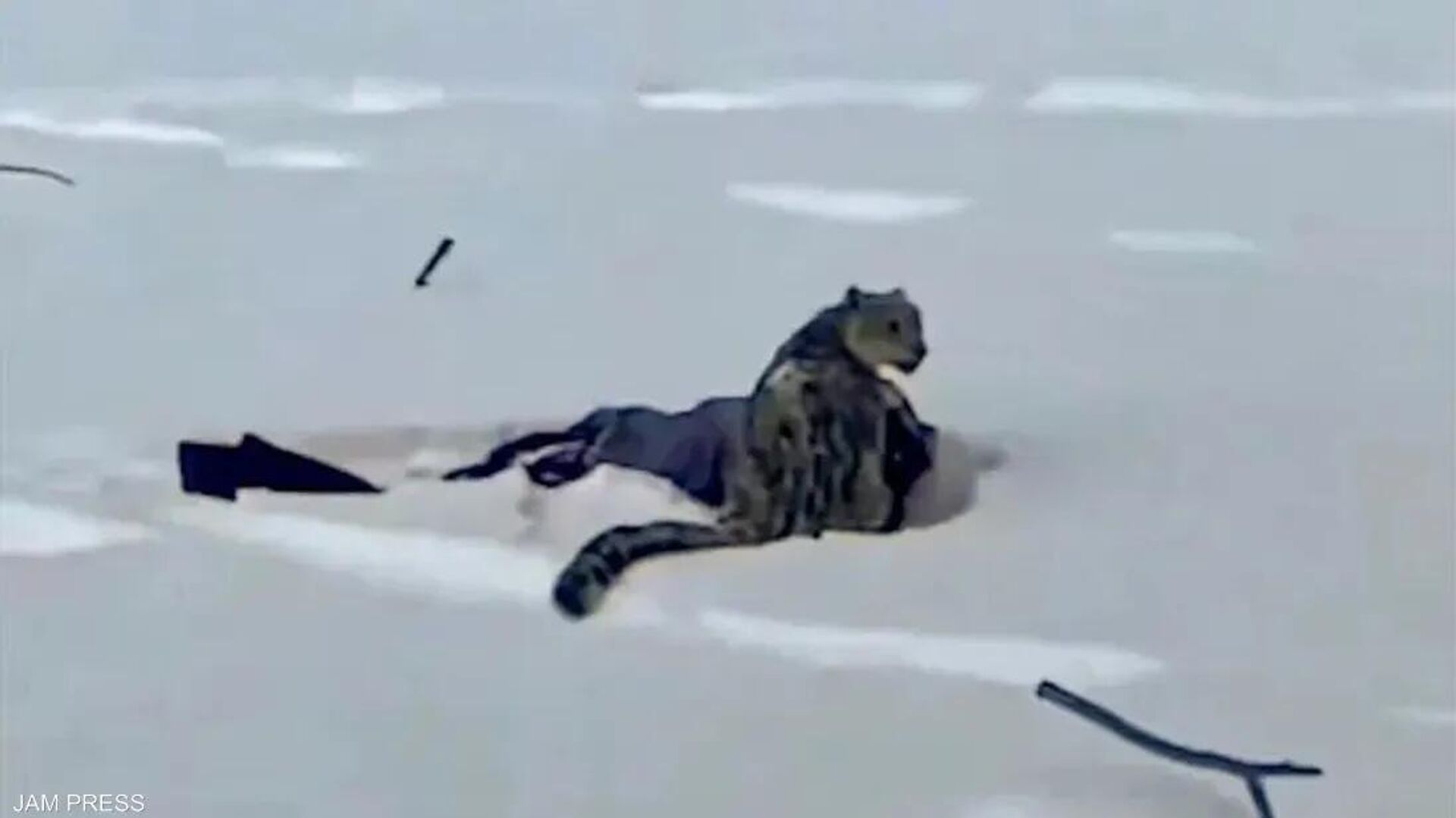 ويظهر مقطع الفيديو المتداول، المرأة ملقاة على الثلج دون حراك، بينما كان النمر الثلجي يحوم بالقرب منها عقب الهجوم، بعد أن اقتربت منه لمسافة تقدر بنحو ثلاثة أمتار.