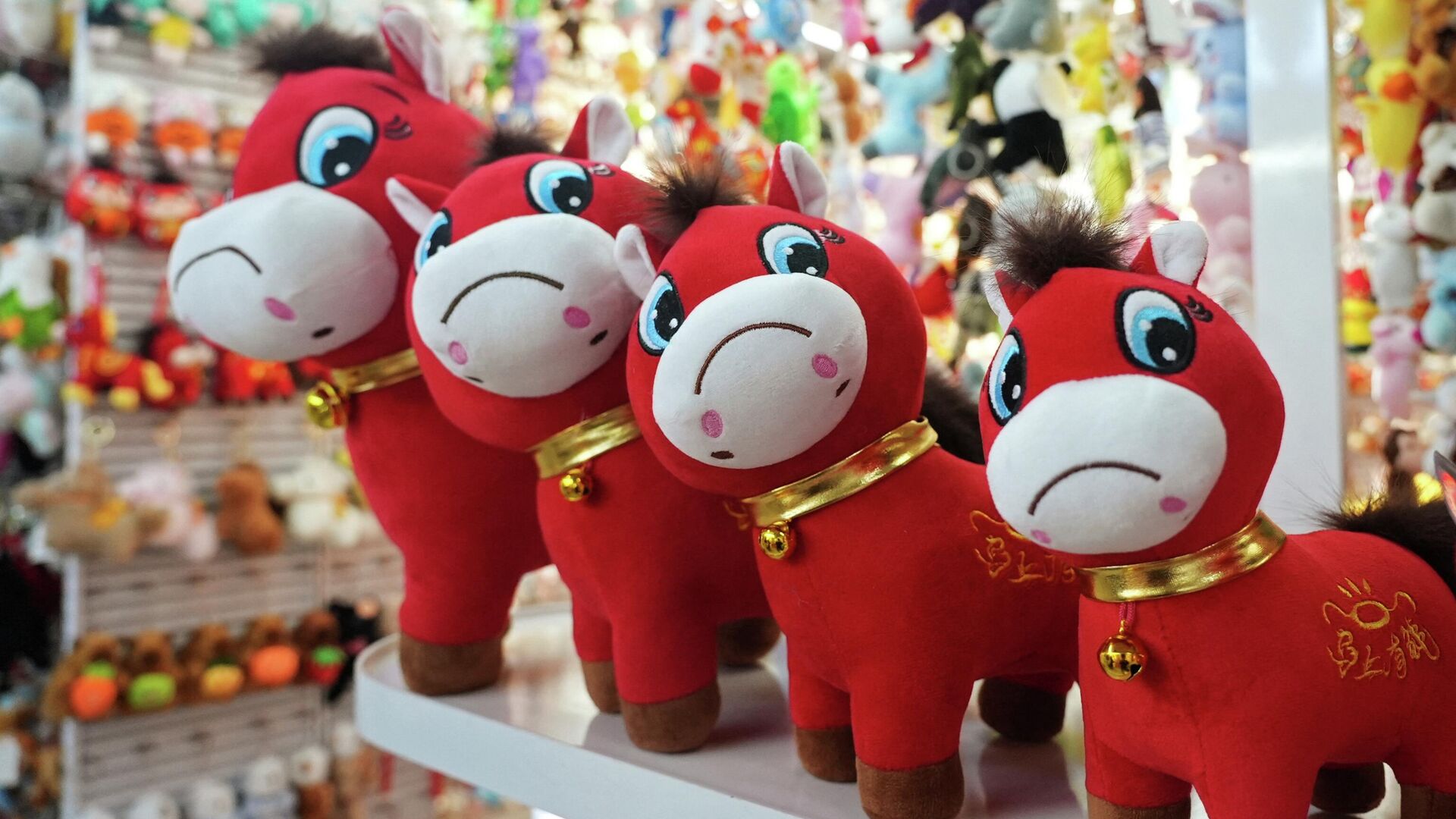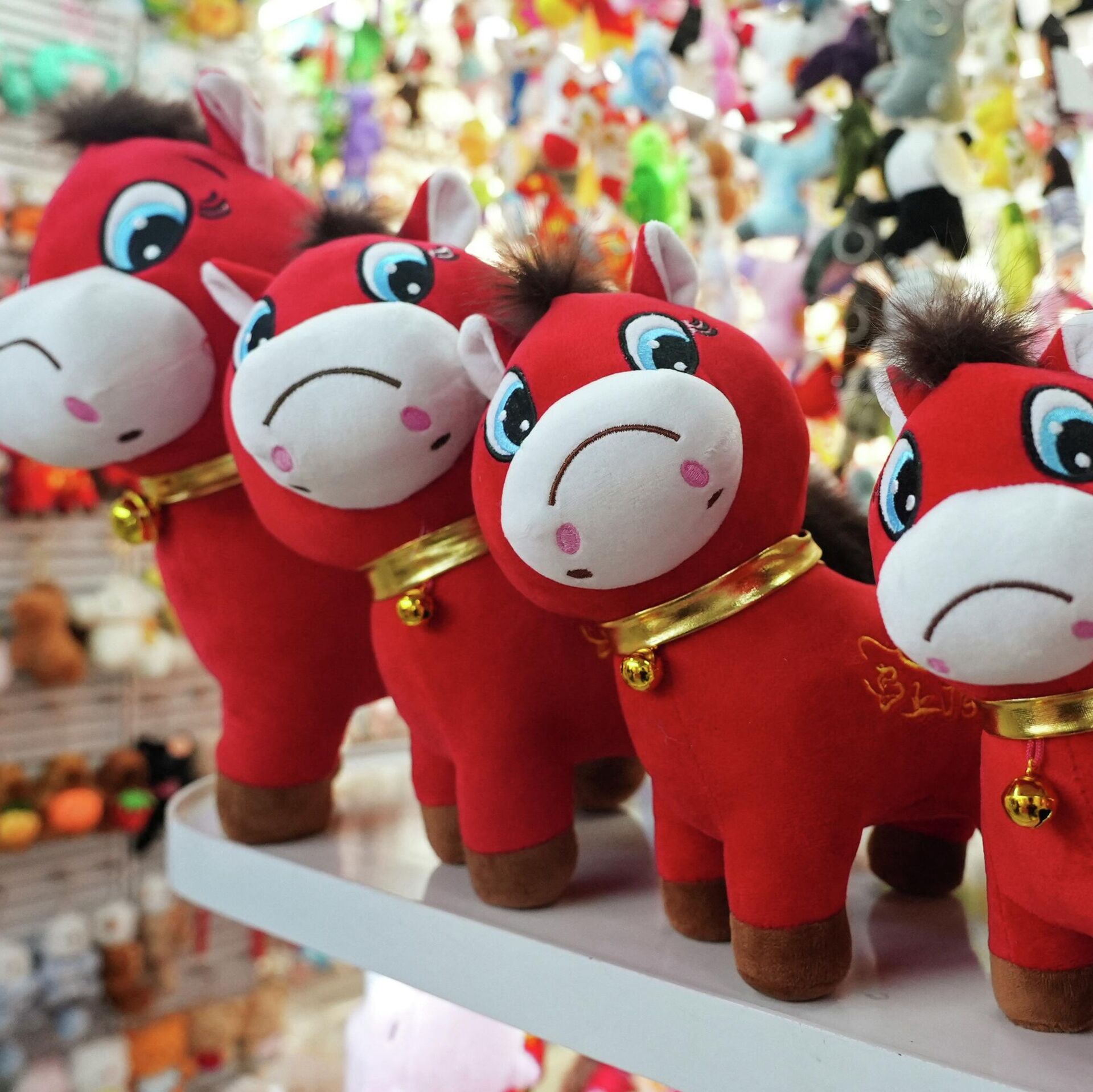 صورة لدمى الخيول القطنية الباكية في مدينة ييوو التجارية الدولية، في الصين، وذلك قبيل حلول العام الصيني الجديد، الذي سيُصادف عام الحصان.