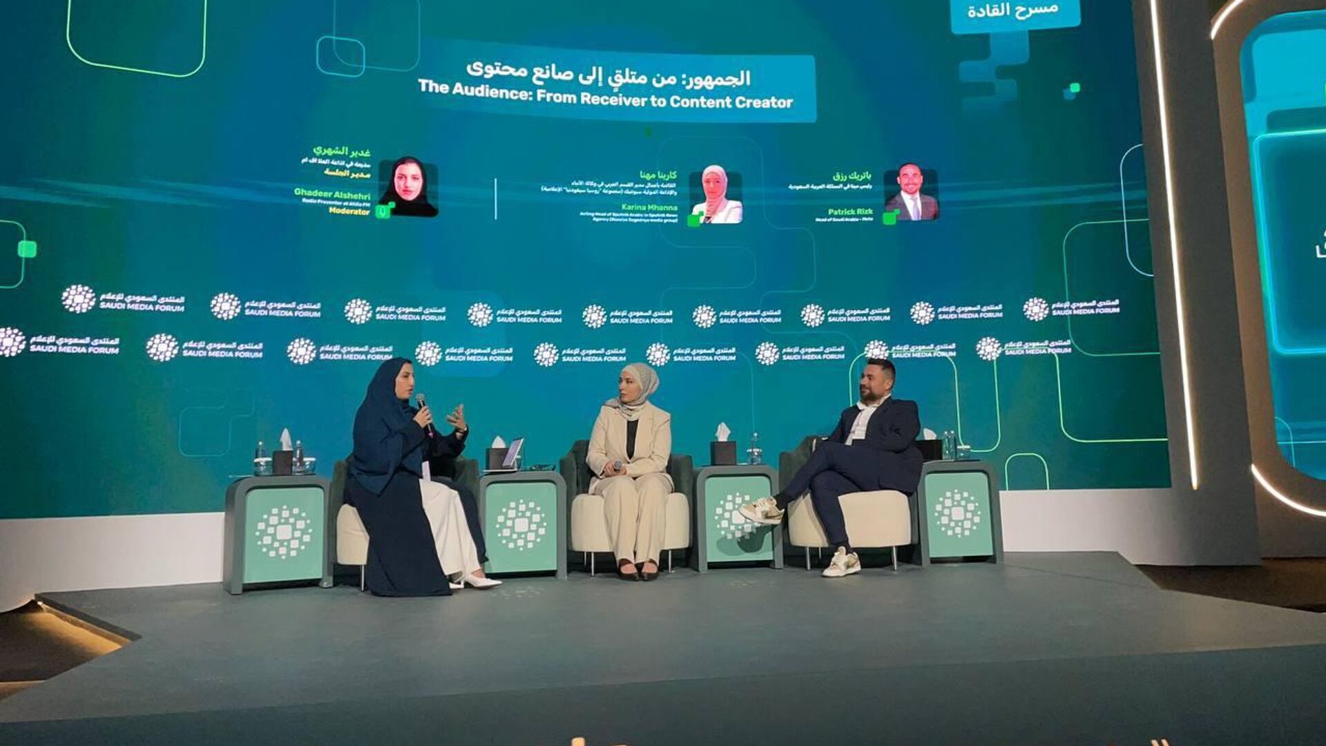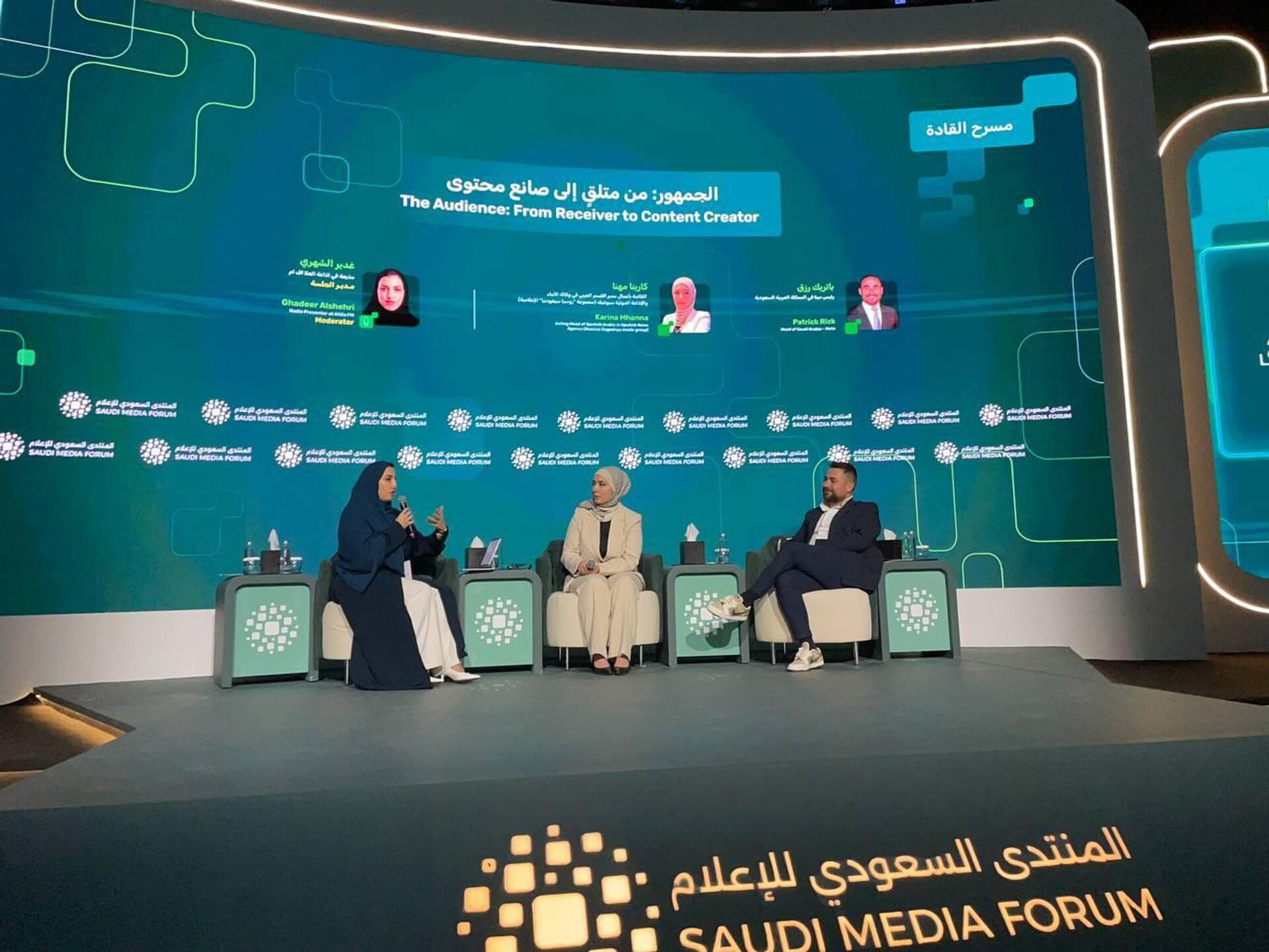 جاء ذلك خلال حديثها خلال جلسة "الجمهور: من متلق إلى صانع محتوى"، ضمن فعاليات المنتدى السعودي للإعلام في نسخته الخامسة، وبمشاركة مدير المشاريع الدولية وترويج المحتوى الدكتور نواف إبراهيم، حيث أجرى إبراهيم مجموعة من اللقاءات الهامة على هامش المنتدى مع عدد من المسؤولين في وزارة الاعلام السعودية وهيئة الاتصال، وسفراء بعض الدول المشاركة.
