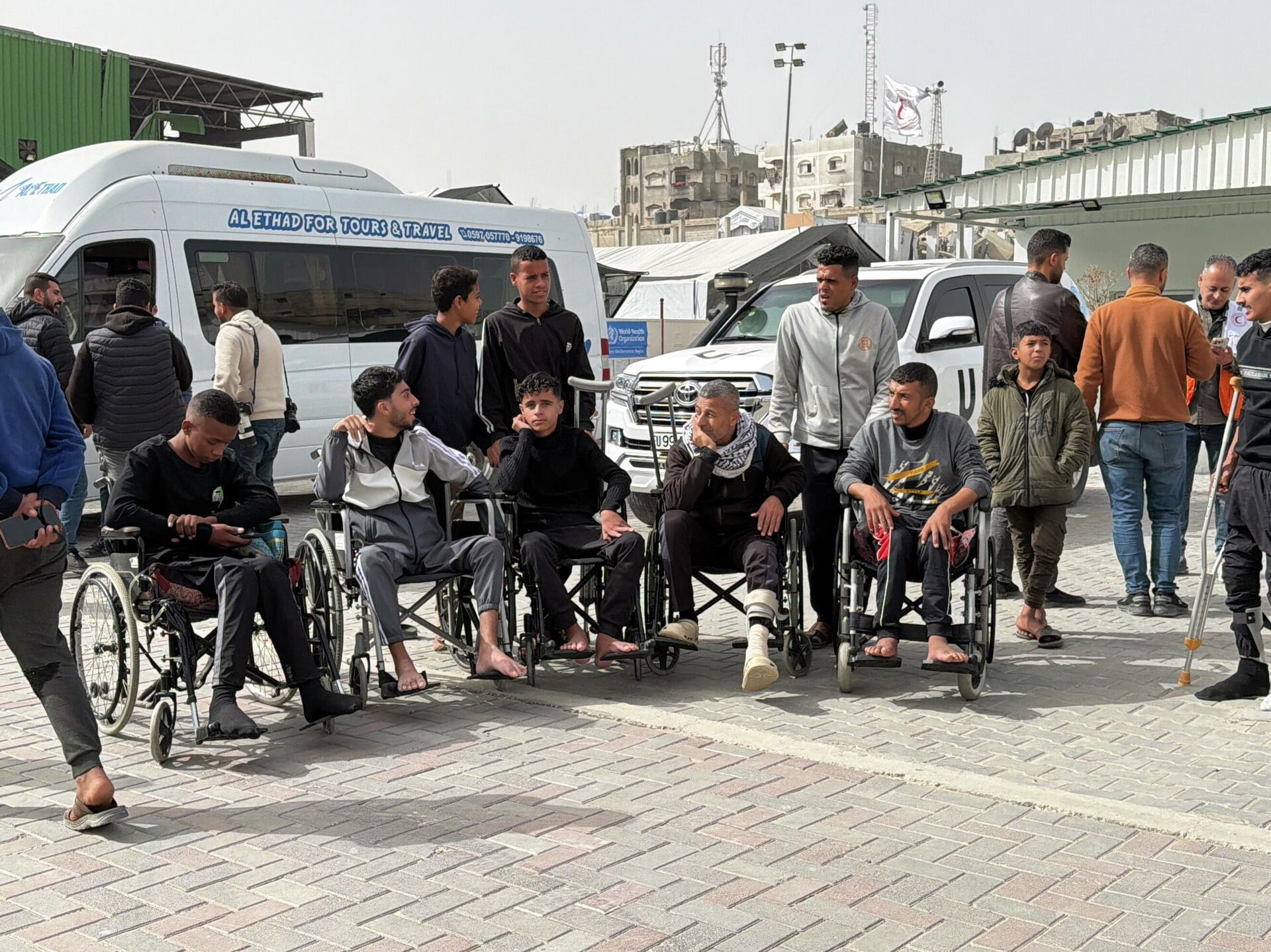 وتجمع عدد من مبتوري الأطراف على أمل السماح لهم بالسفر لتلقي العلاج، وبعد انتظار طويل لتحديث المعلومات، لم تدرج أسماؤهم للسفر، ما أدى إلى استياء كبير من الإجراءات التي يتم تنفيذها ضمن التشغيل الحالي لمعبر رفح.