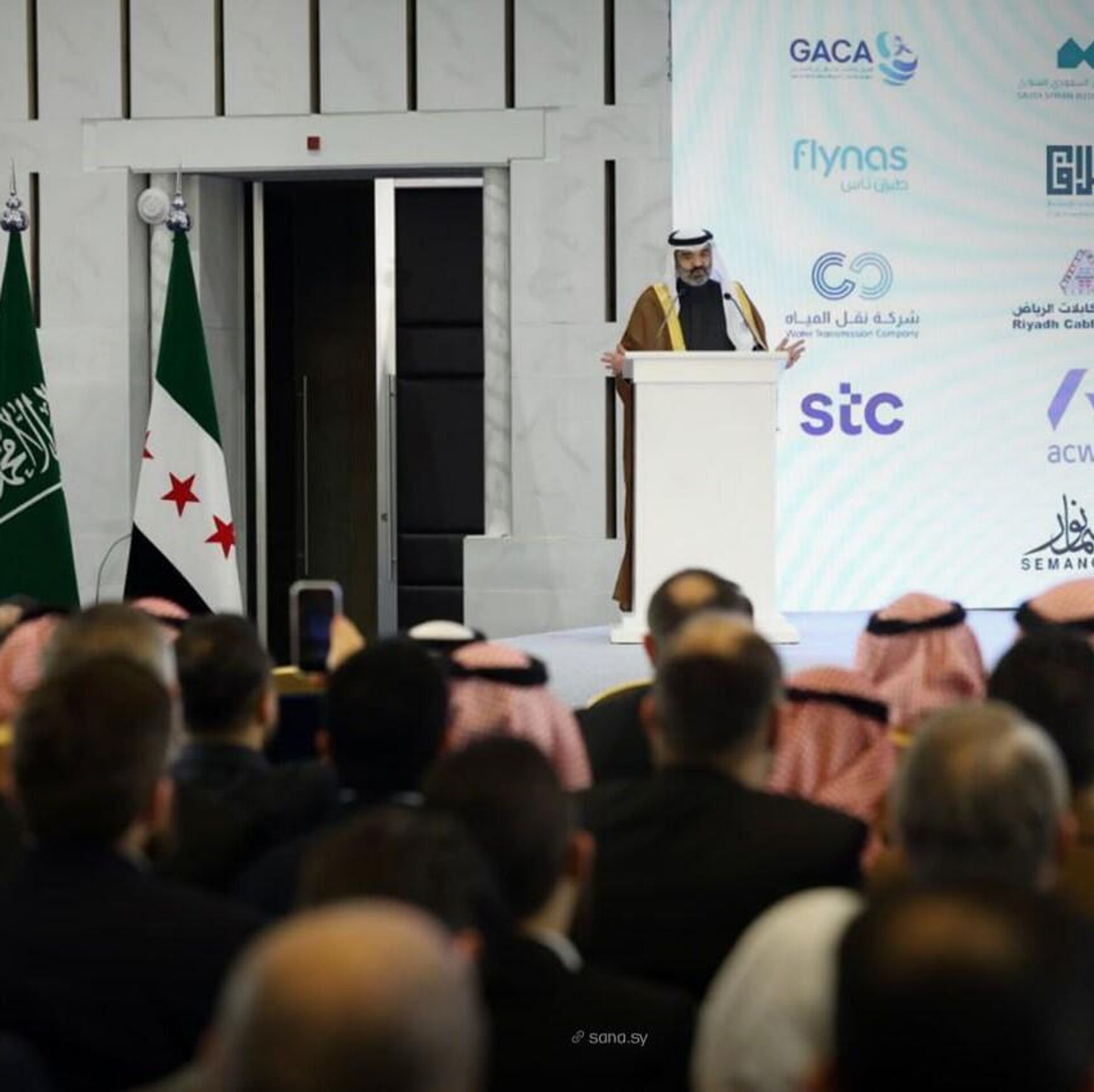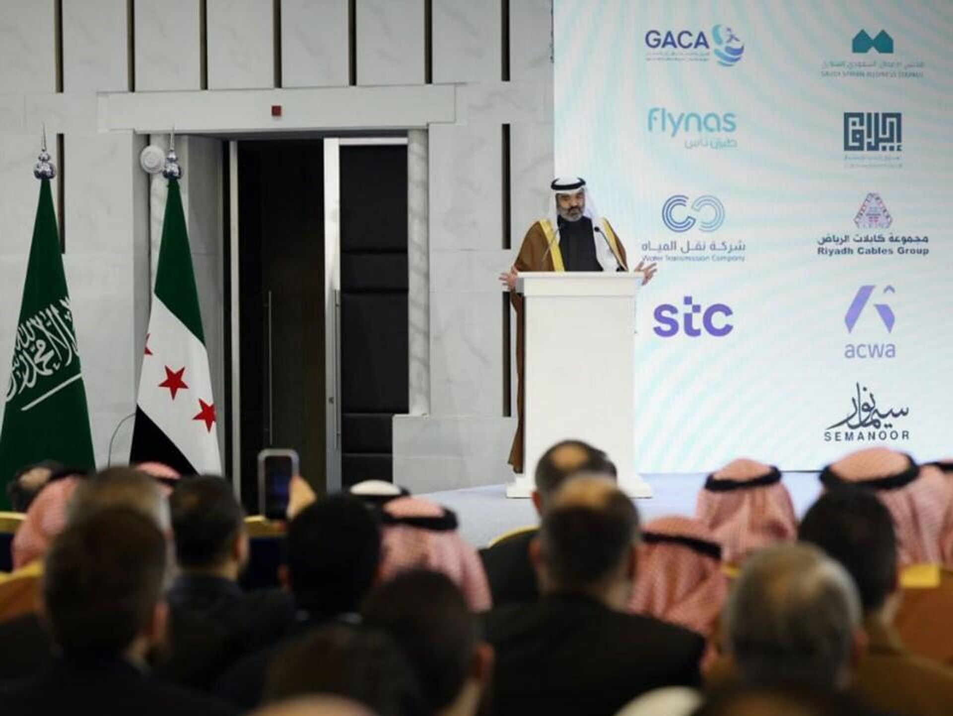 وذكر الفالح أن الحفل شهد توقيع اتفاقية في مجال الطيران تقودها شركة "ناس"، التي اختارت سوريا أول وجهة لاستثماراتها الخارجية، واتفاقية مشروع "سيلك لينك" للبنية التحتية الرقمية، واتفاقية كبرى للمياه برعاية شركة "أكوا" السعودية، إضافة إلى استكمال اتفاقية تشغيل وإدارة وتطوير الشركة السورية الحديثة للكابلات.
