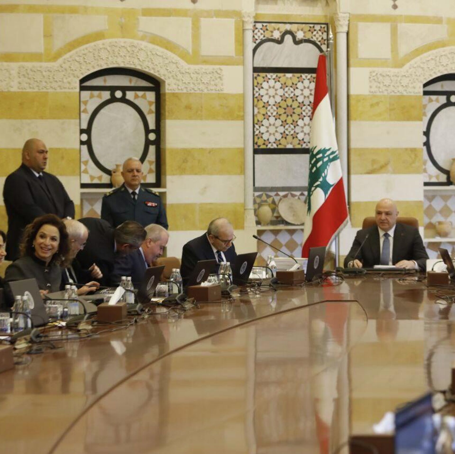 عقد مجلس الوزراء اللبناني، اليوم الاثنين، جلسة في القصر الجمهوري في بعبدا برئاسة الرئيس اللبناني جوزاف عون، وحضور رئيس الحكومة نواف سلام والوزراء، وشارك فيها... 16.02.2026, سبوتنيك عربي