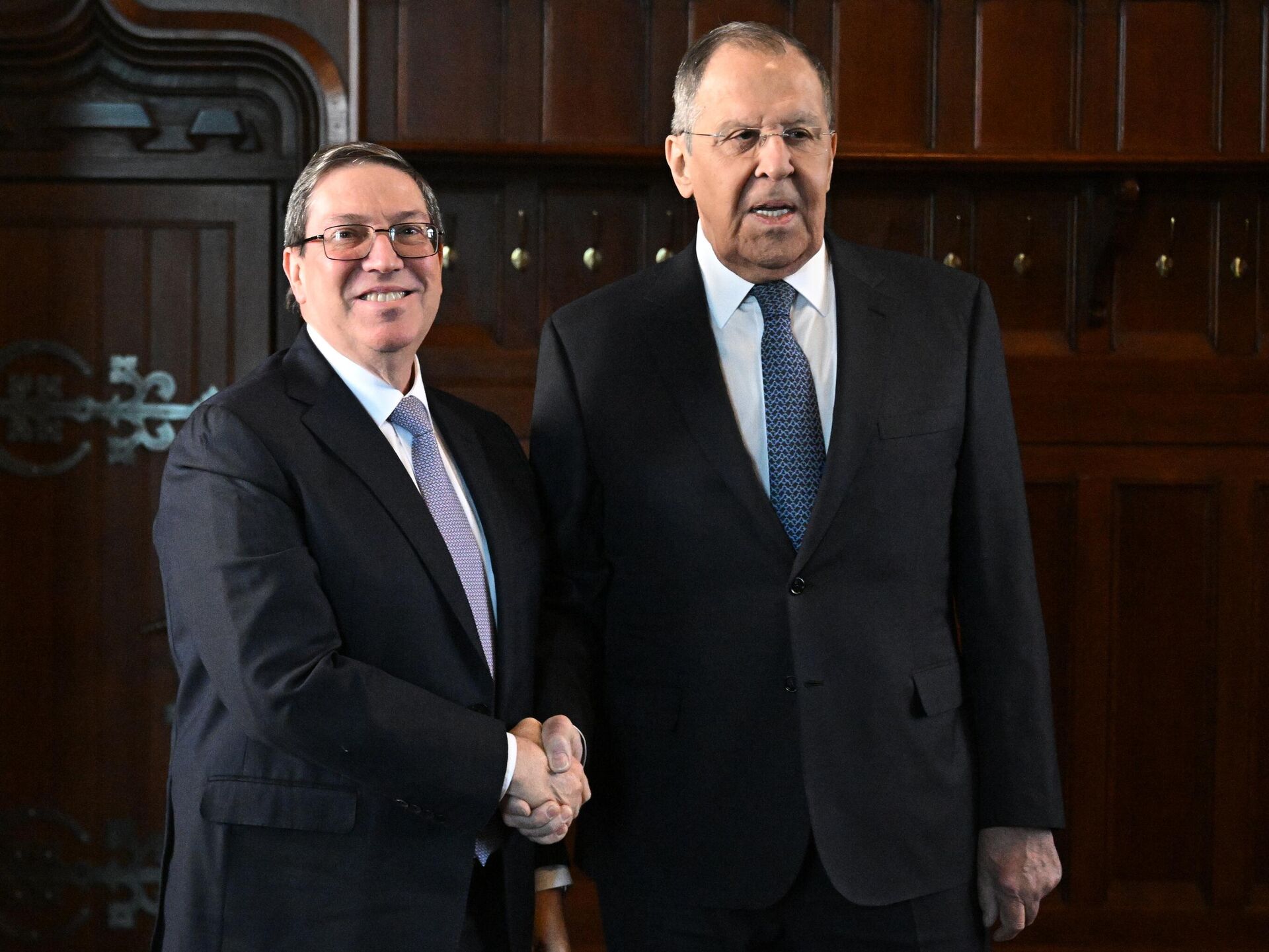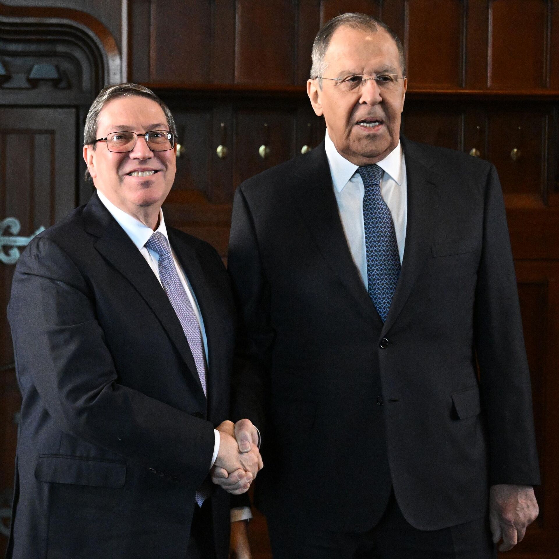 © Sputnik . Sergey Bobylev / الانتقال إلى بنك الصوروزير الخارجية الروسي سيرغي لافروف يلتقي بوزير الخارجية الكوبي برونو رودريغيز باريلا.