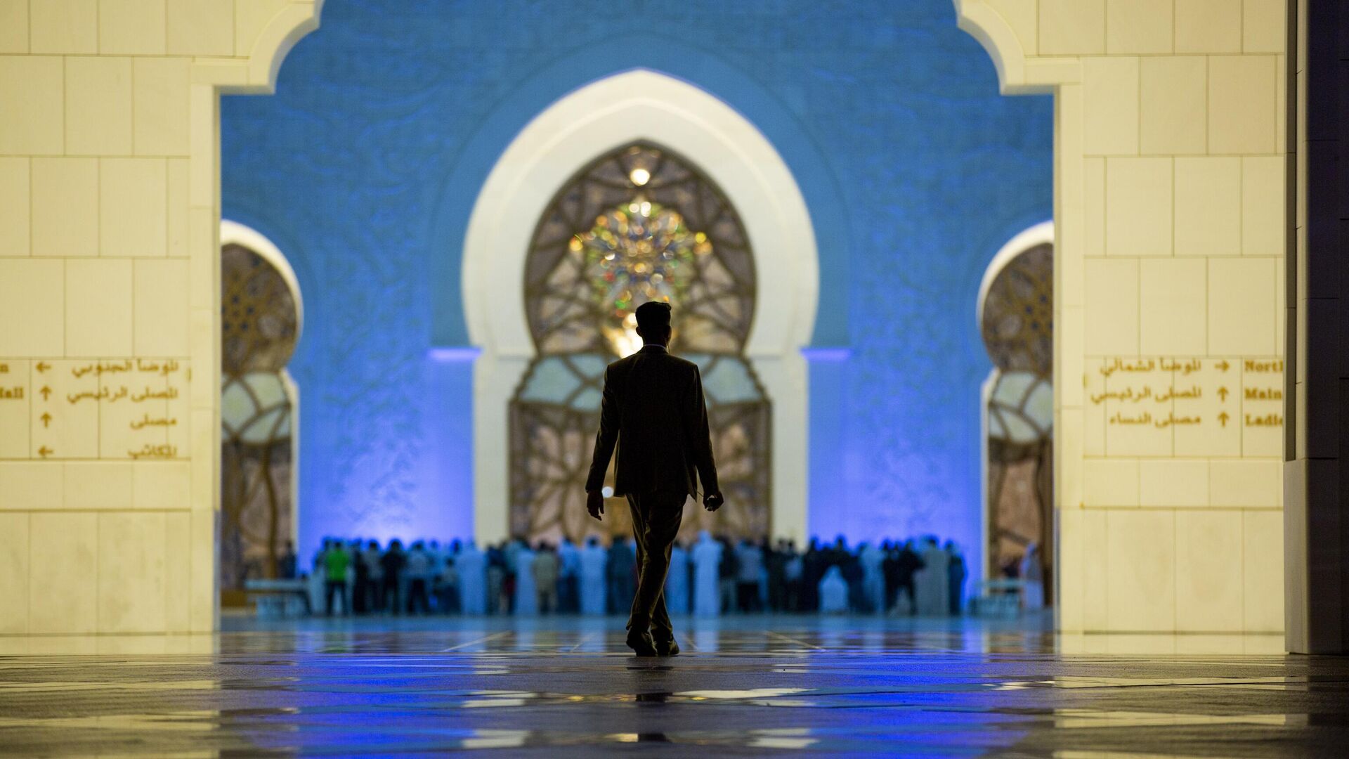 مصلون يؤدون أول صلاة تراويح في شهر رمضان، في جامع الشيخ زايد الكبير في العاصمة أبوظبي، الإمارات العربية المتحدة - سبوتنيك عربي