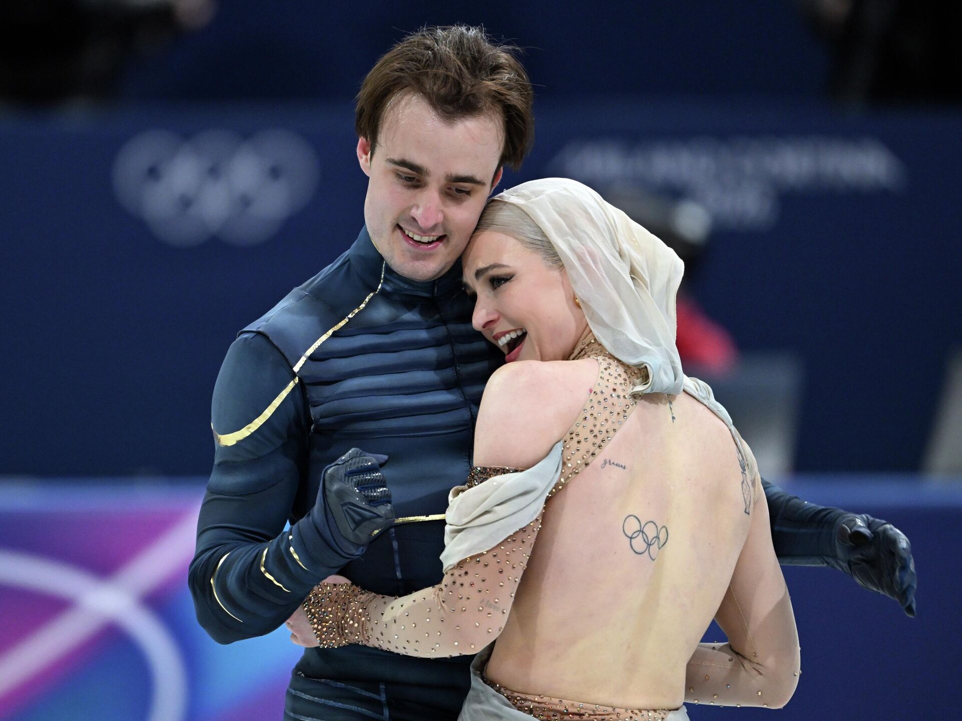 أسبانيان، يؤديان عرضهما الحر في مسابقة الرقص على الجليد، ضمن منافسات الأولمبياد الشتوي في ميلانو، إيطاليا - سبوتنيك عربي