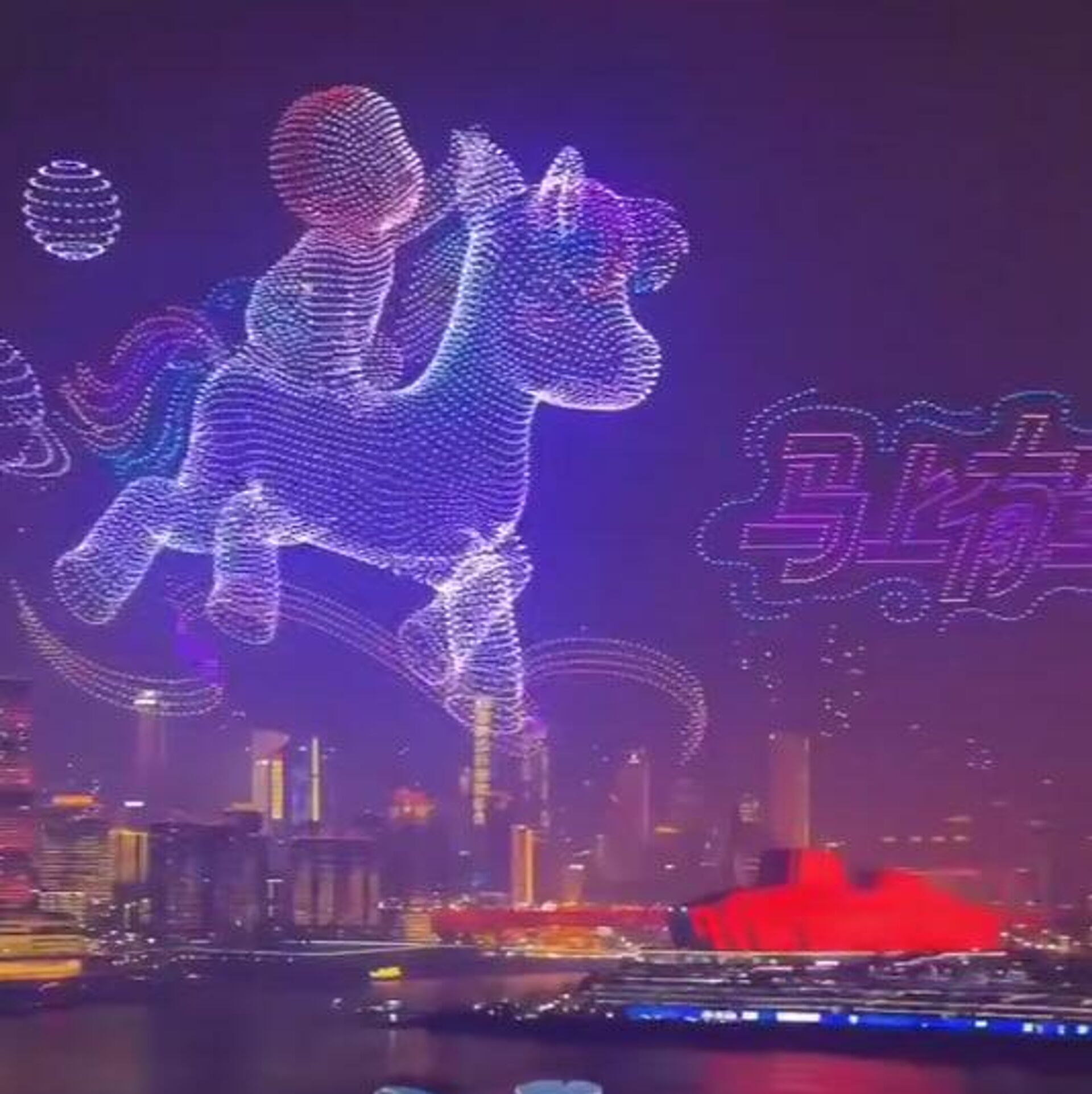 ويظهر في الفيديو المتداول آلاف من الطائرات المسيرة تنطلق في تشكيلات دقيقة، مكونة أشكالا مثل موجة خيول جامحة وعناصر مستوحاة من الثقافة الصينية، وقد رافق المشهد مؤثرات ضوئية وألوان نابضة تنساب بتناغم في السماء ليحدث منظرا بصريا يأسر المشاهدين.