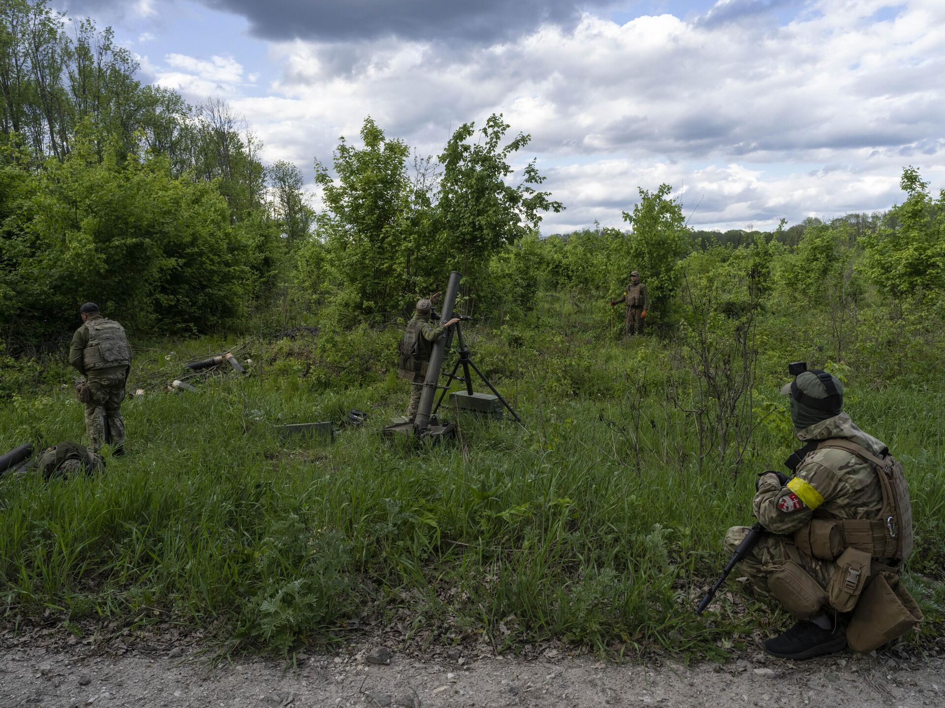 © AP Photo / Bernat ArmangueУкраинские военнослужащие в сопровождении членов Иностранного легиона под Харьковом. Архивное фото