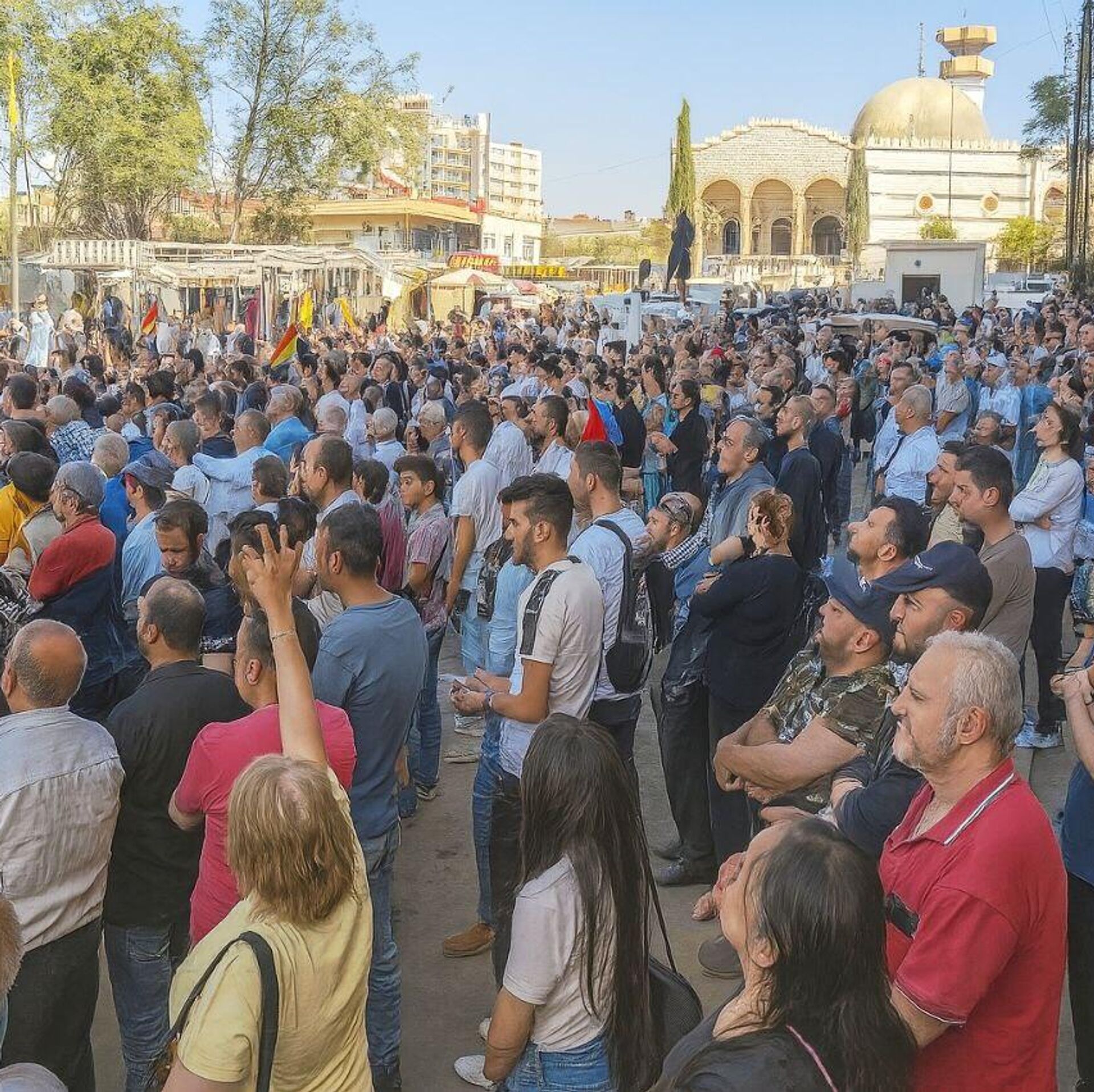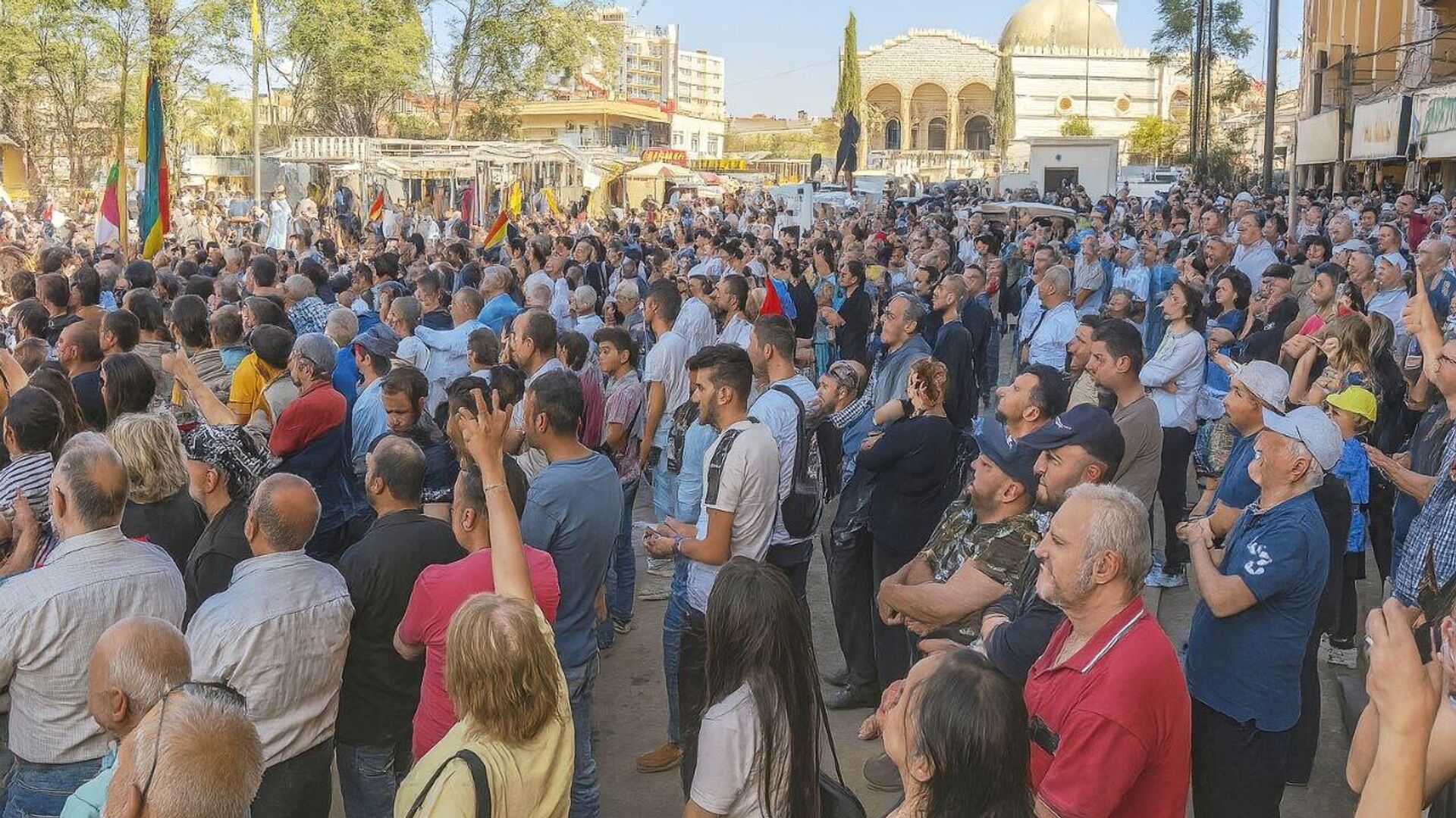 © Sputnik . Basil Shartouhأهالي السويداء يخرجون بمظاهرة رفضا لإعلان "خارطة الطريق" التي أعلن عنها وزير الخارجية السوري، أسعد الشيباني.