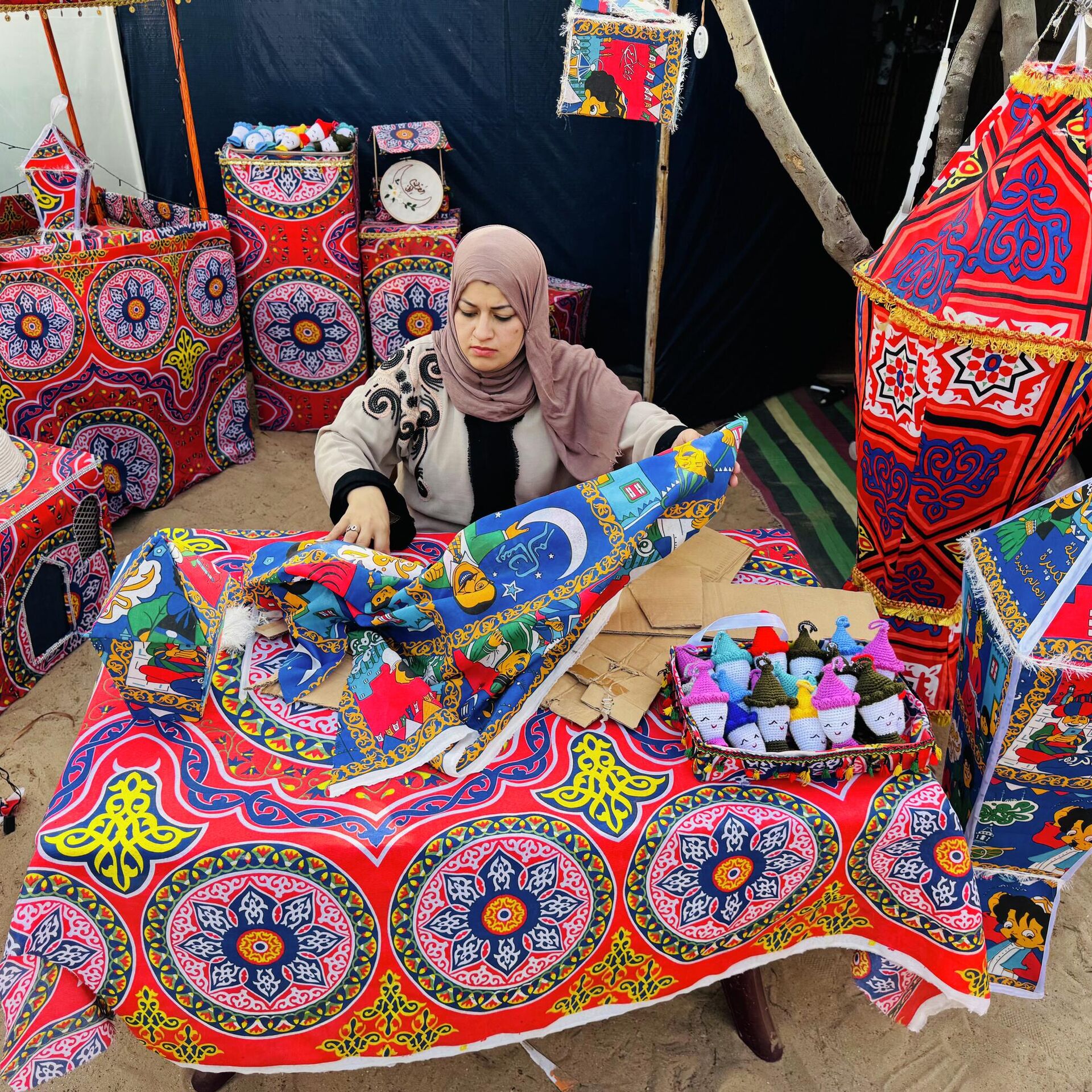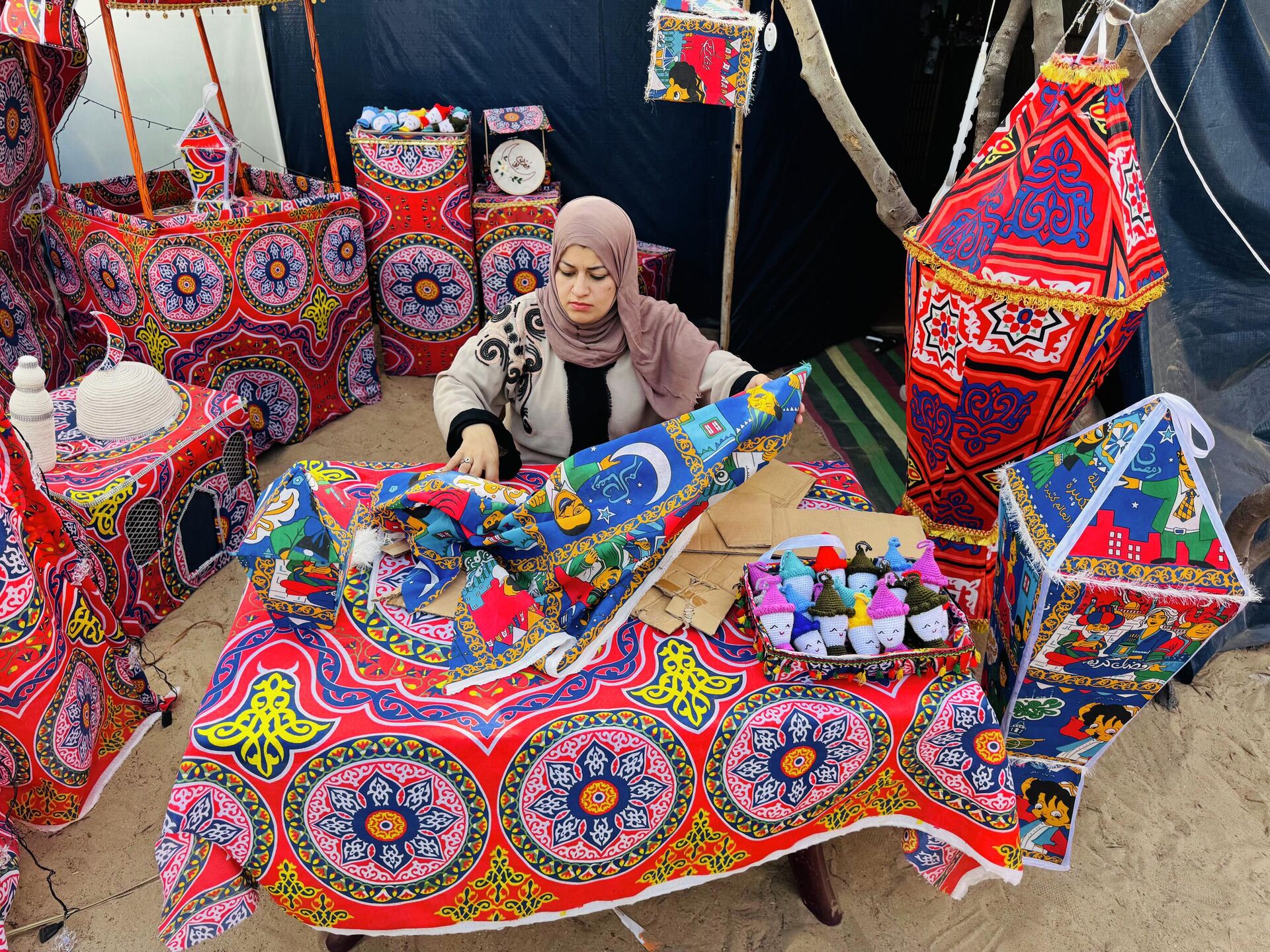 © Sputnik . اجود جرادات فلسطينية تدخل البهجة على النازحين بفانوس رمضان