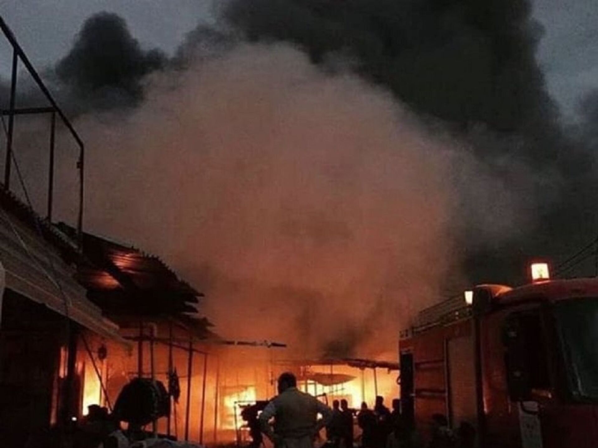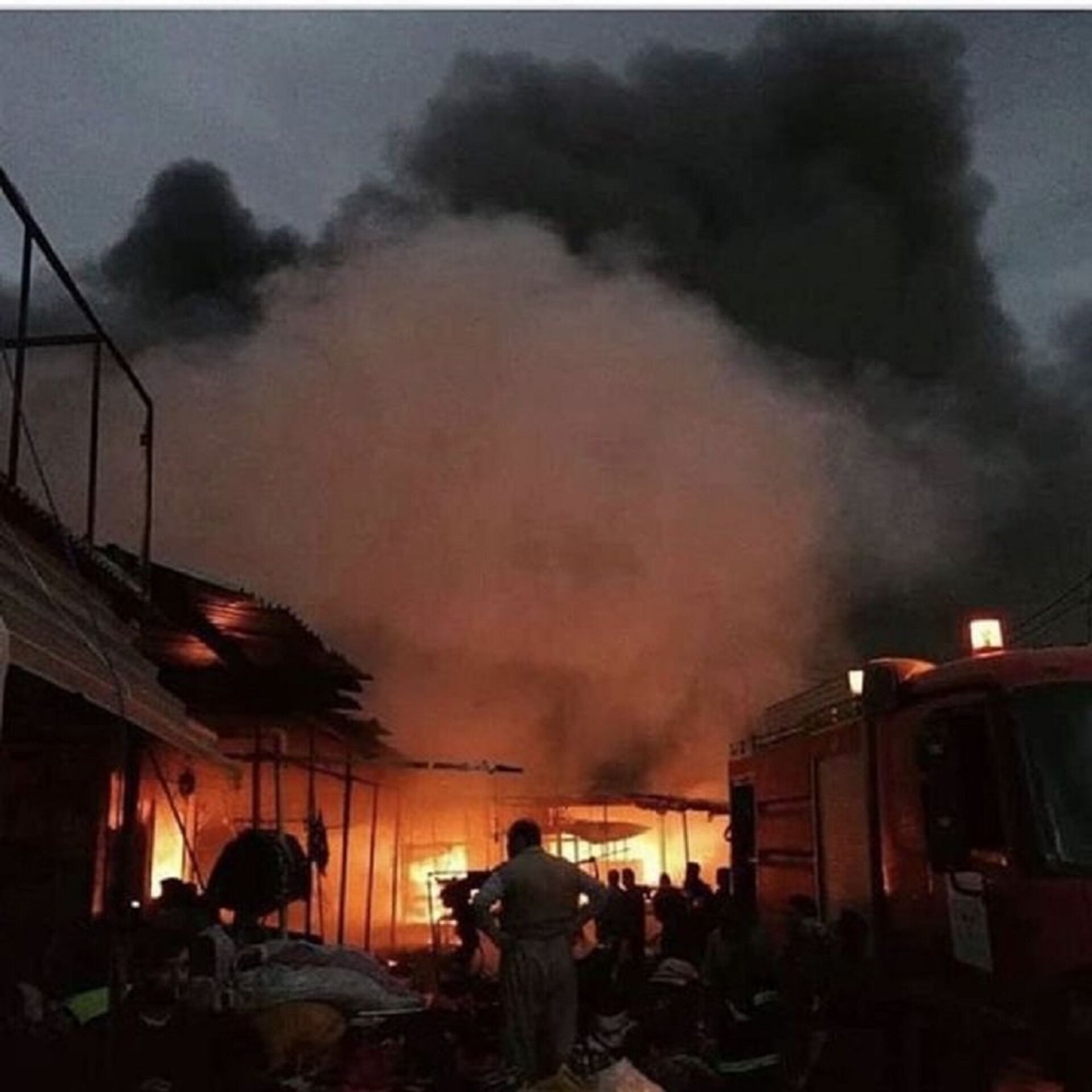 © Sputnik . NAZEK MOHAMMEDالحريق الذي التهم مئات المحال التجارية في سوق بإقليم كردستان العراق