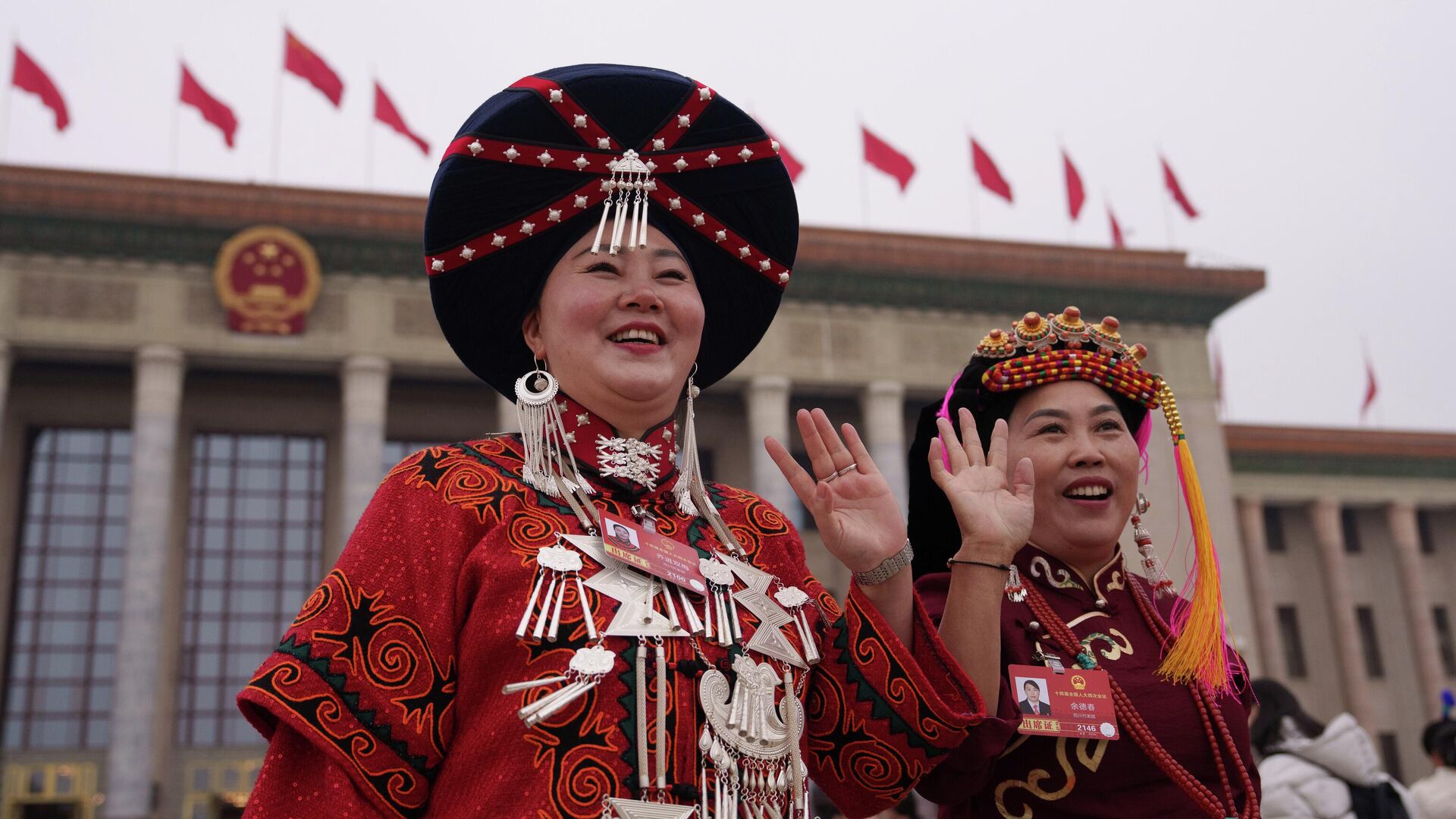 © AP Photo / Vincent Thian مندوبو الأقليات العرقية أثناء مغادرتهم، بعد الجلسة الافتتاحية للمجلس الوطني لنواب الشعب في قاعة الشعب الكبرى في بكين، الصين.
