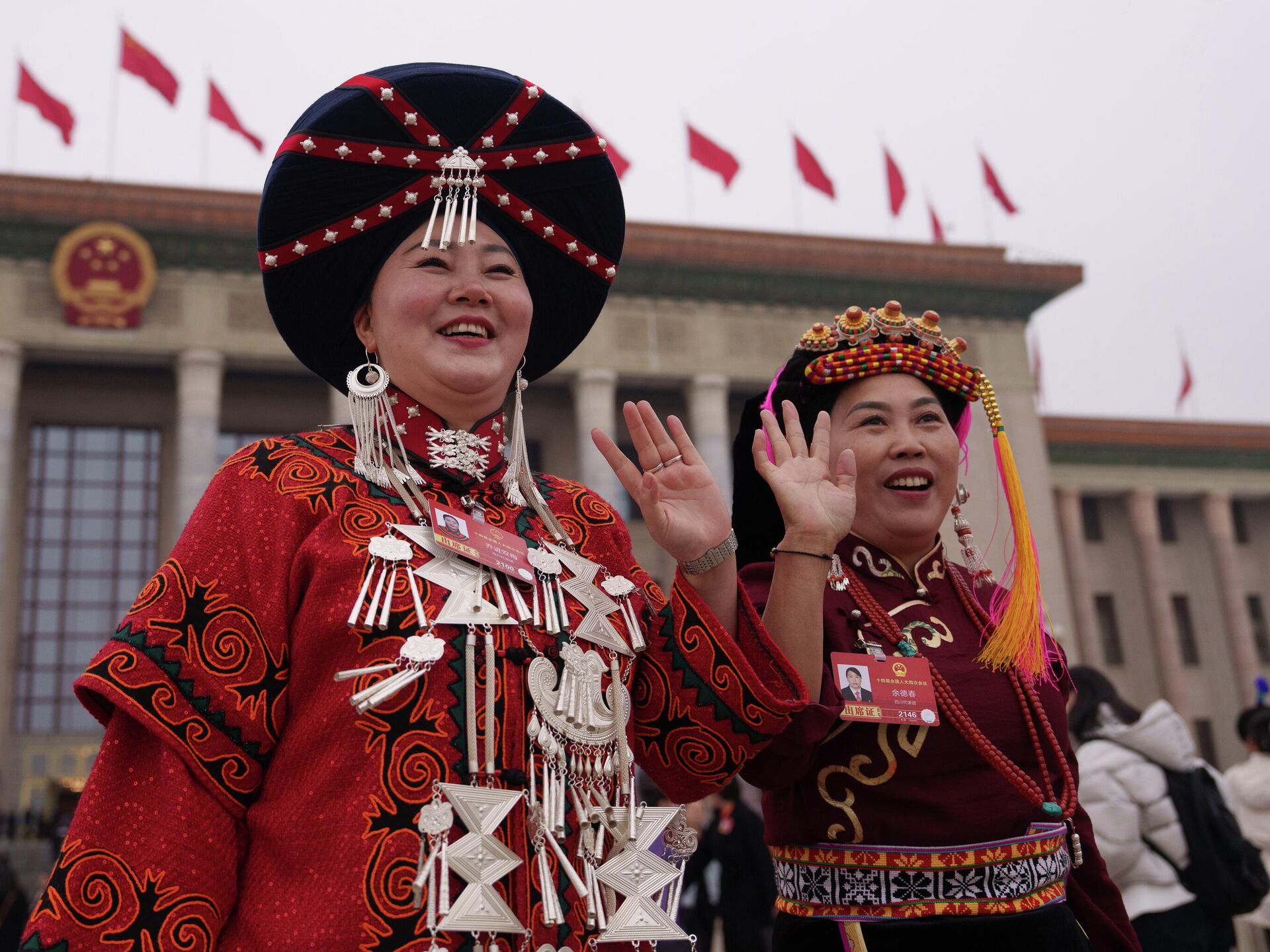 مندوبو الأقليات العرقية أثناء مغادرتهم، بعد الجلسة الافتتاحية للمجلس الوطني لنواب الشعب في قاعة الشعب الكبرى في بكين، الصين.