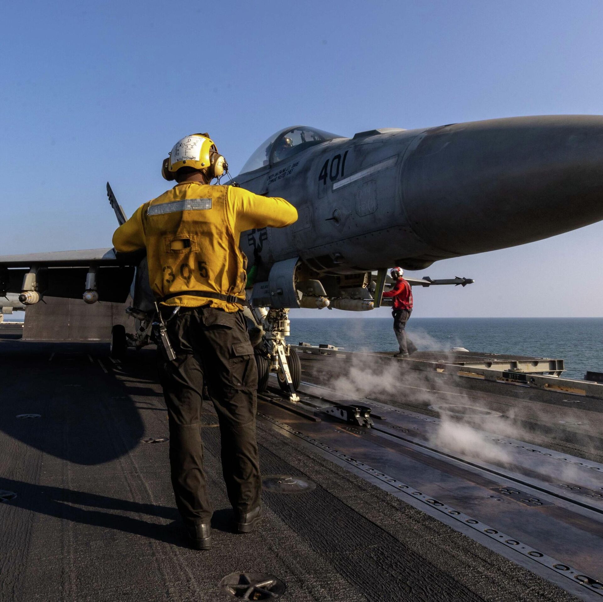 سفينة حربية أمريكية بصاروخين خلال تزودها بالوقود في المحيط الهندي، كما تم تداول أنباء عن محاولات إيرانية لاستهداف حاملات طائرات أمريكية وسفن تابعة لواشنطن في المنطقة.