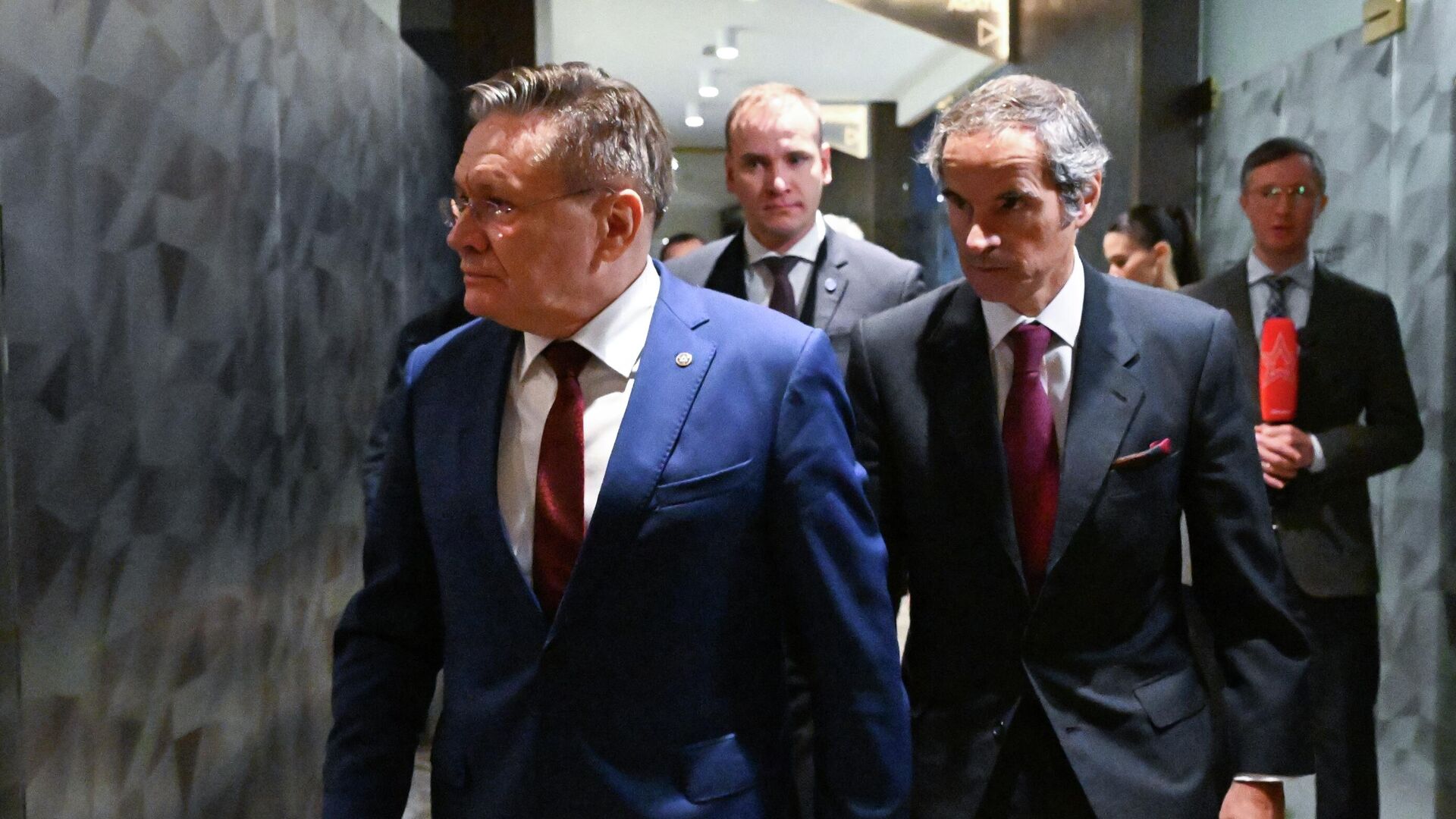 المدير العام لـروساتوم أليكسي ليخاتشوف، والمدير العام للوكالة الدولية للطاقة الذرية رافائيل غروسي.