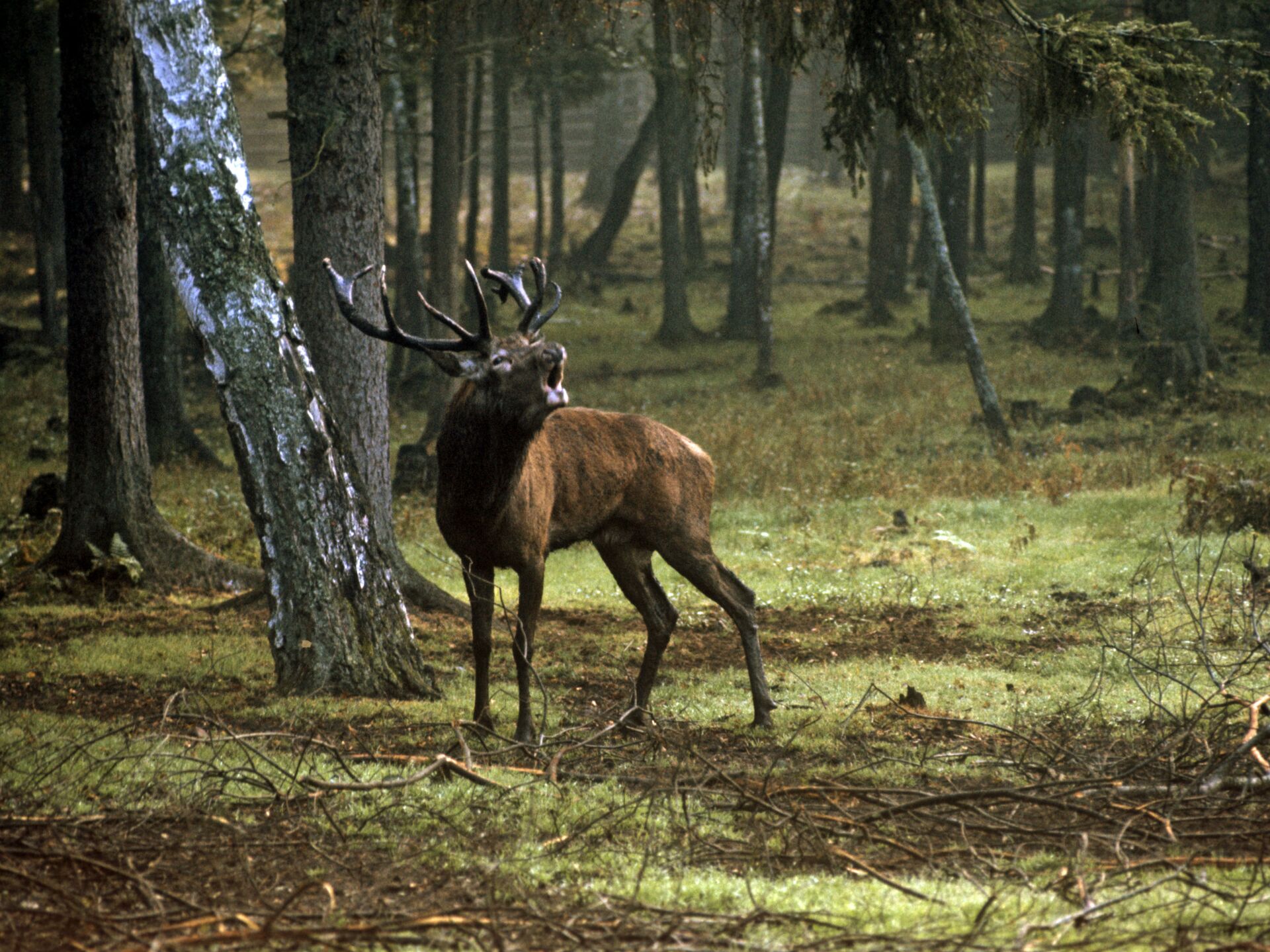 الأيل الأحمر داخل غابة محمية "بيلوفيجسكايا بوشا" الحكومية للألعاب، في بيلاروسيا. - سبوتنيك عربي