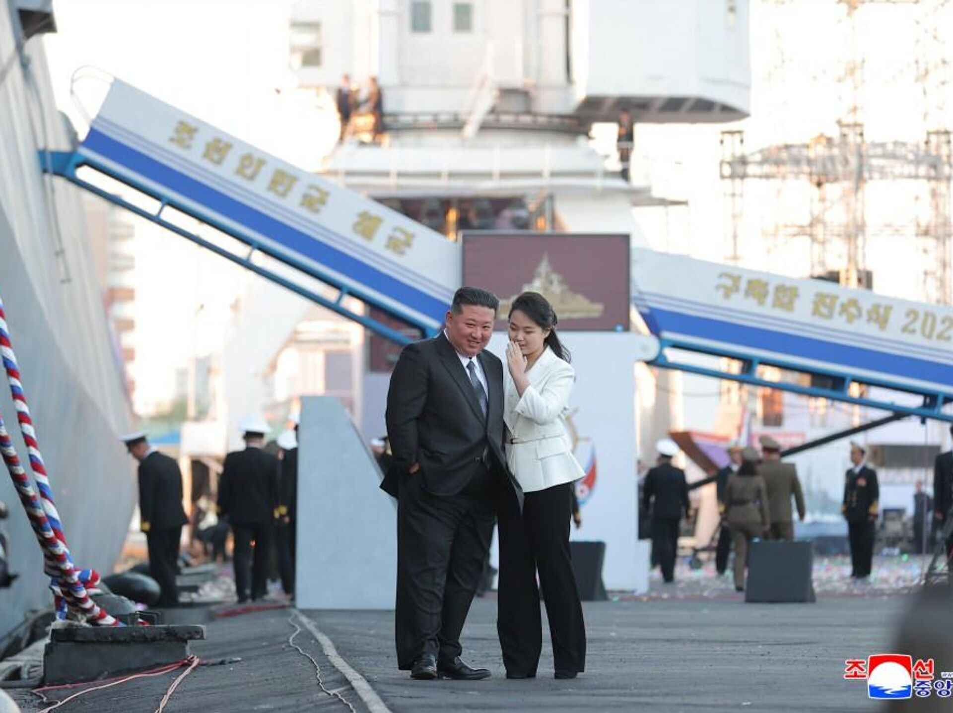 زعيم جمهورية كورية الديمقراطية كيم جونغ أون، برفقة عقيلته أثناء افتتاح انطلاق المدمرة الجديدة. - سبوتنيك عربي, 1920, 20.03.2026