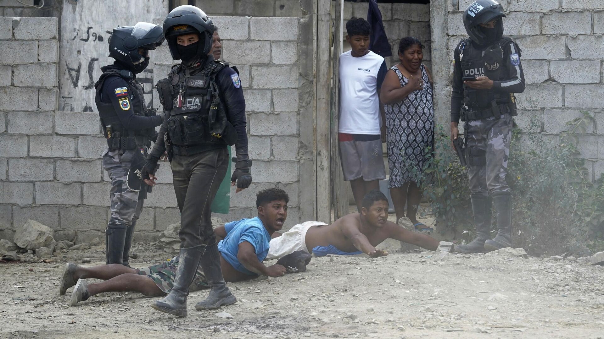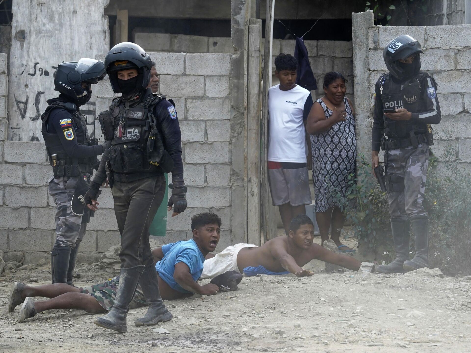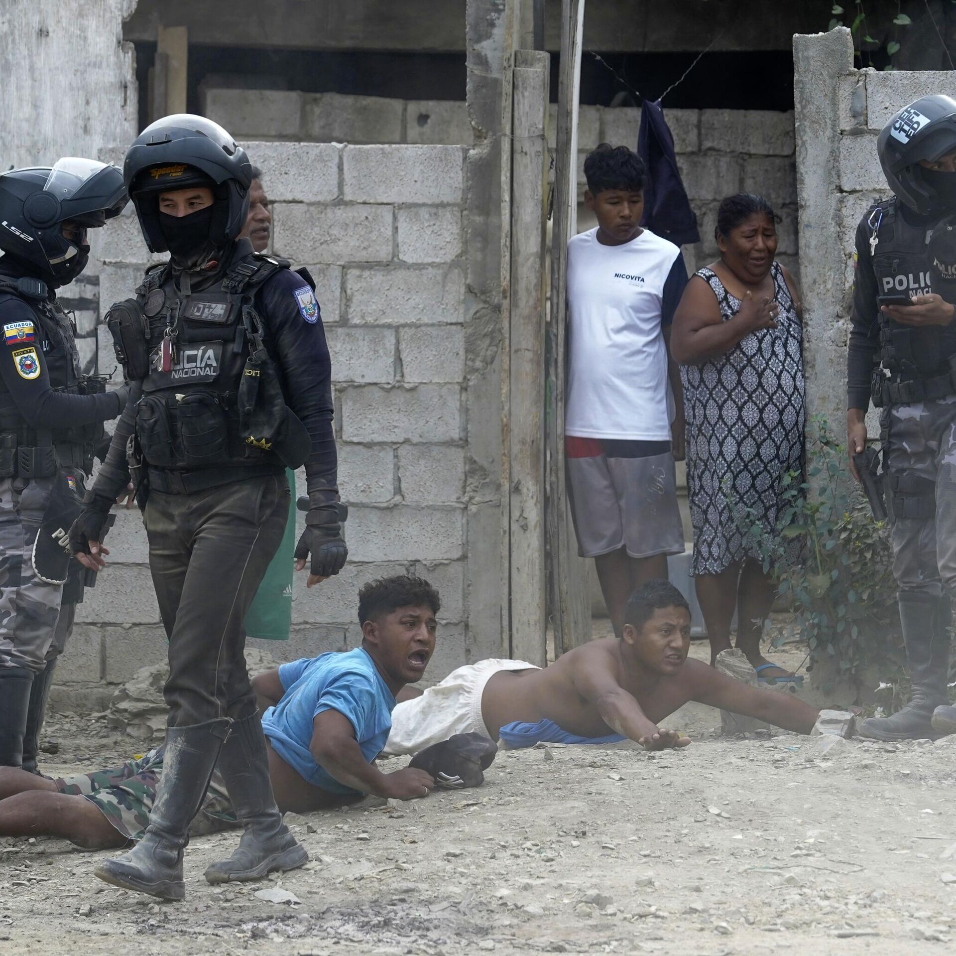 © AP Photo / Cesar MunozПолицейские совершают рейд в рамках операции по поиску оружия и наркотиков в районе Гуаякиля, Эквадор