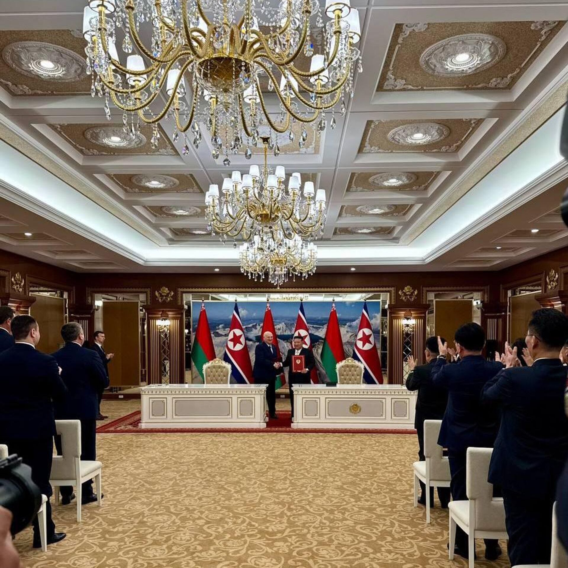 وجاء في بيان نشرته قناة "بول بيرفوغو" التابعة للخدمة الصحفية للرئيس البيلاروسي عبر تطبيق "تلغرام": "وقّع ألكسندر لوكاشينكو، وكيم جونغ أون، معاهدة صداقة وتعاون بين جمهورية بيلاروسيا وجمهورية كوريا الديمقراطية الشعبية".