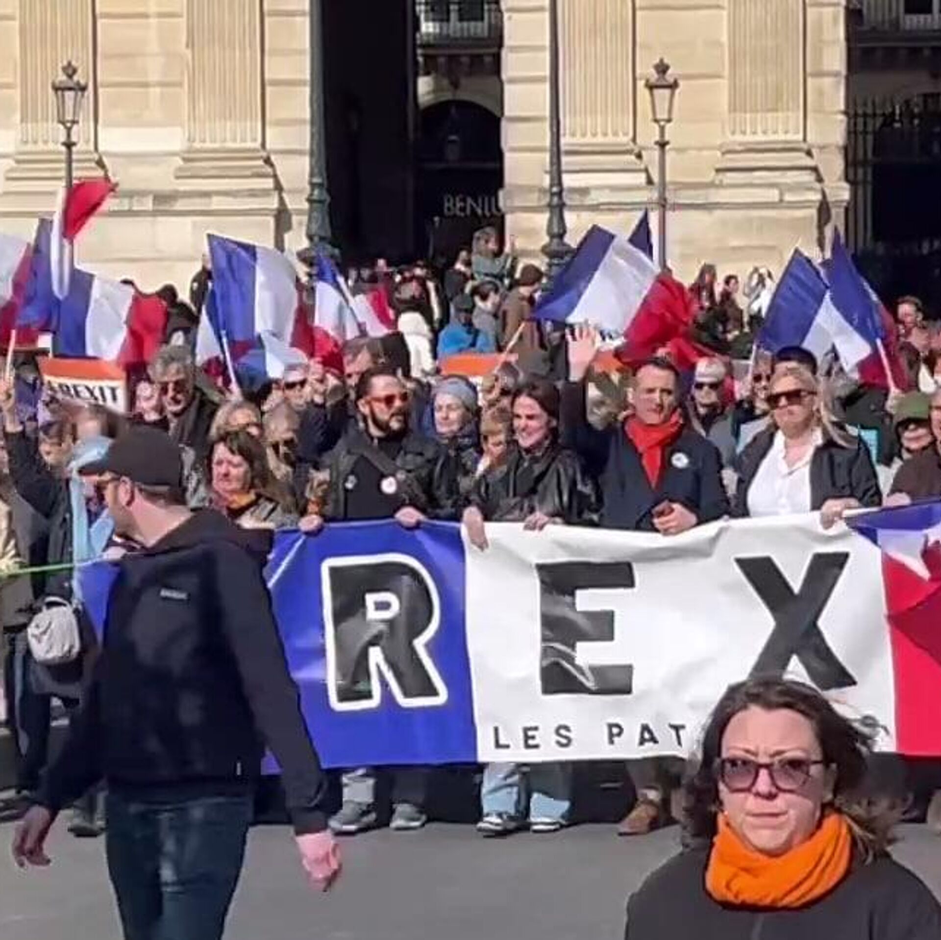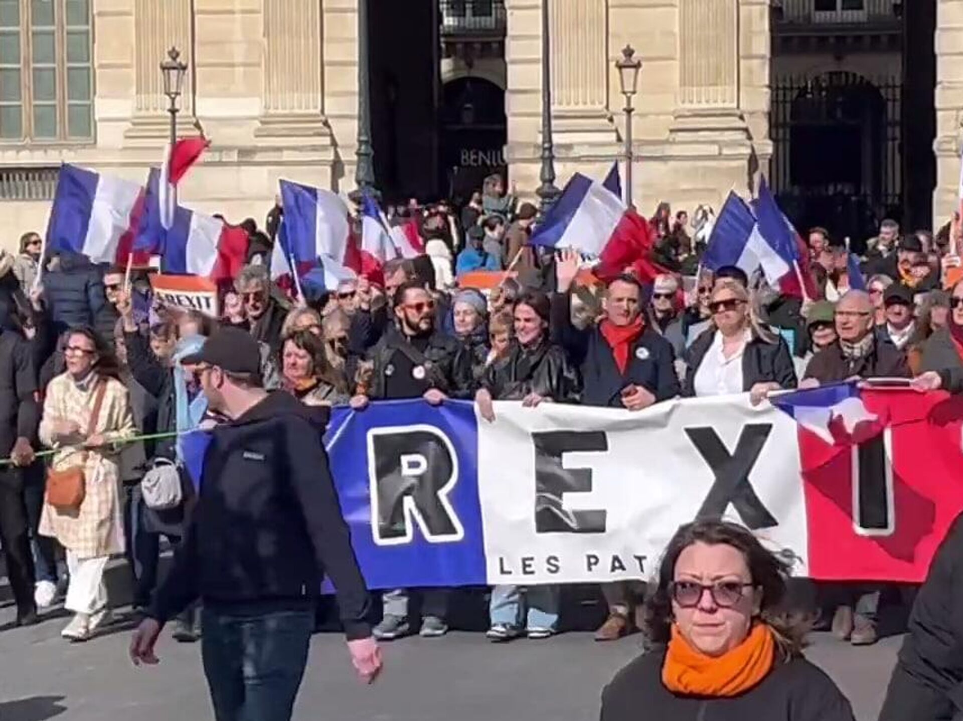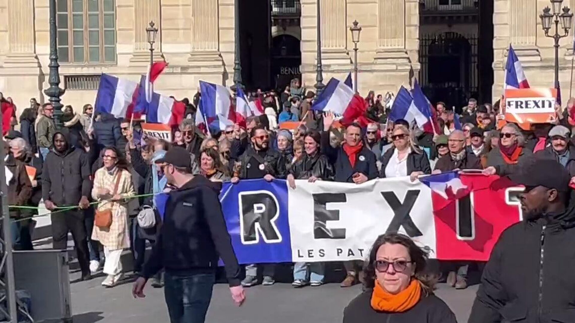 وألقى فلوريان فيليبو، زعيم حزب "الوطنيين"، علم الاتحاد الأوروبي من المنصة، داعيًا فرنسا إلى مغادرة الاتحاد.